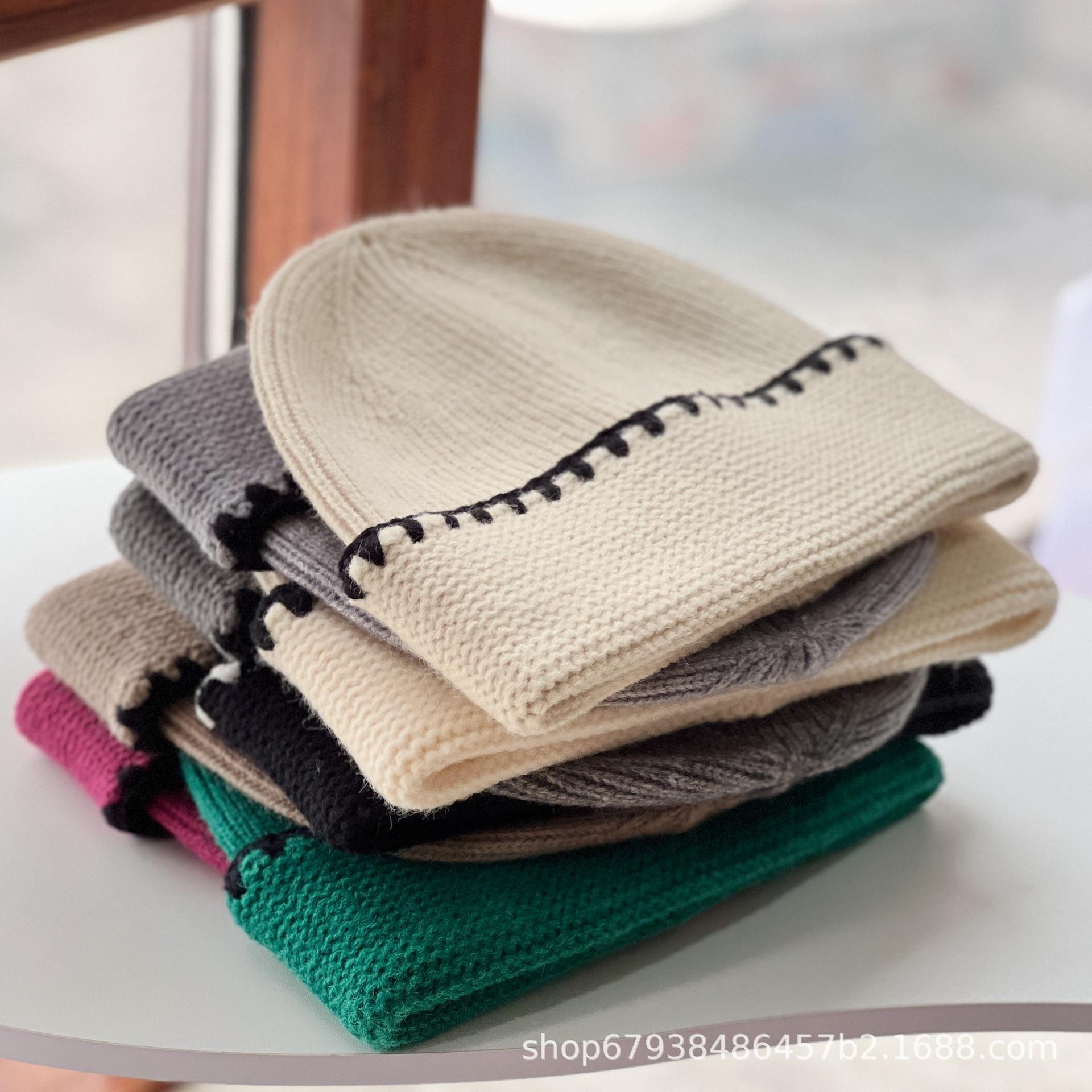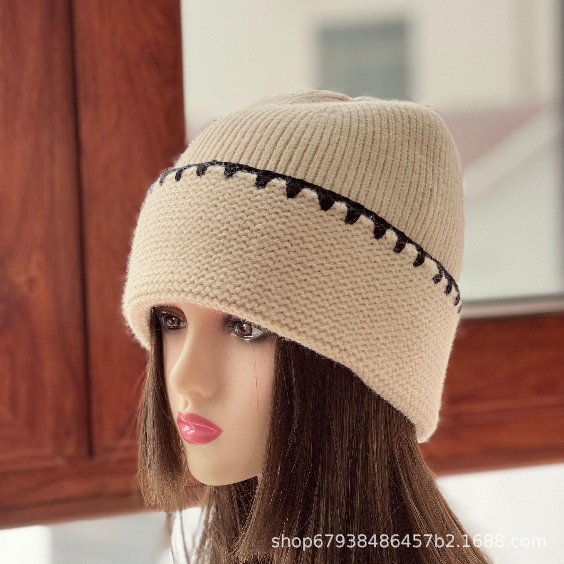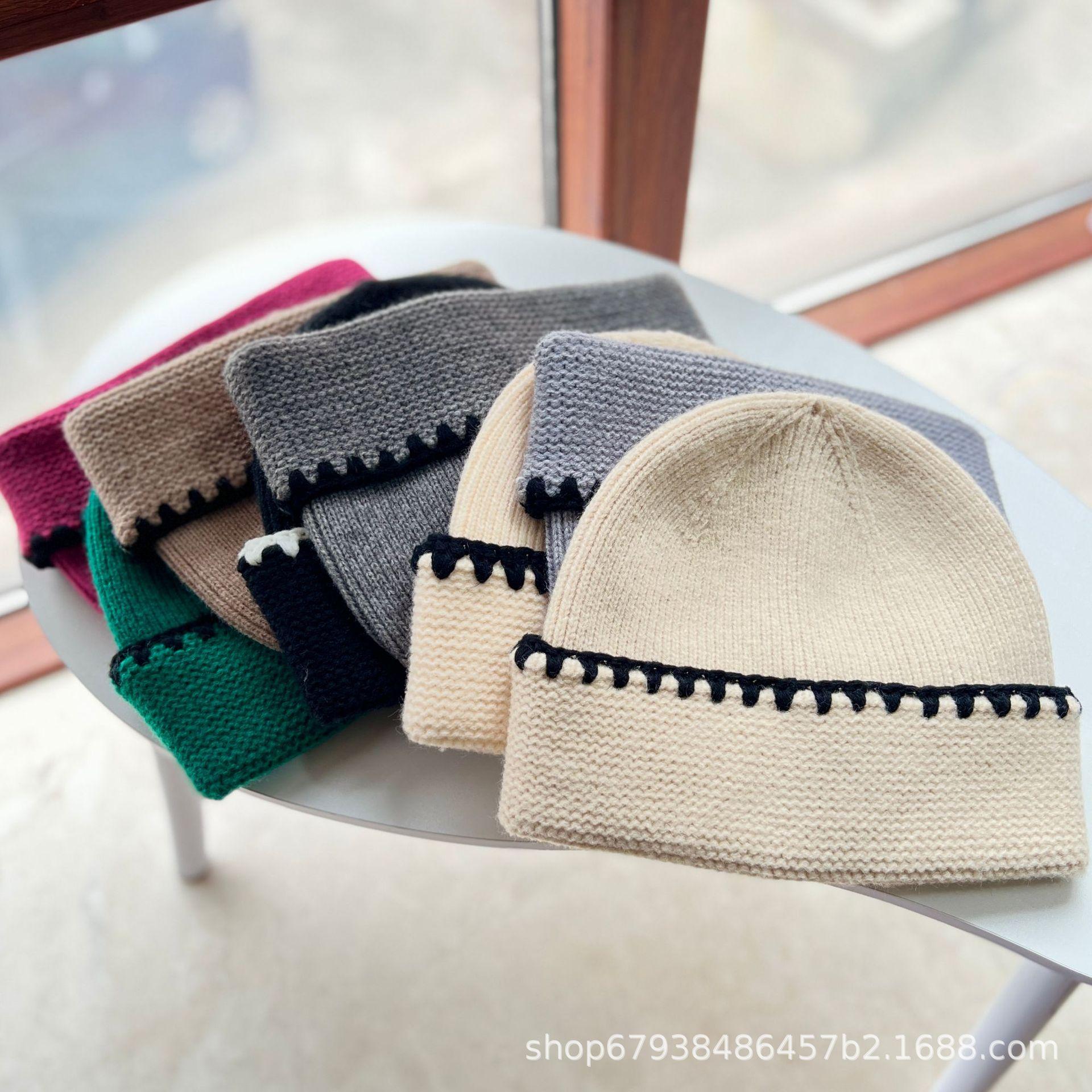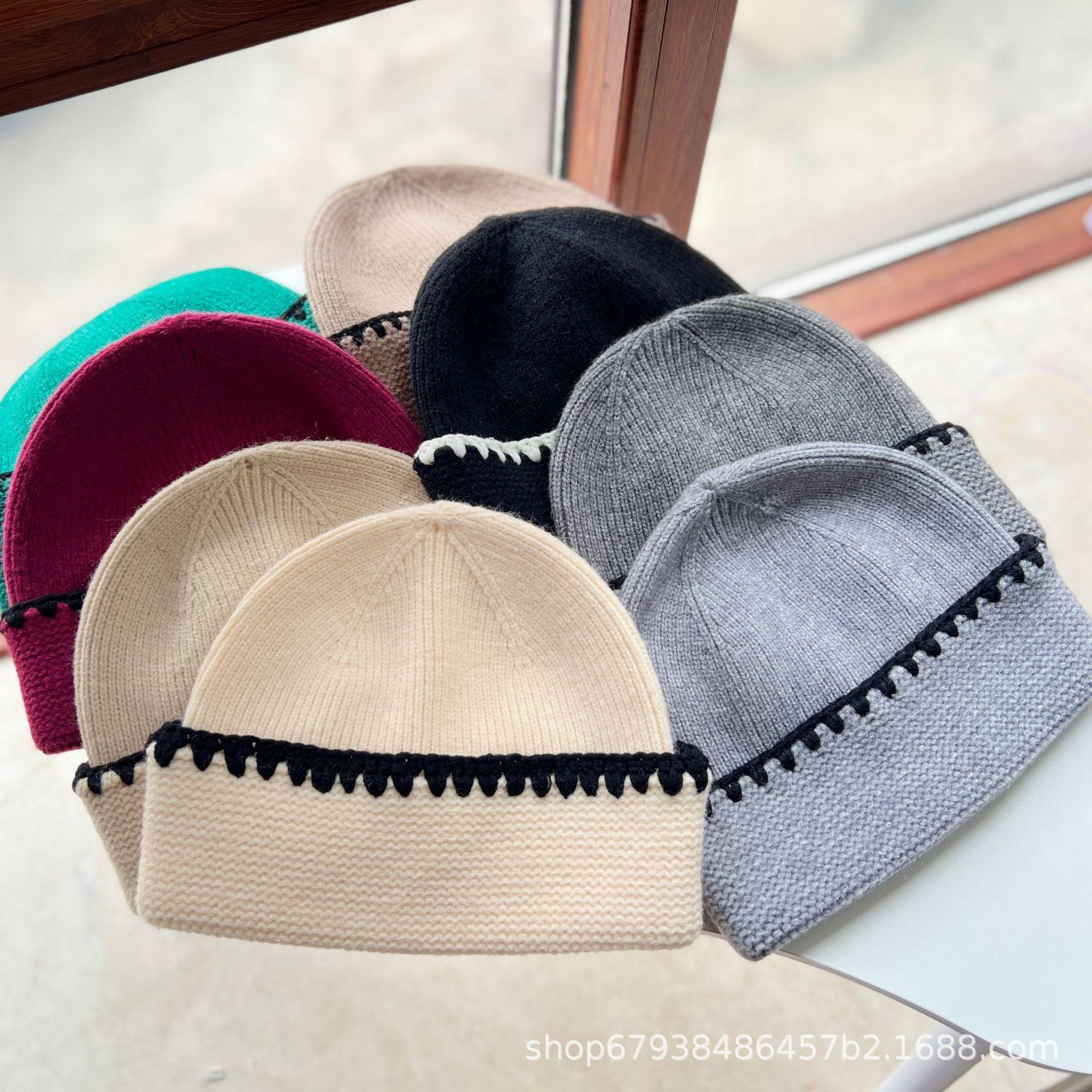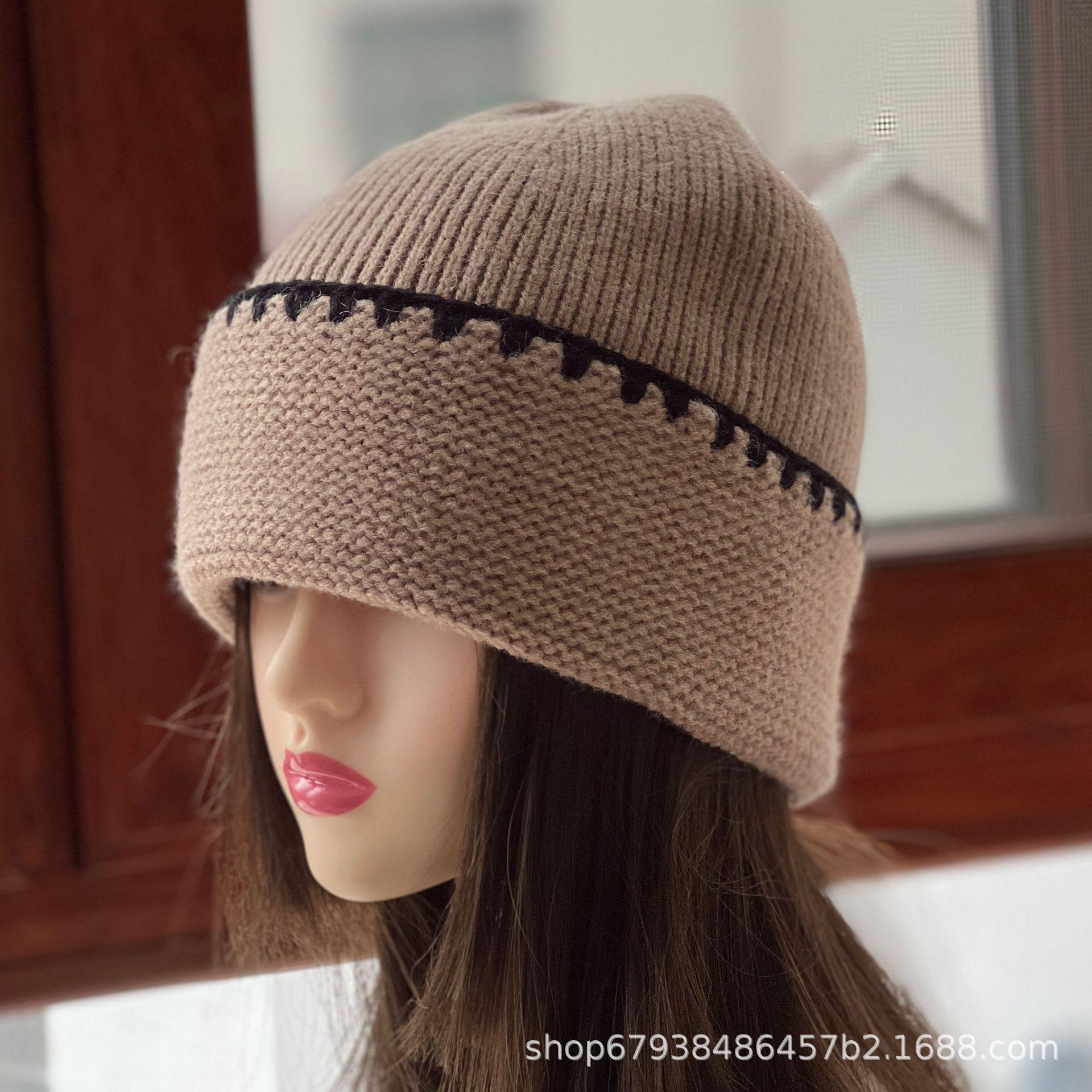 Otoño e invierno Nuevo gorro de punto para mujer, cálido color a juego, estilo Chanel, gorro de lana de moda para todo tipo de combinaciones, gorro para el frío, gorro tipo jersey con lana