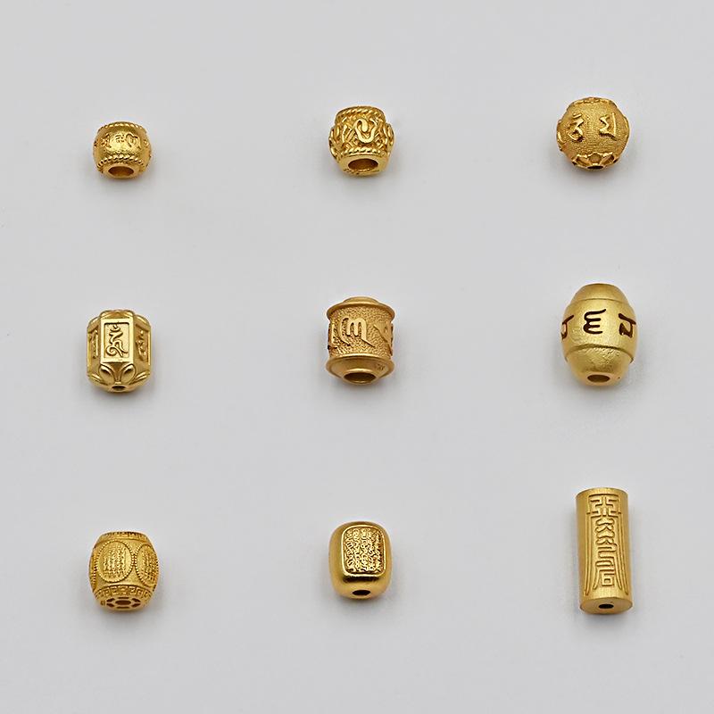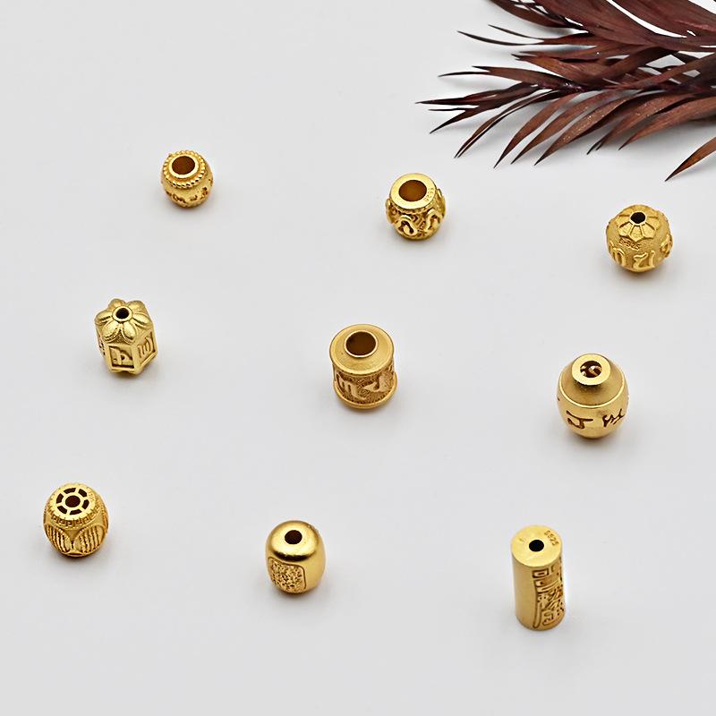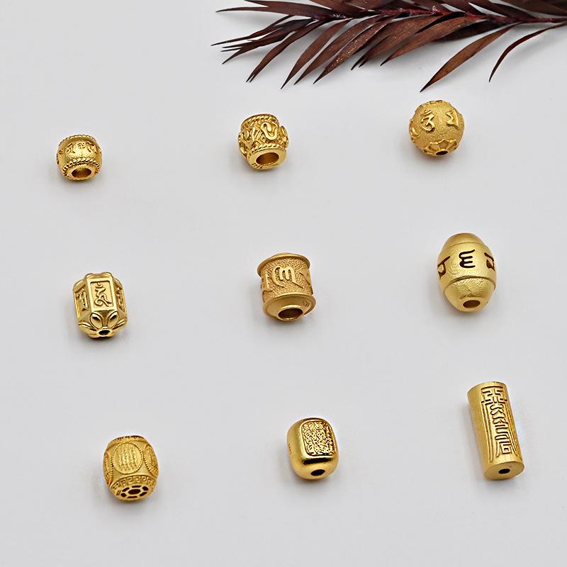 Cuentas de barril con cinco escrituras y seis palabras de verdad bañadas en oro y plata S925, accesorios de joyería para hacer tú mismo, accesorios de oro antiguo.