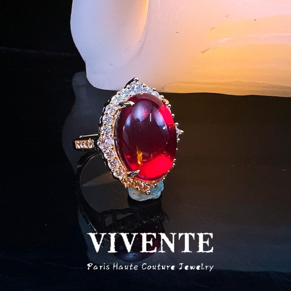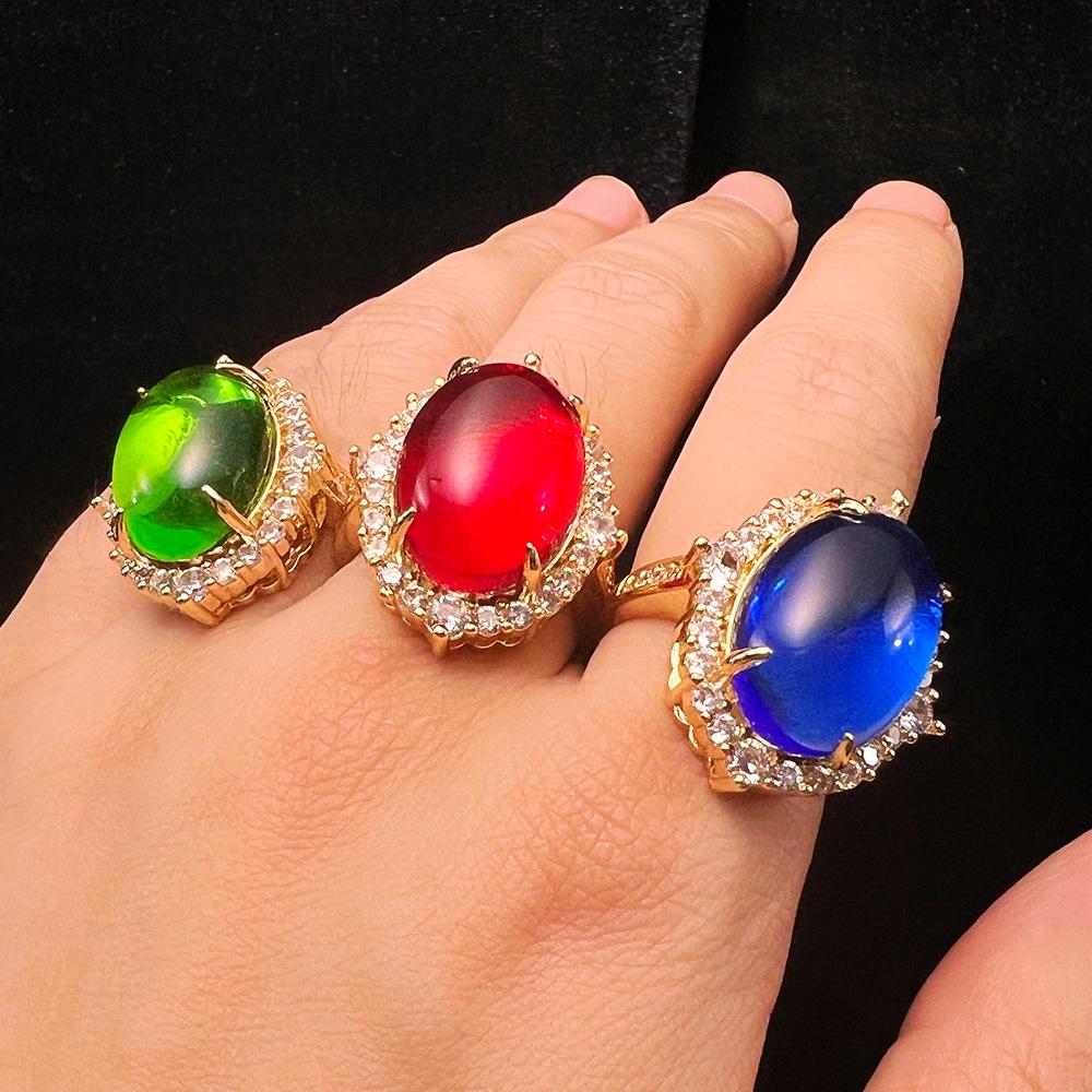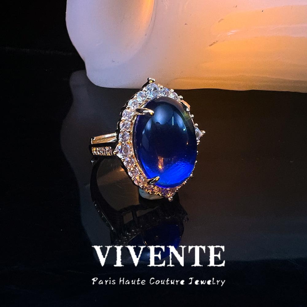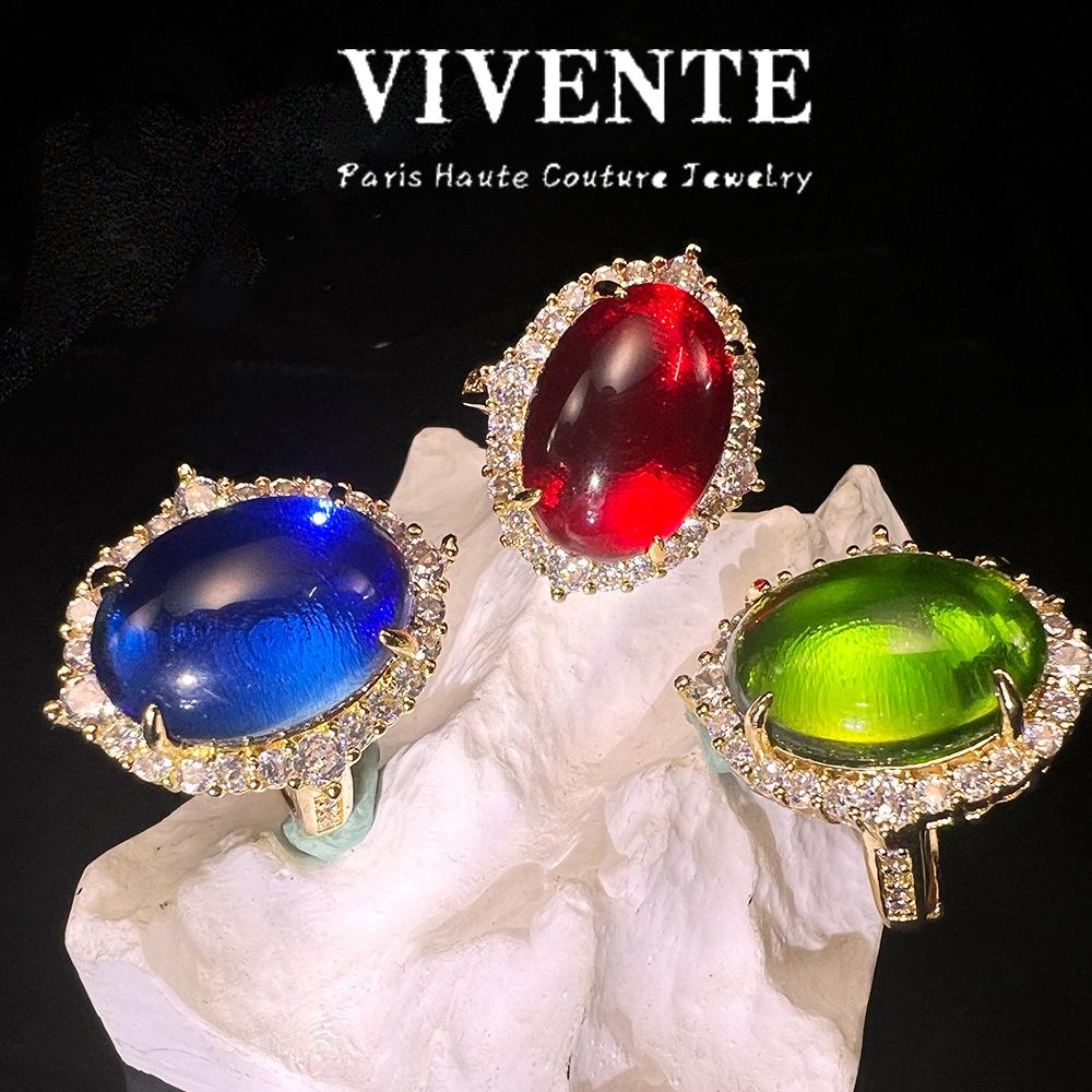 Anillo Abierto Micro-incrustado de Vidrio Soplado Estilo Chino Nuevo Bañado en Color Oro Real Exquisito Combinable Corte Retro No Lustrar Cuidado