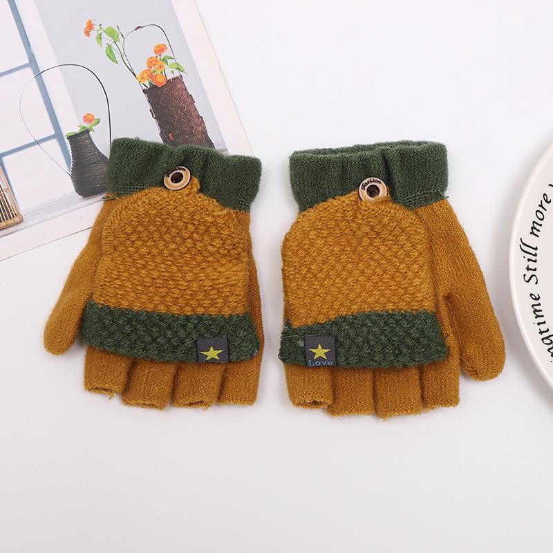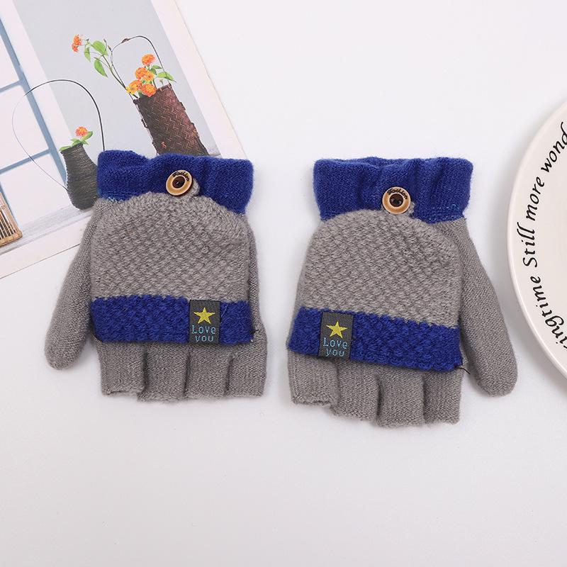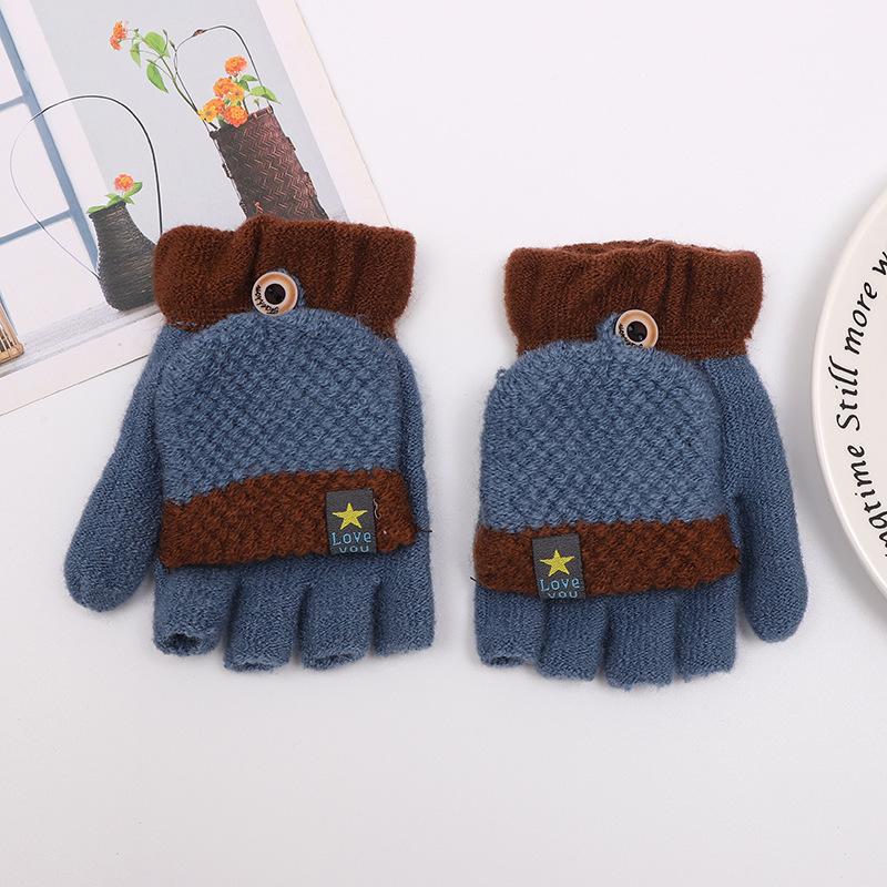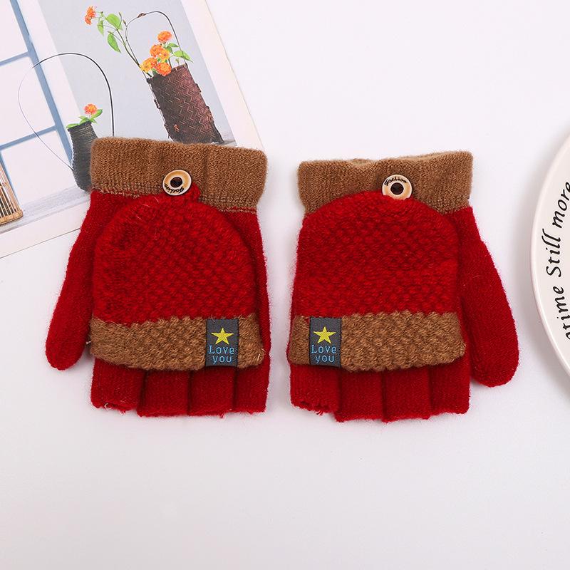 Guantes de Otoño e Invierno para Niños Guantes de Medio Dedo con Solapa para Estudiantes de Primaria Guantes Cálidos para Escribir Guantes de Punto para Niños y Niñas