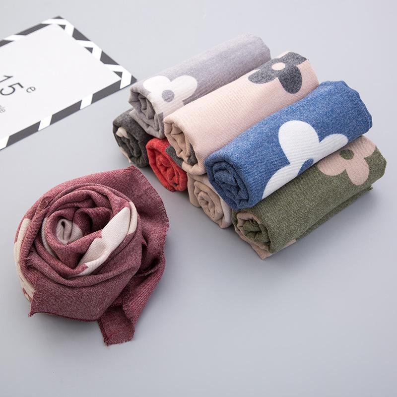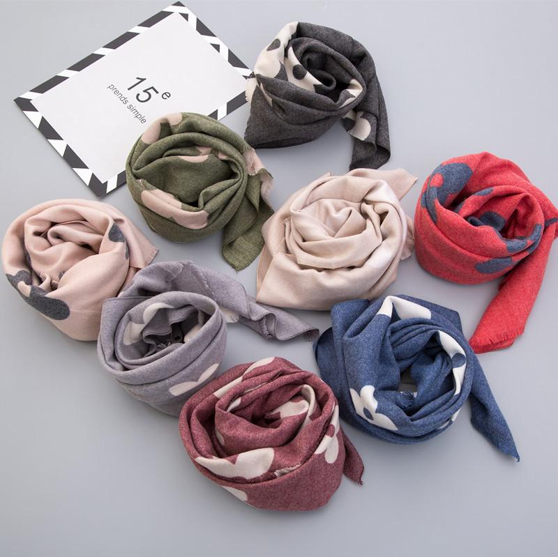 Bufanda de cachemira sintética para niños, estilo coreano, cálida, gruesa, con estampado de flores, suave, para otoño e invierno, para bebés, niños y niñas.