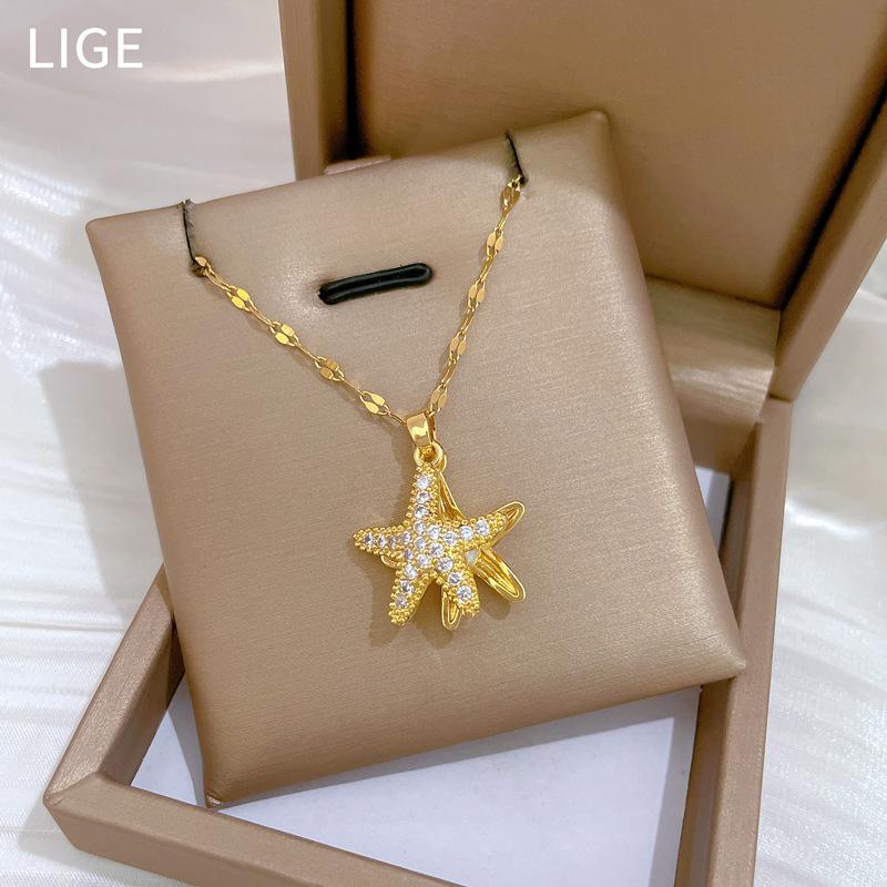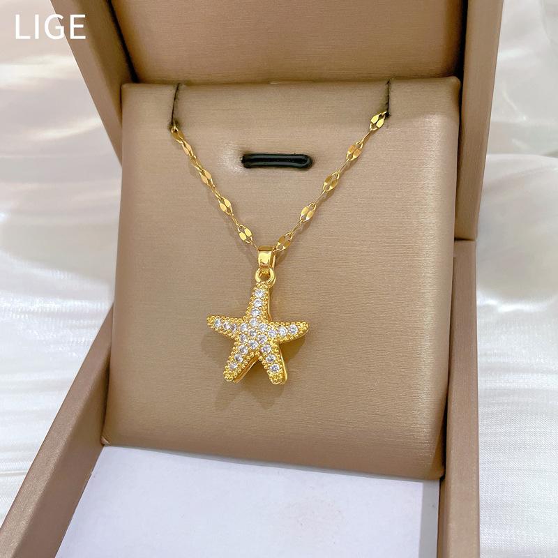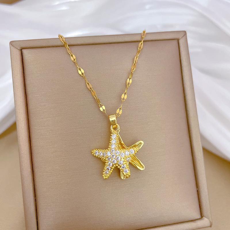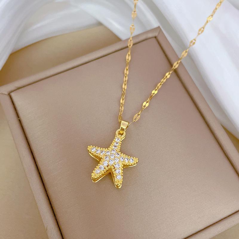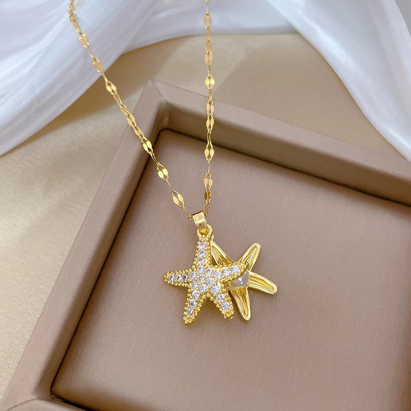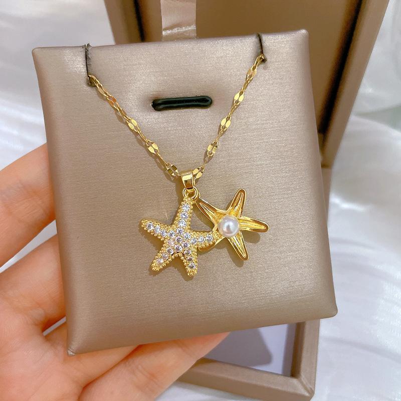 [Acero titanio] Collar elegante y lujoso con perlas de estrella de mar, cadena de clavícula para mujer, cadena de acero titanio.