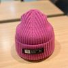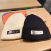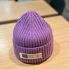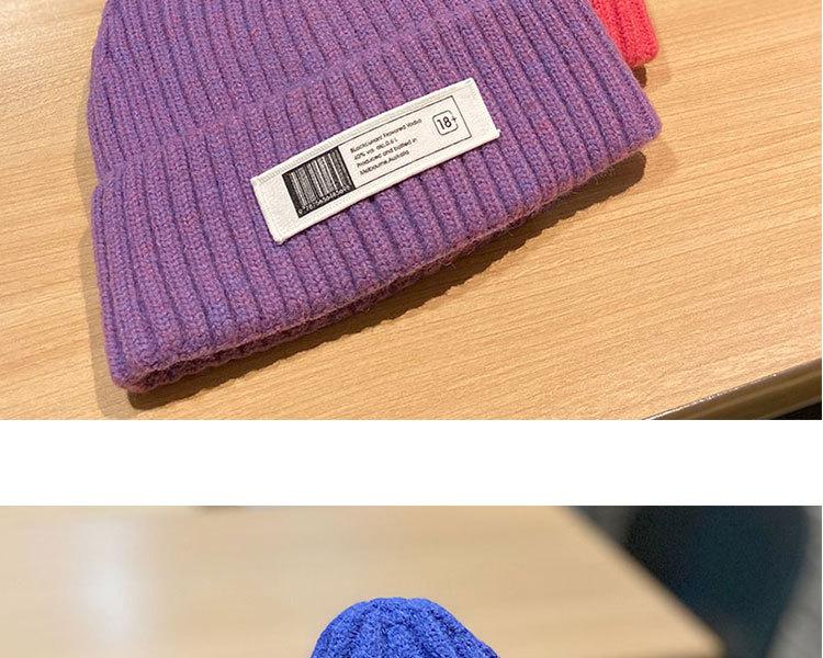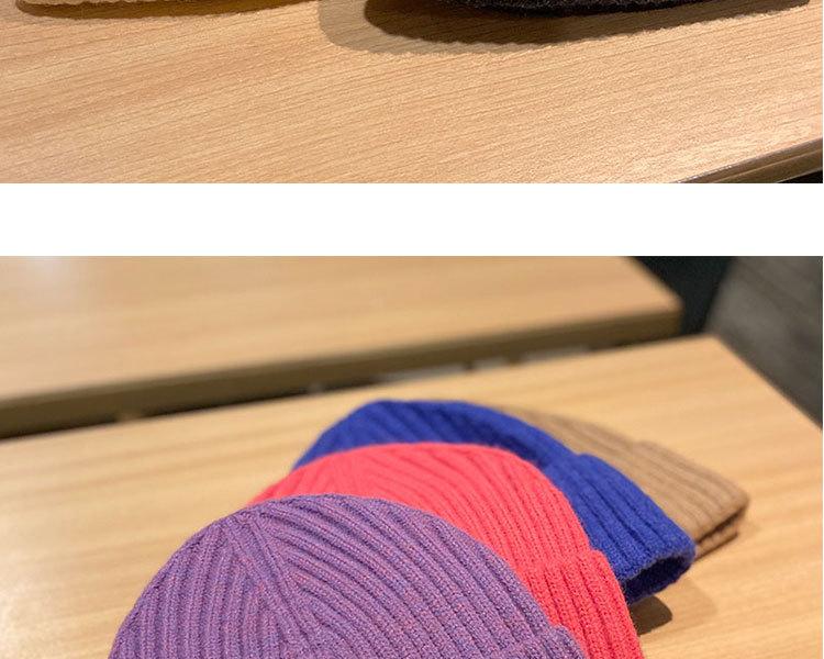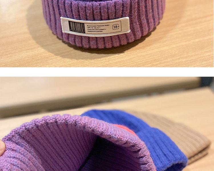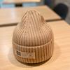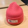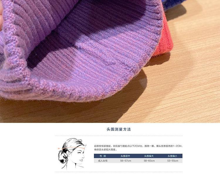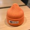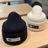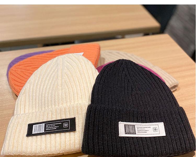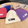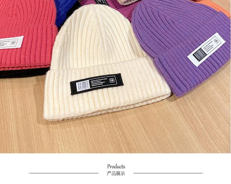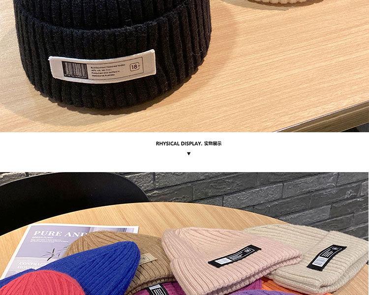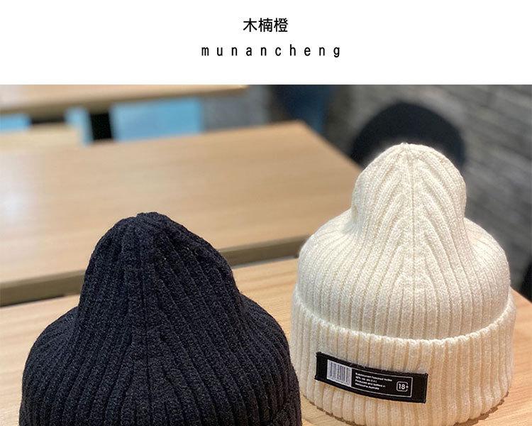 Gorro de lana estilo coreano para mujer, gorro de lana de color sólido con parche para adelgazar la cara, gorro de punto grueso y cálido, gorro informal de moda para el frío.