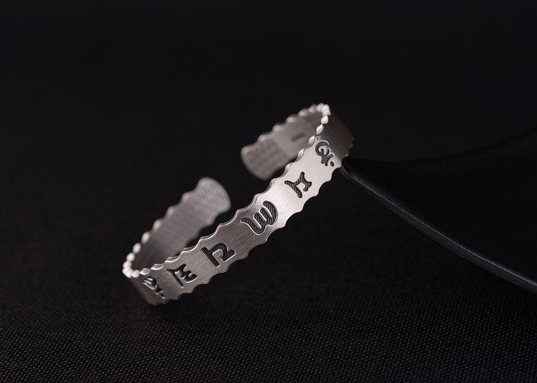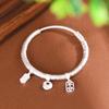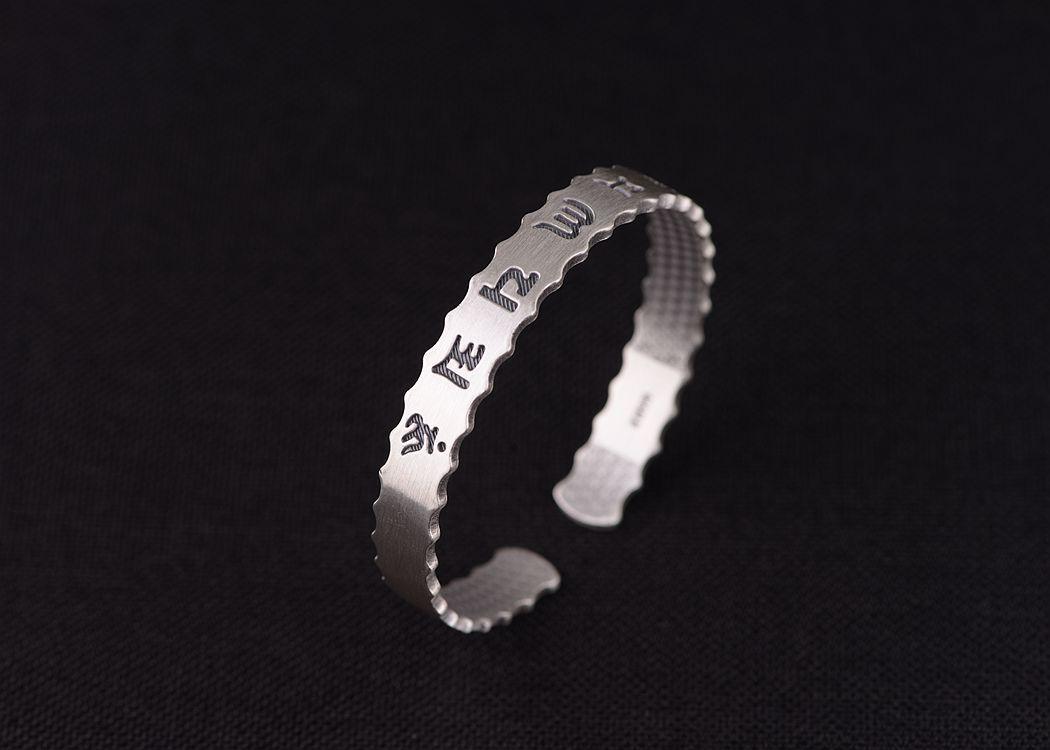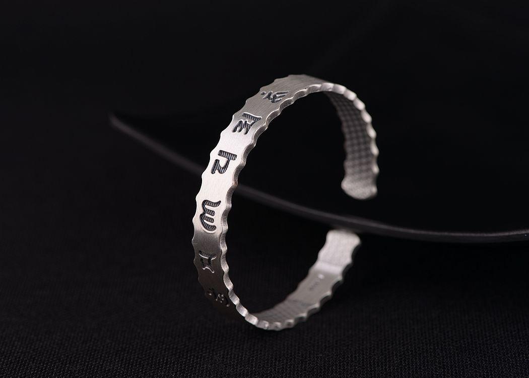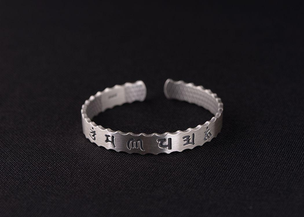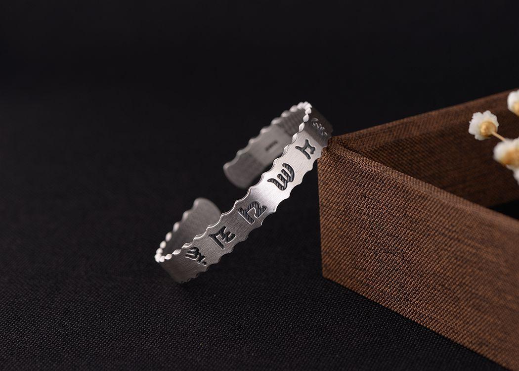 Rey Ciervo Dorado plata pura mate vintage plata tailandesa al por mayor Pulsera abierta de mantra de seis palabras estilo chino para mujer con onda de agua