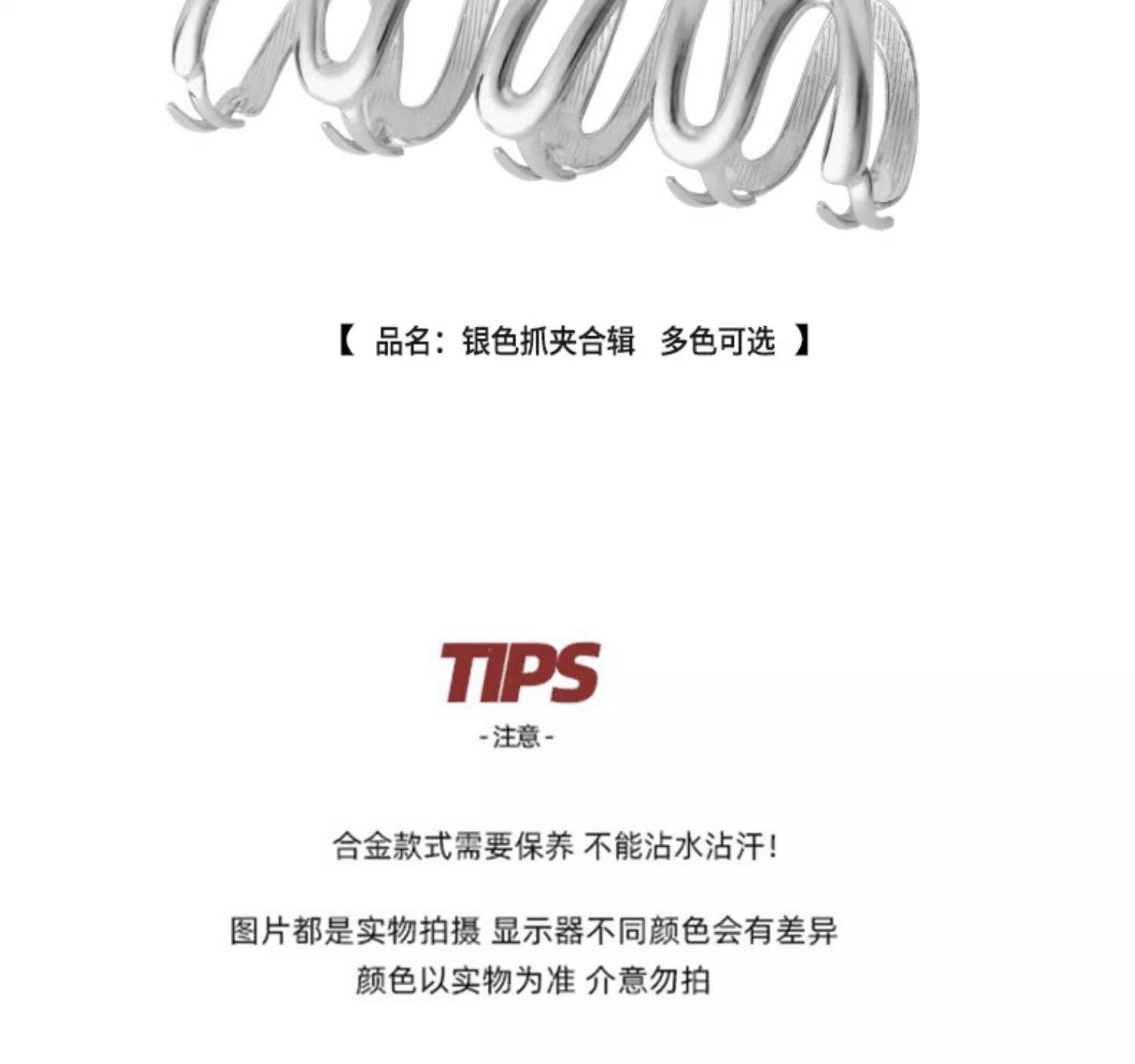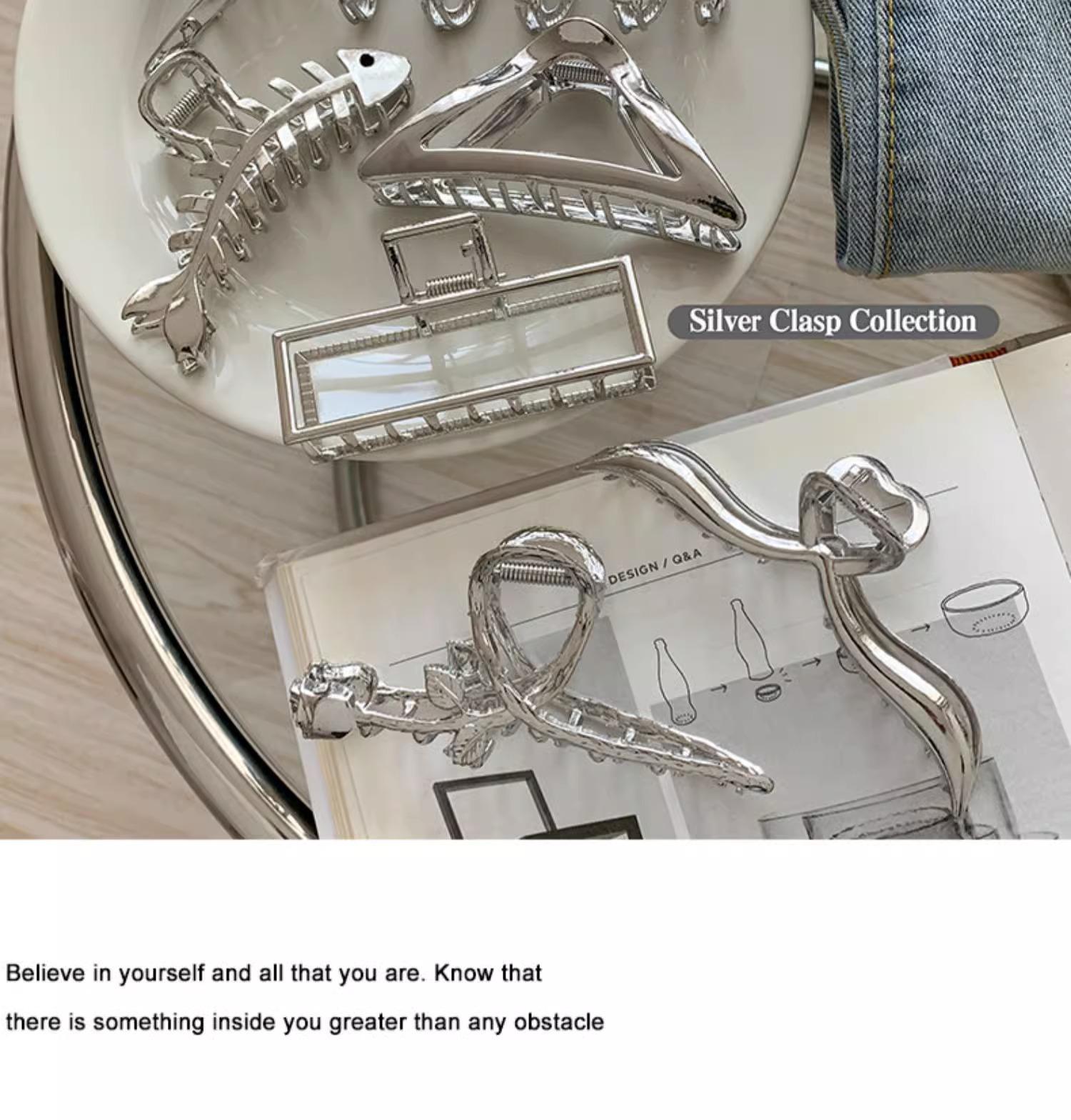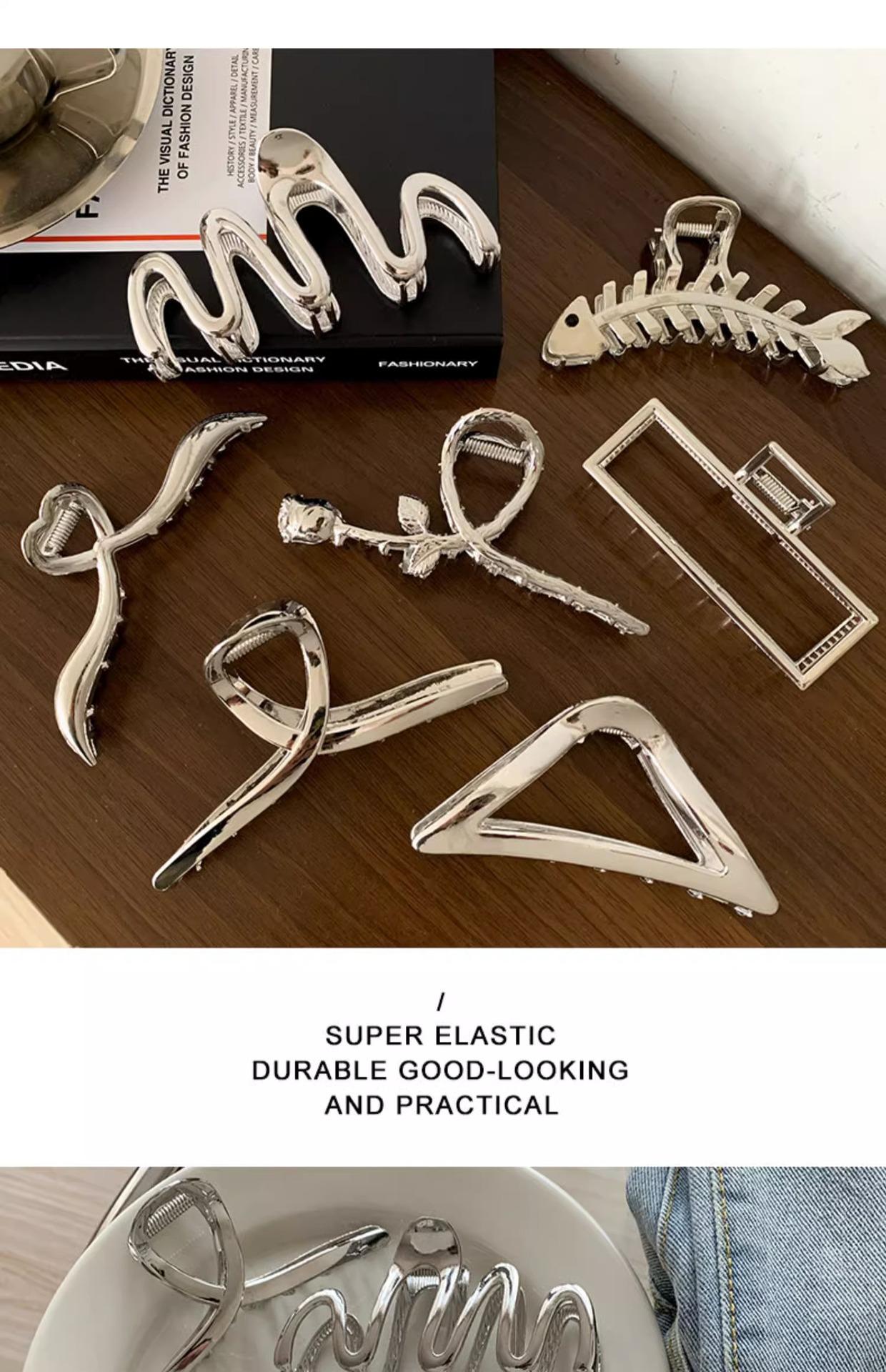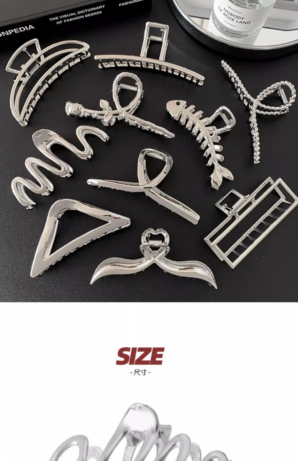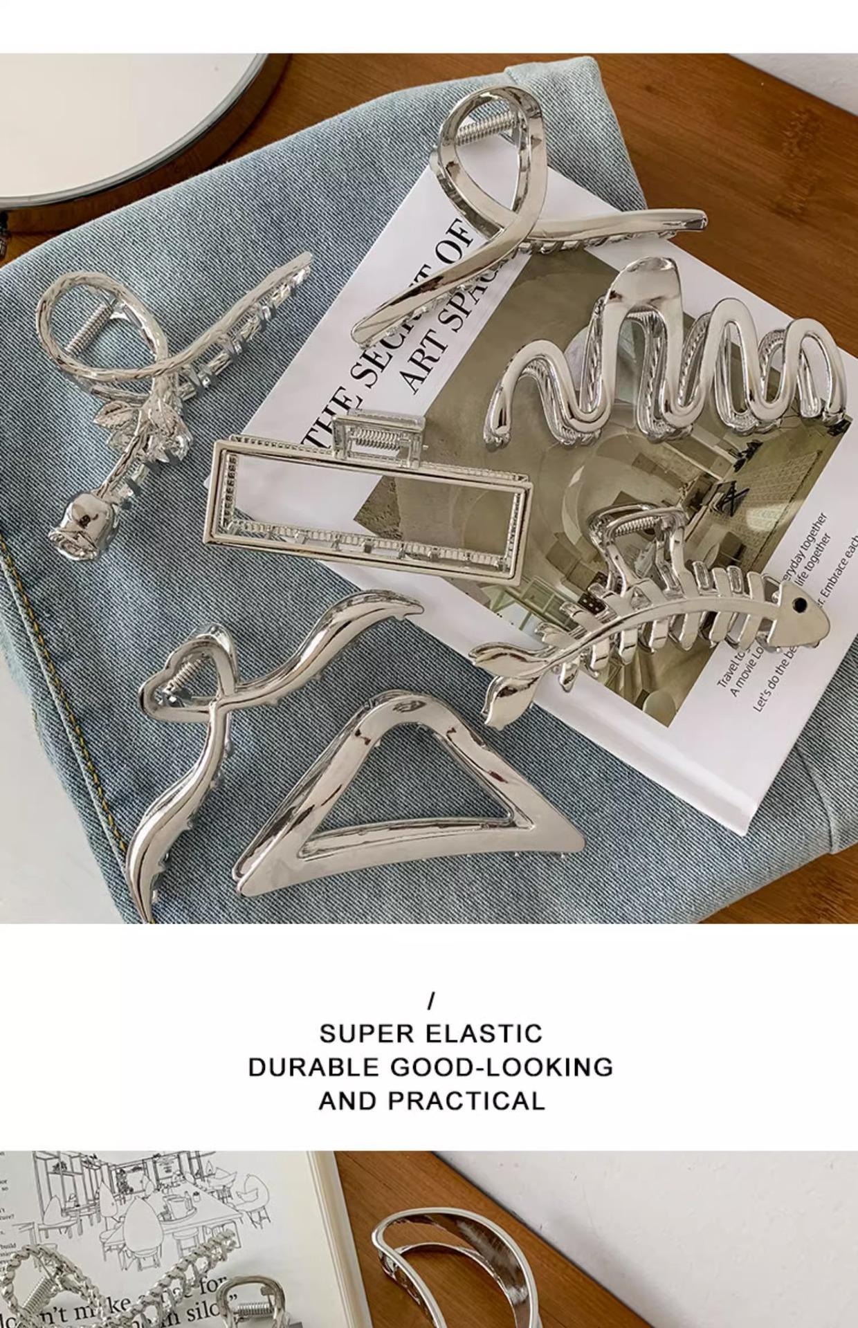 Pinza para el Cabello de Metal Plateado Sentido de Alta Gama Tamaño Grande Parte Trasera de la Cabeza Pinza de Tiburón Tarjeta para el Cabello de Celebridad Cibernética Ins Accesorios para el Cabello Fríos
