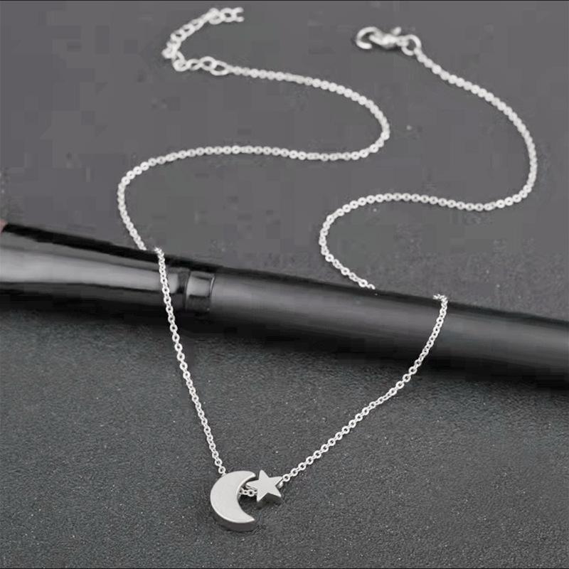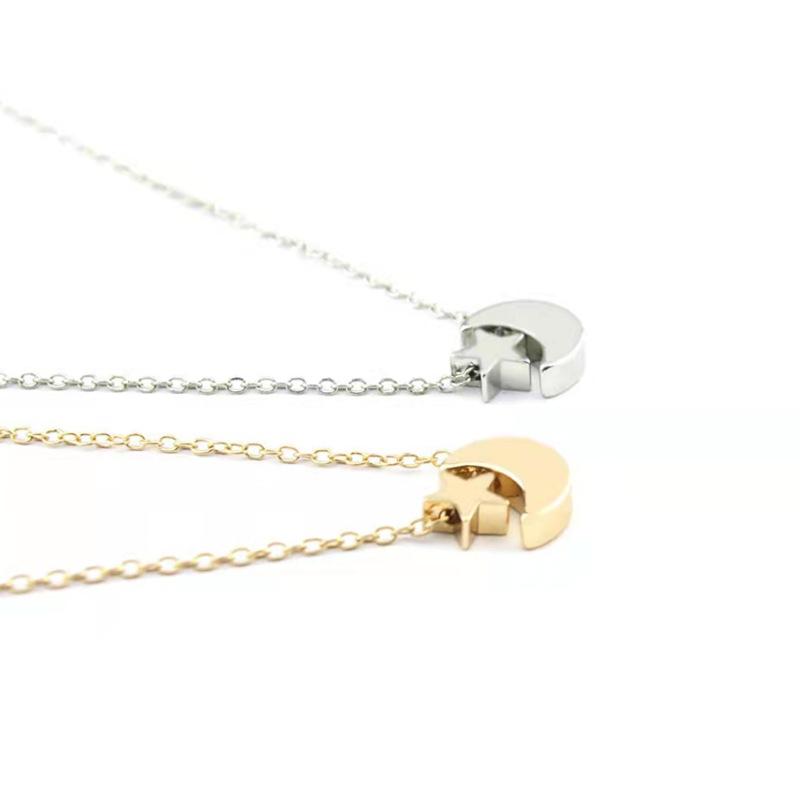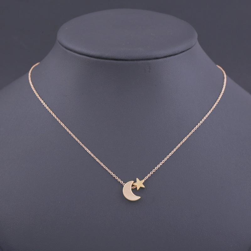 Fotografía callejera popular transfronteriza europea y americana para mujeres del mismo estilo, accesorios Dunhuang, joyería de aleación, collar simple de estrella y luna.