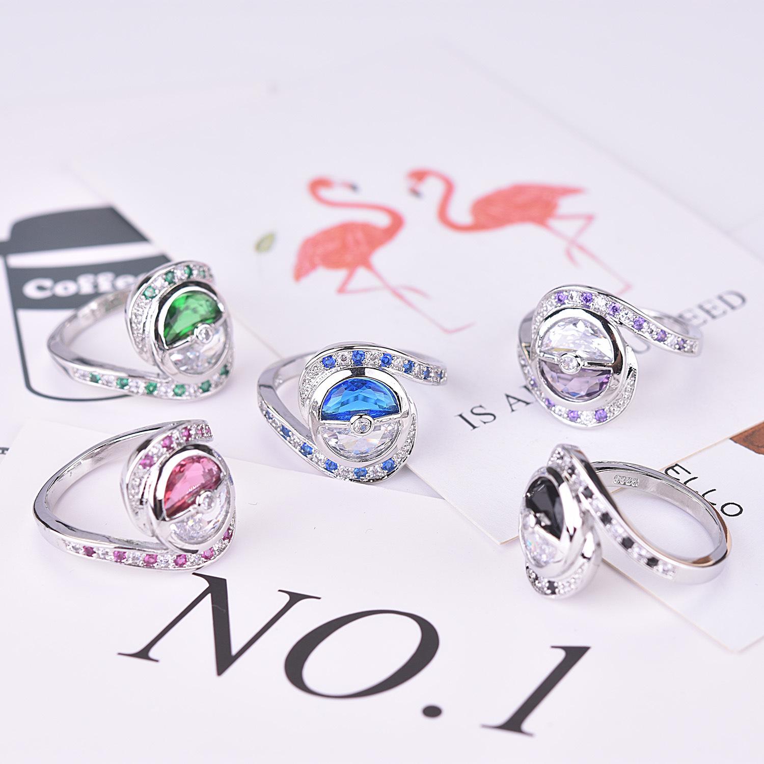 Zhen Rong desea el mejor vendido, nuevo y creativo anillo de bola de elfo multicolor de plata 925 chapado en plata, anillo de compromiso de moda europea y americana.