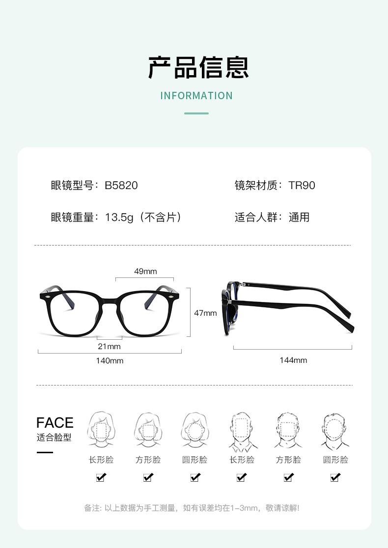 Gafas de moda anti-luz azul, sencillas y versátiles, con montura para miopía TR90, estilo casual para hombre y mujer.