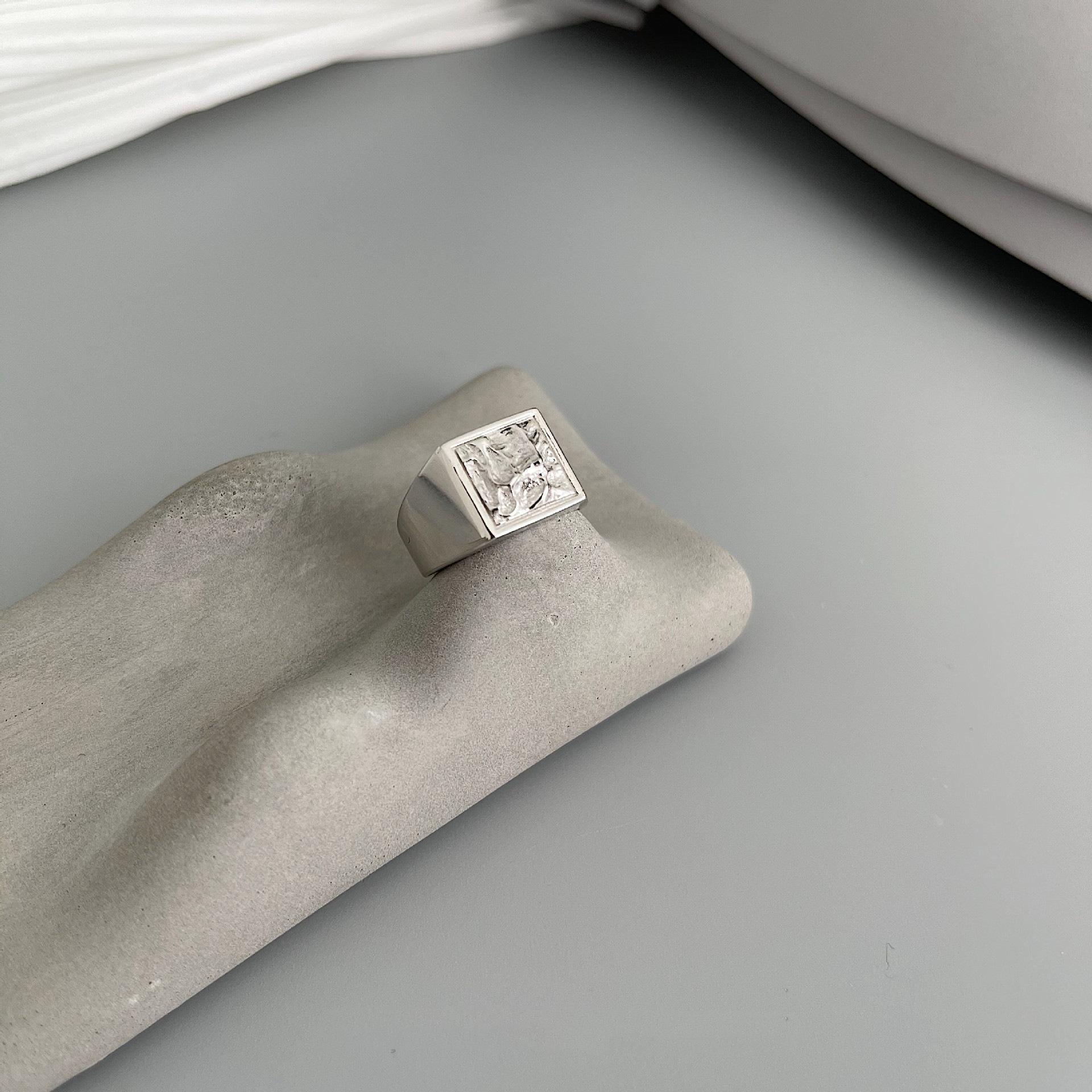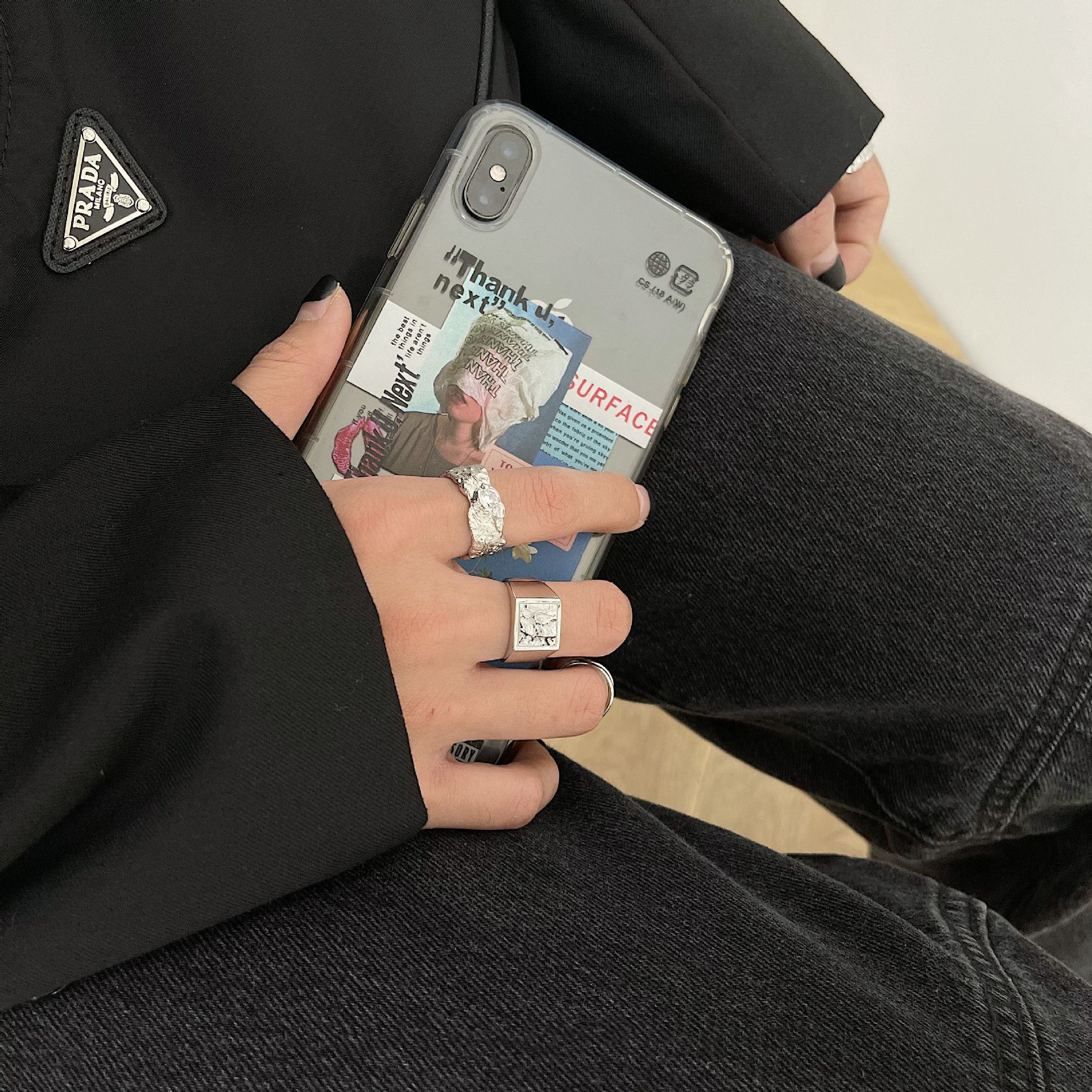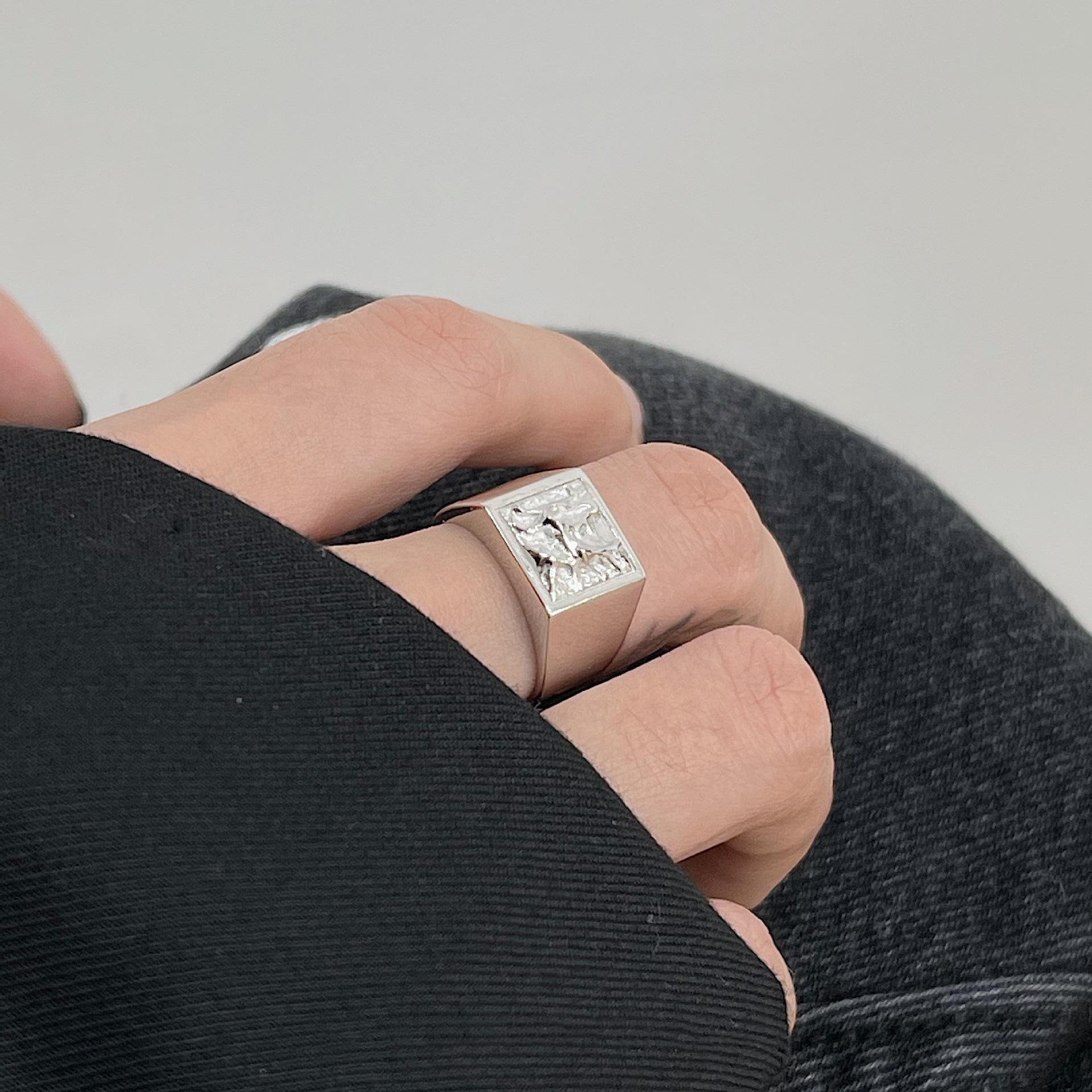 Anillo Creativo Geométrico Irregular de Lava de Plata S925 Estilo Coreano para Mujer, Moda Retro Distintivo de Papel de Estaño Abierto para Dedo