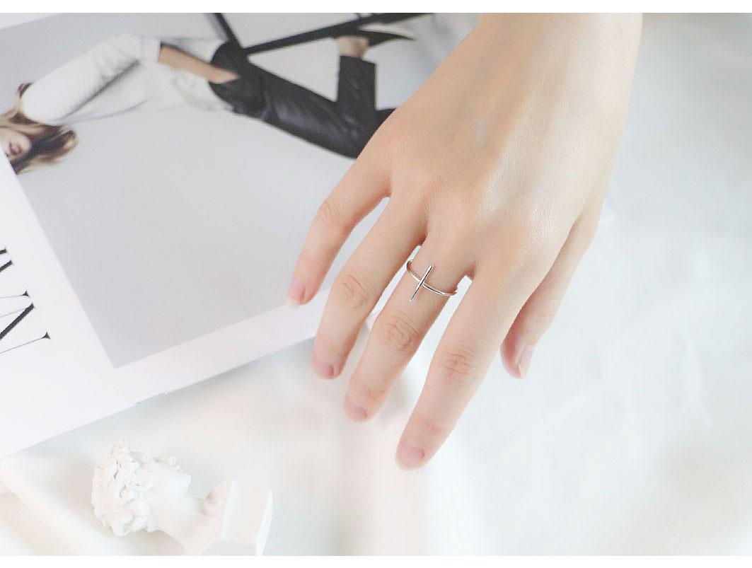 Anillo abierto cruzado brillante simple anillo largo delgado anillo de nudillo personalidad joyería estilo punk femenino Nuevo 2023