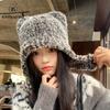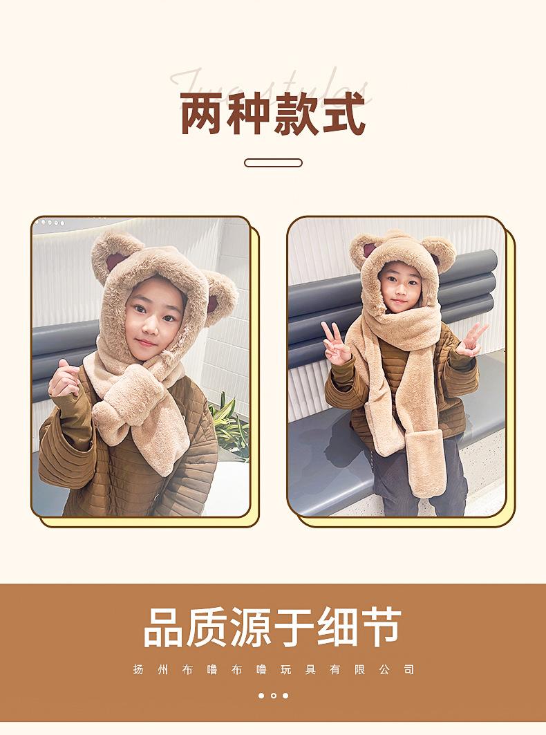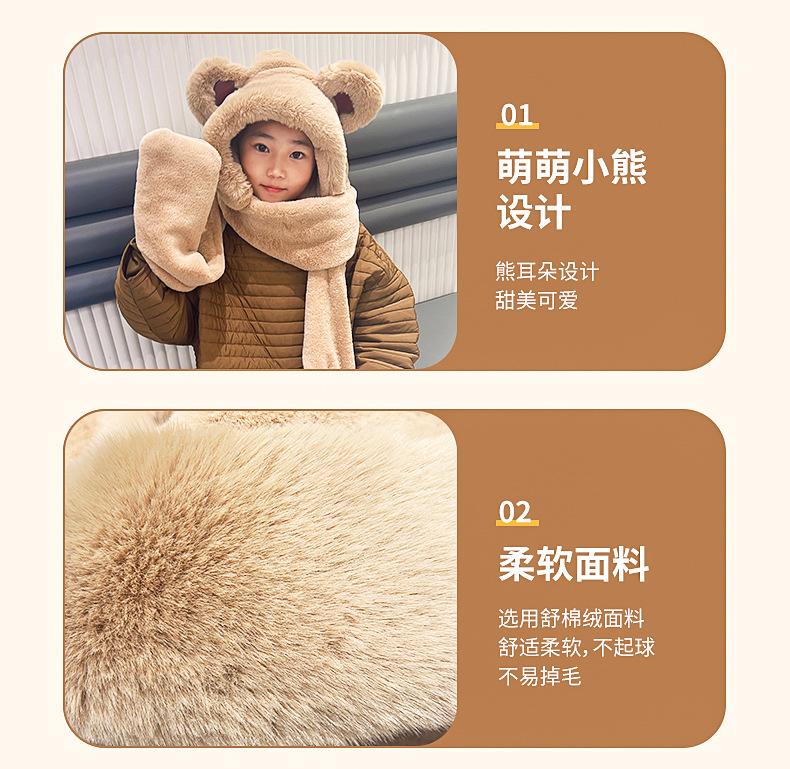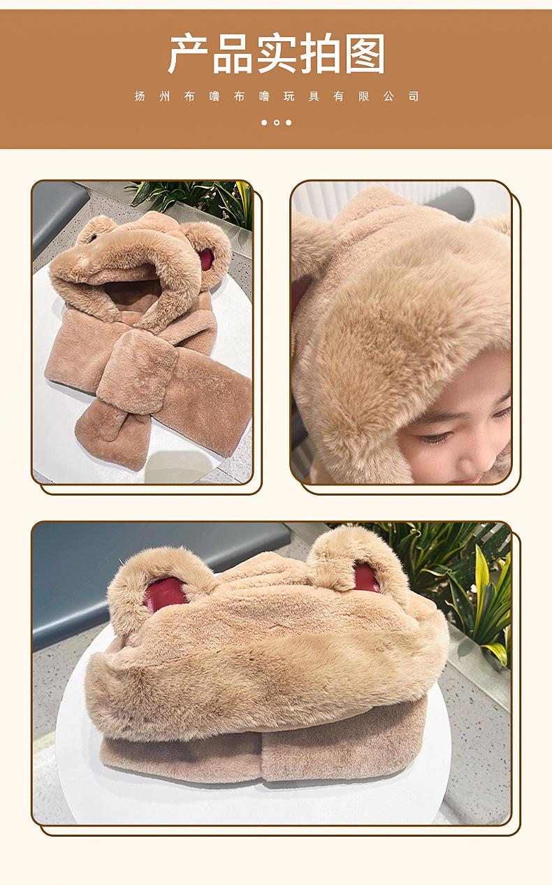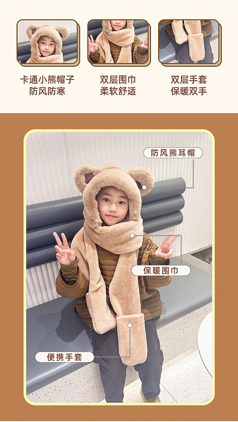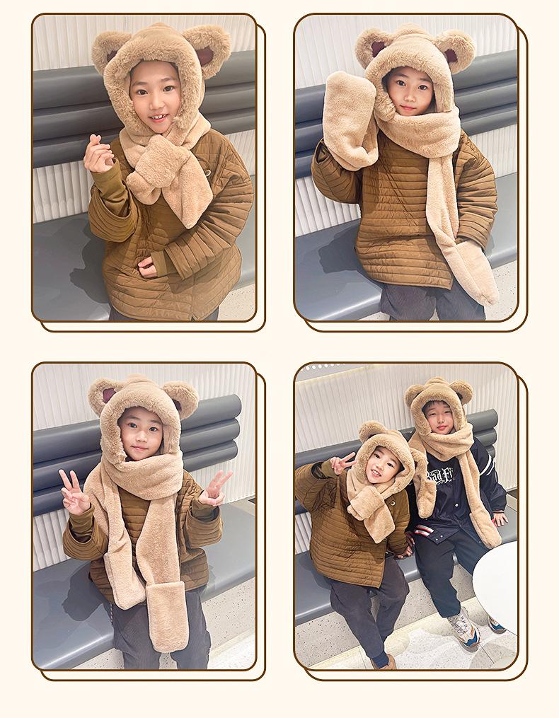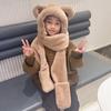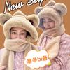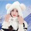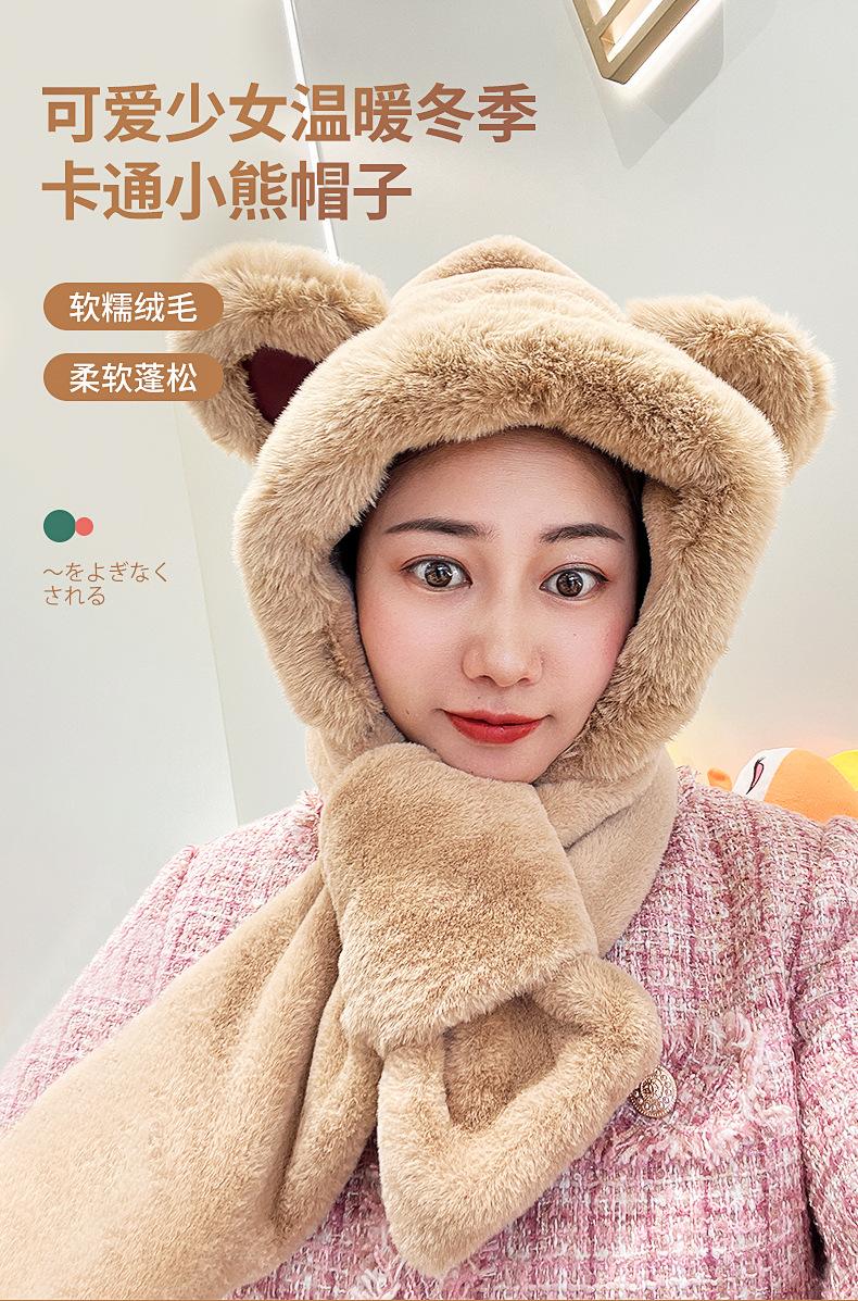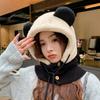 Gorro de oso lindo de invierno, bufanda tres en uno, doble capa, grueso, versátil, protección para los oídos para estudiantes, gorro cálido