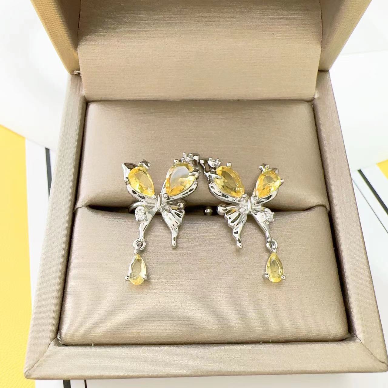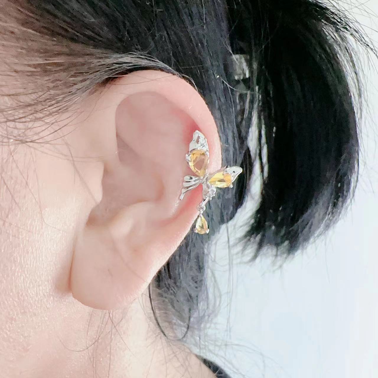 Clip para Hueso de Oreja de Mariposa con Incrustaciones de Circonio Diamante Amarillo Diseño Nicho Femenino Aretes de Estilo Frío de Alta Gama Aretes Combinables