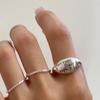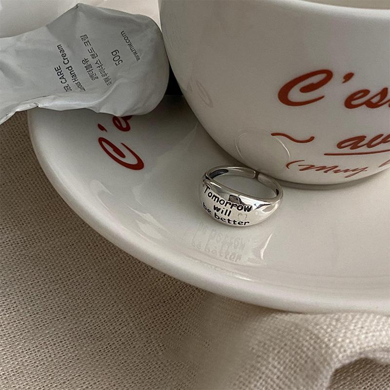 Anillo Simple de Gota de Agua con Letra para Mujer Moda Retro Distintivo Plata S925 Apilable Hip-Hop Anillo Abierto Anillo de Dedo de Comida Moderno