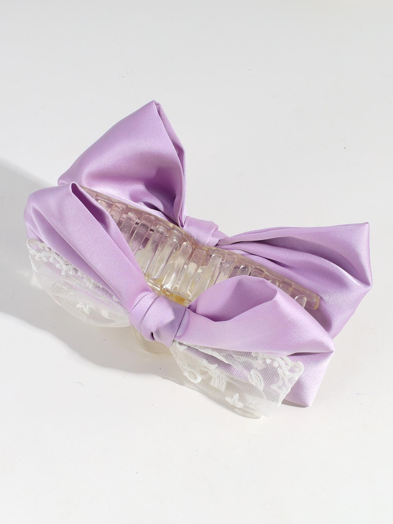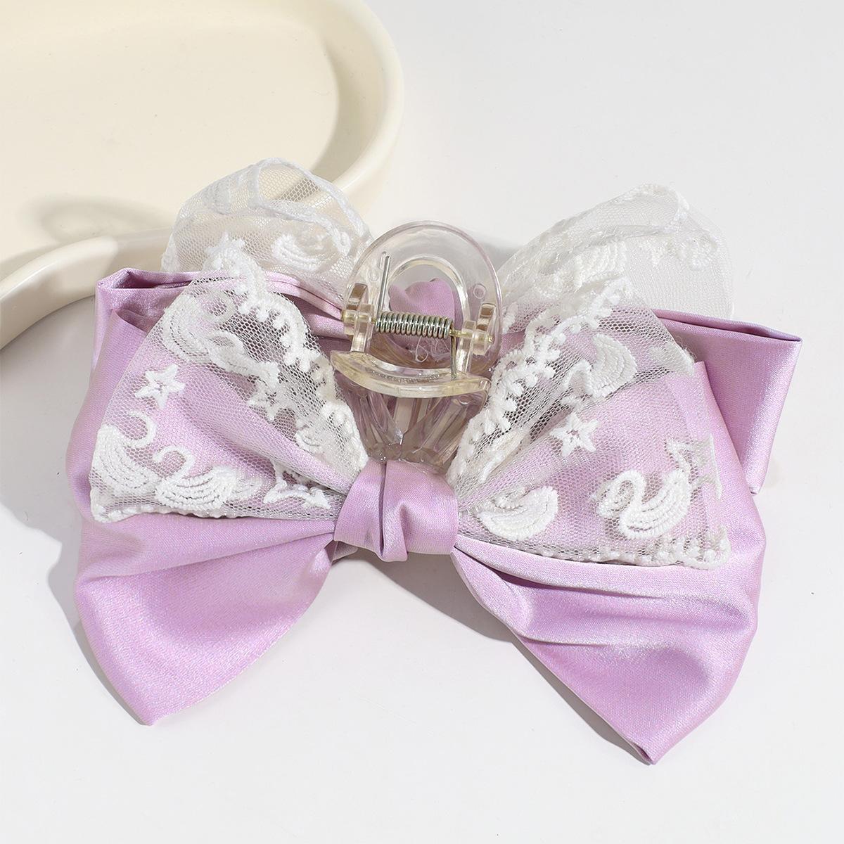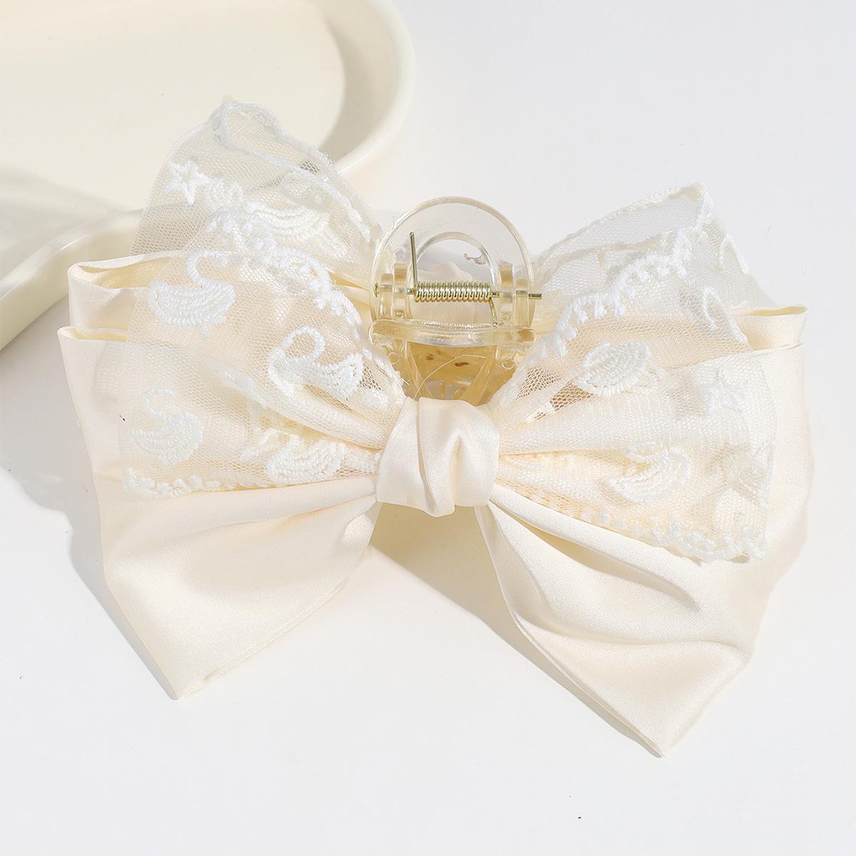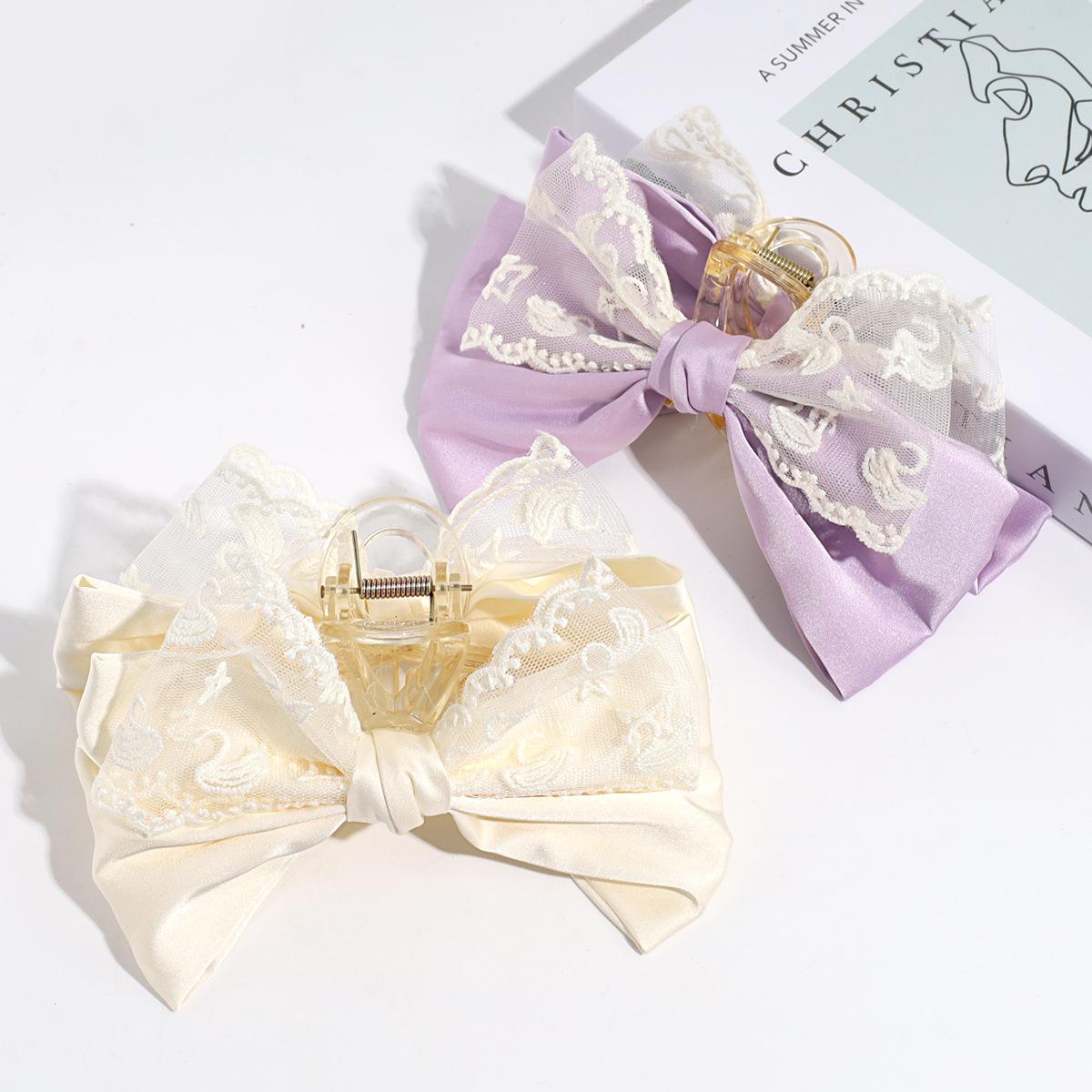 Pinza para el cabello con lazo de color sólido, estilo coreano, con bordado en la parte posterior, elegante pinza para el cabello con encaje y pinza de tiburón