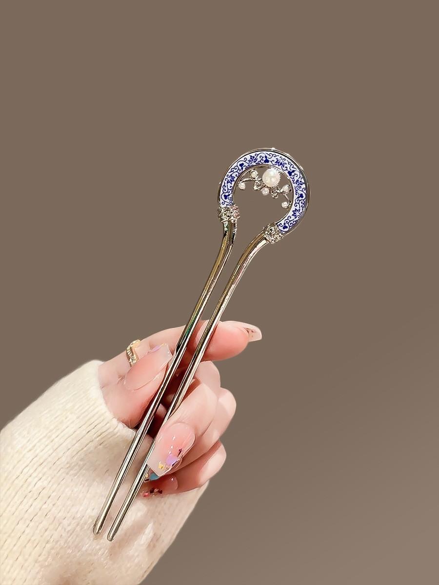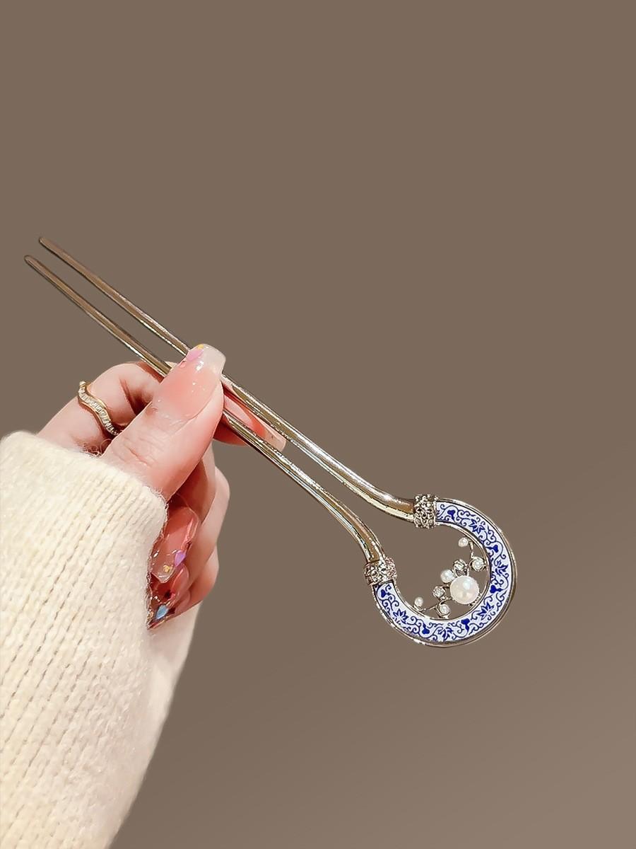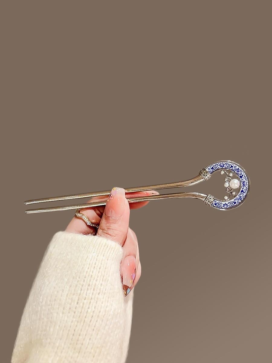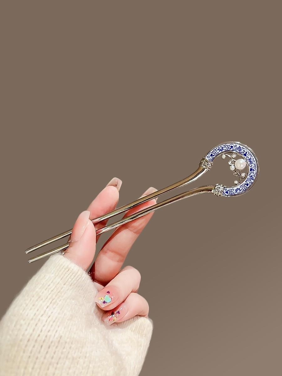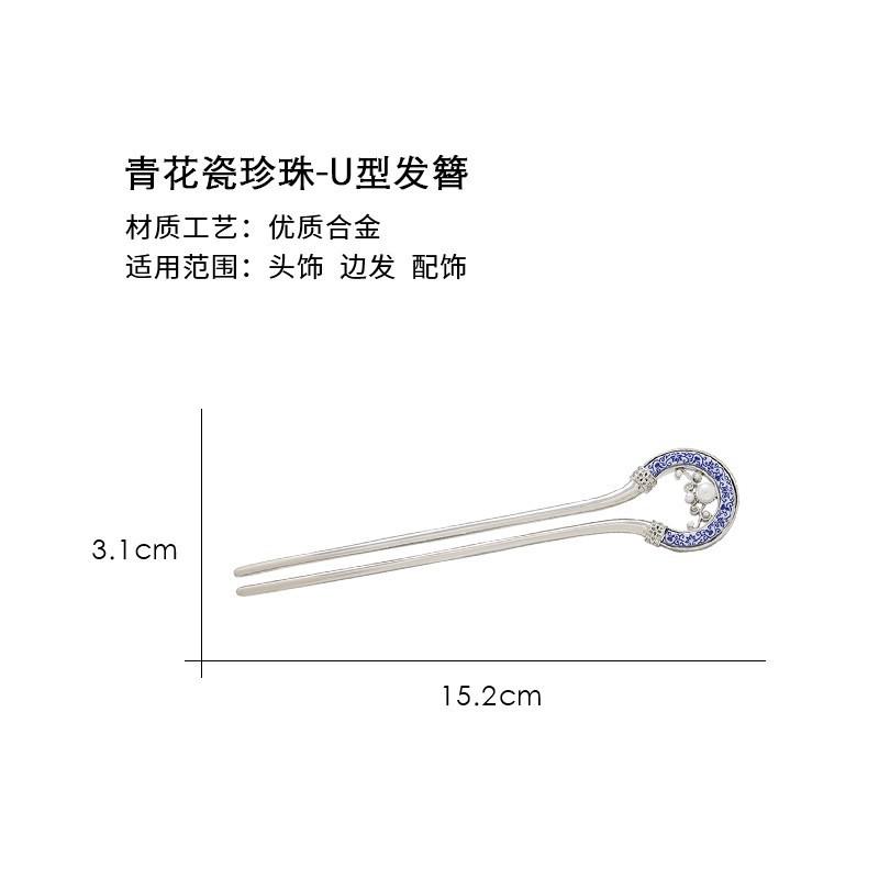 Horquilla Clásica Guofeng en Forma de U para Mujer Porcelana Azul y Blanca Nuevo Estilo Chino Elegante Horquilla para Moño para el Cabello Sentido Avanzado Horquilla para el Cabello Tocado Horquilla