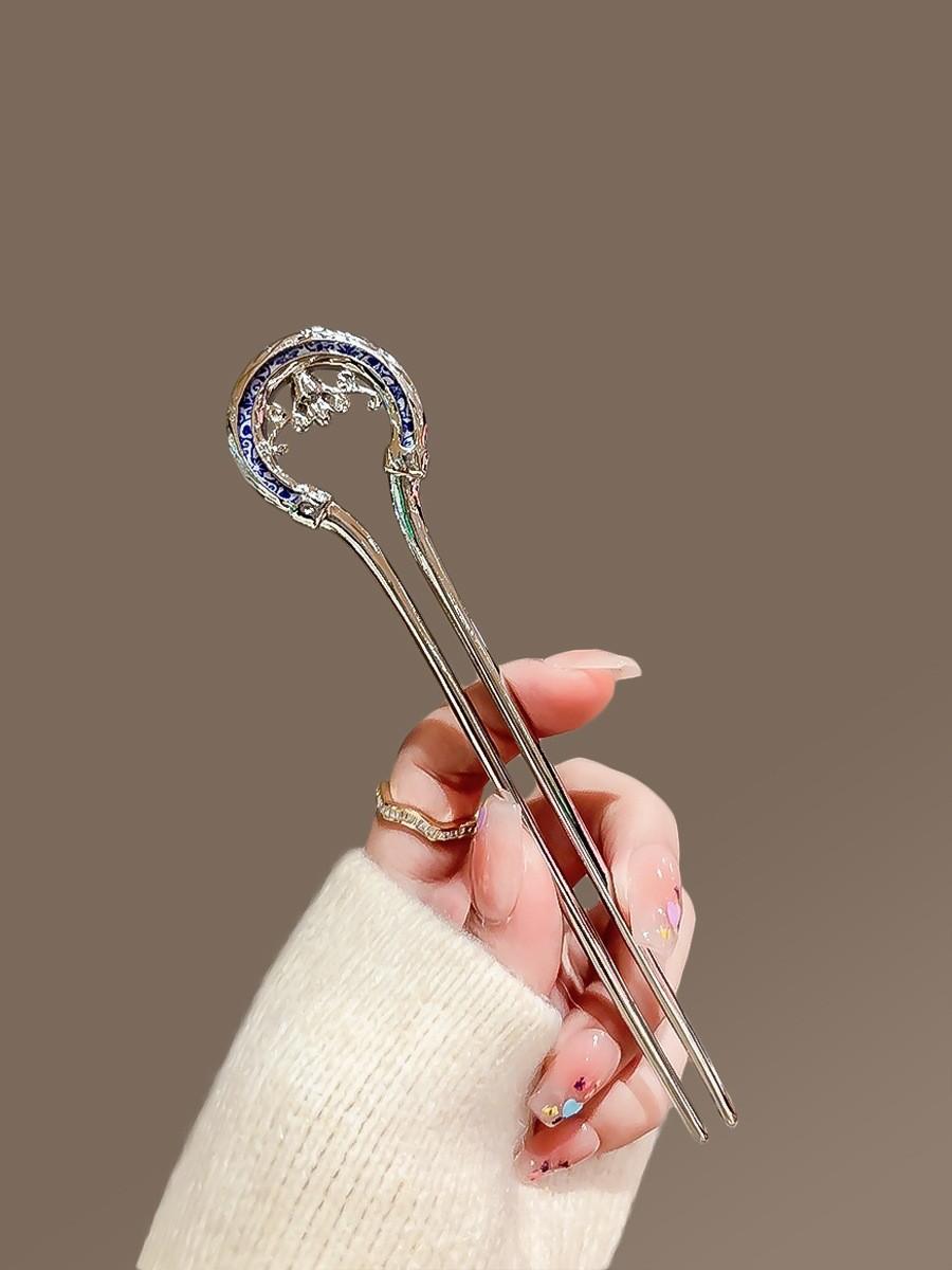Pearl abalone hairpin-gold, Blue and white porcelain hairpin-silver