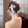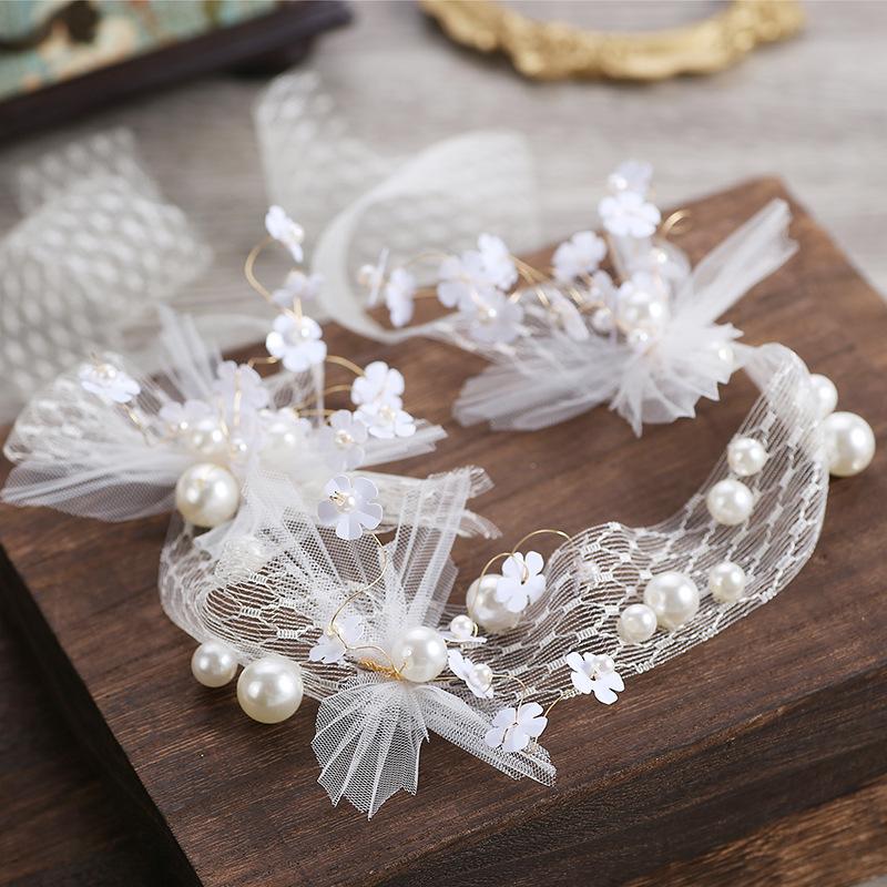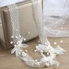 Tocado de novia con gasa blanca y flores, hecho a mano, con perla, para el pelo, para vestido de novia vintage, accesorios para el pelo