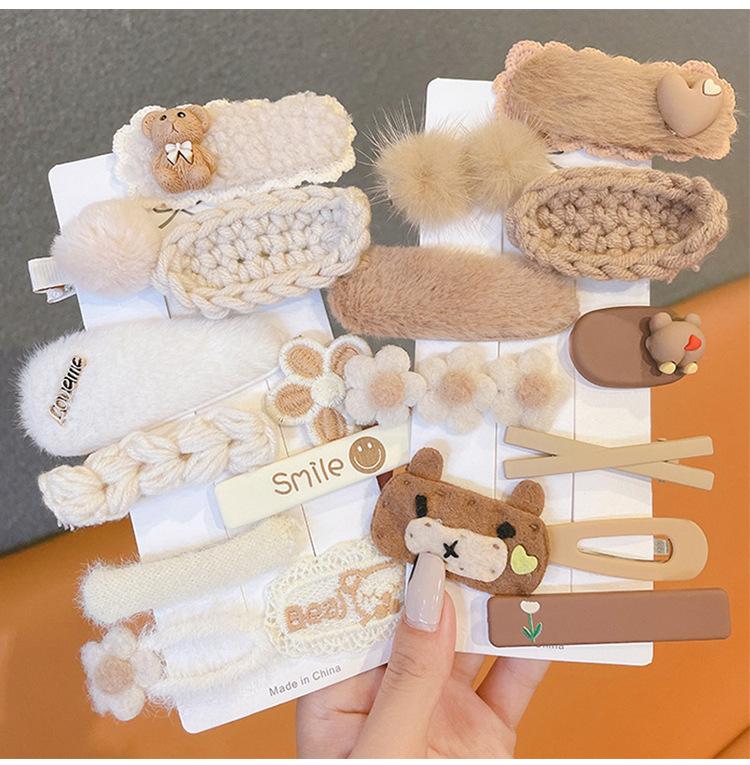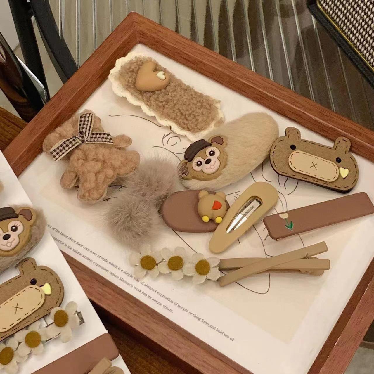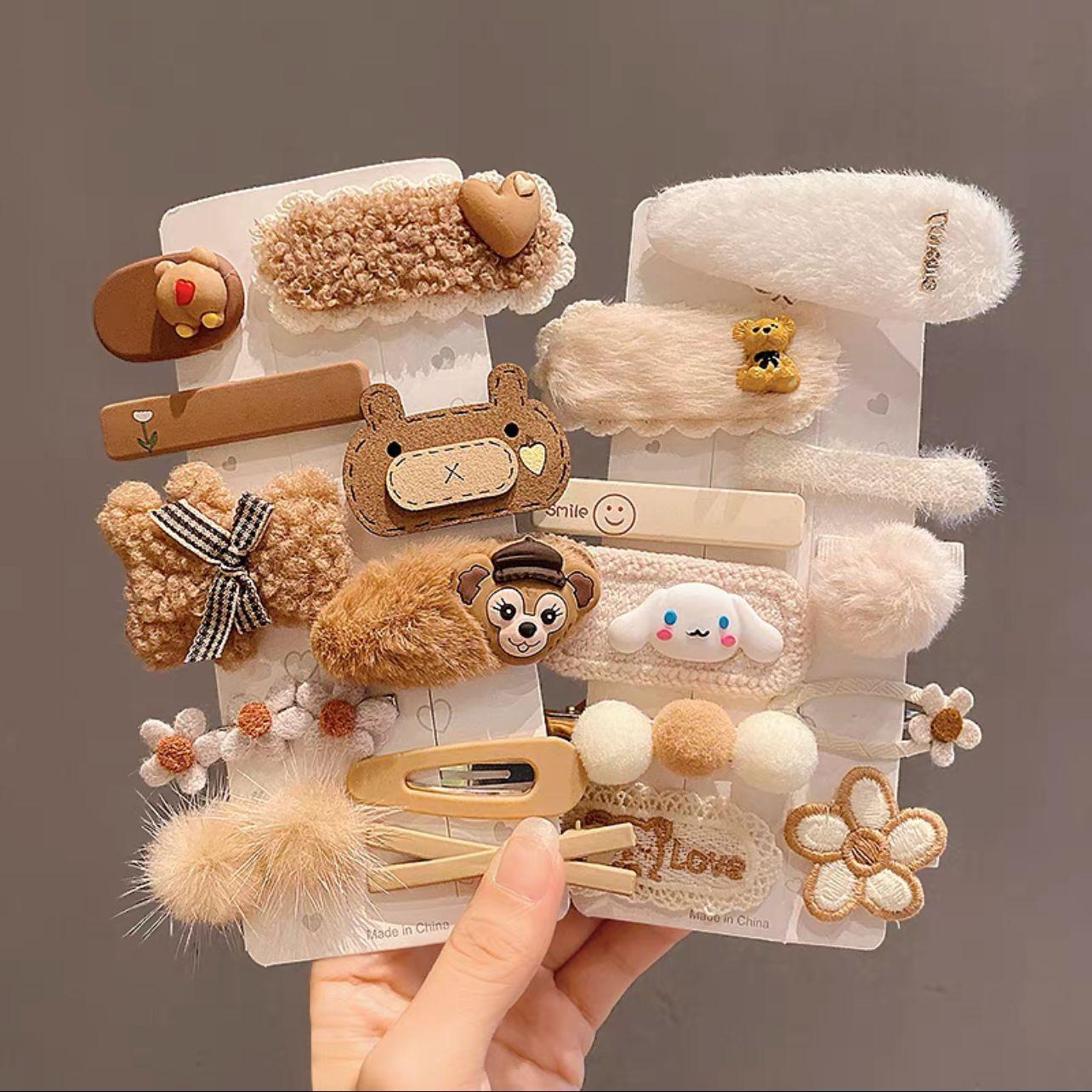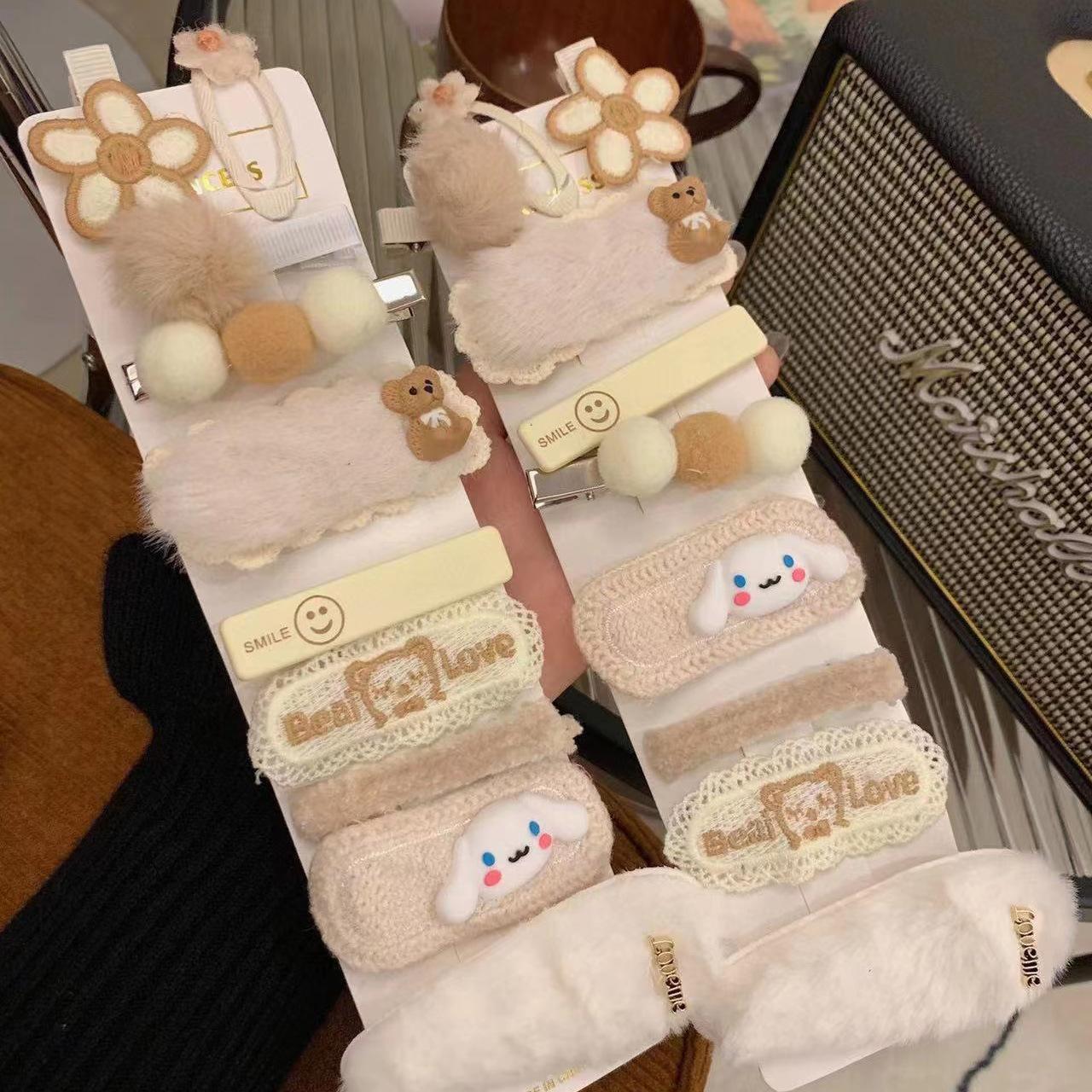 1# Duffy Bear Plush Hairpin Set, 2# Yugui Dog Plush Hairpin Set, 3# Small love plush hairpin set, 4# White Flo...