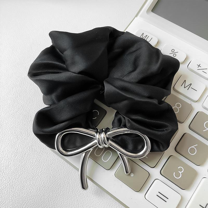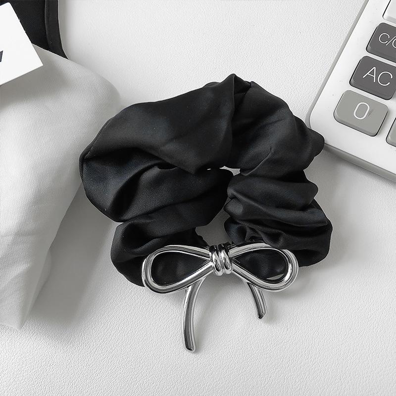 Cuerda de cabeza de lazo de metal negro simple 2024 nuevo anillo de pelo de bola de temperamento de alta gama cuerda de pelo banda de goma