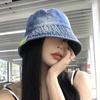 Sombrero de Pescador de Mezclilla Lavada Estilo Coreano para Mujer Verano Estilo Japonés Retro Cabeza Grande Sombrero de Cubeta Que Muestra la Cara Sombrero Parasol Pequeño