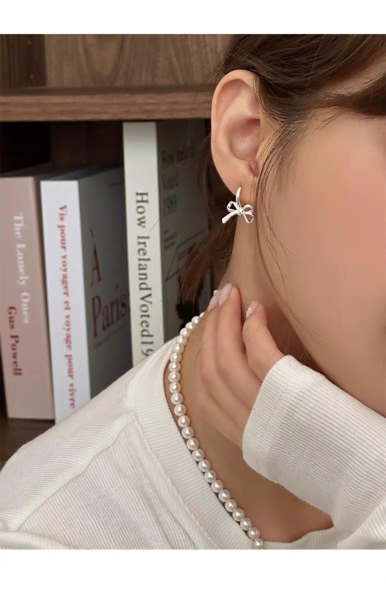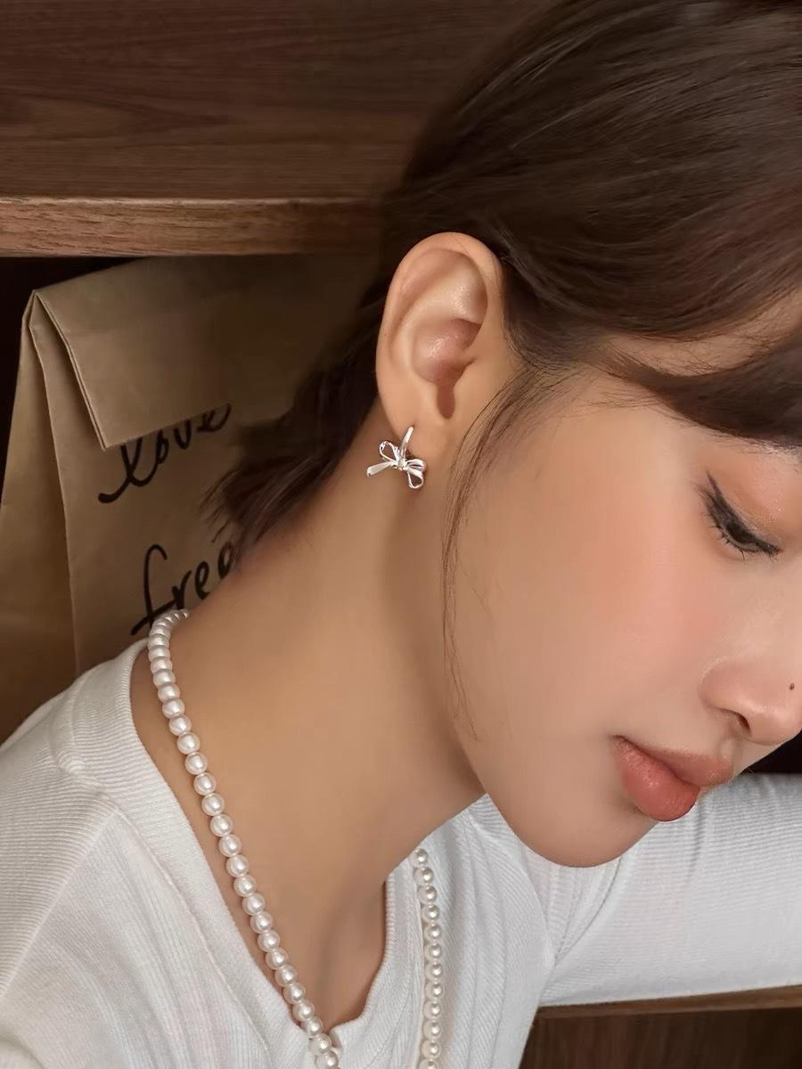 Pendientes de lazo con diseño de nicho, de alta gama, con aguja de plata, nuevos 2024, con hebilla explosiva para la oreja, pequeños pendientes estilo Chanel para mujer.