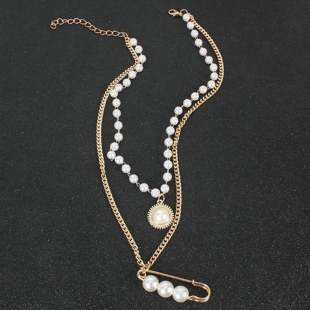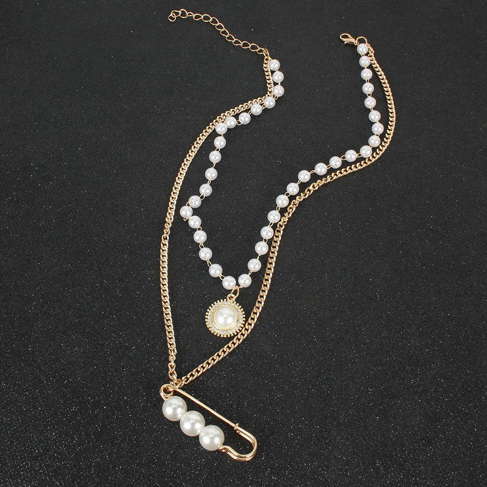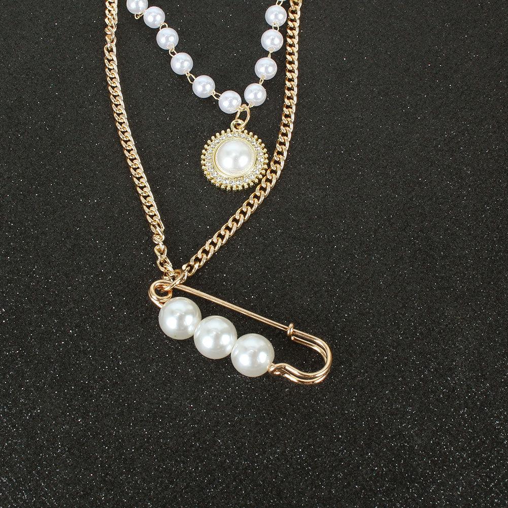 Collar con colgante de aleación de perlas multicapa de moda europea y americana, joyería de oro retro transfronteriza para mujer 16520
