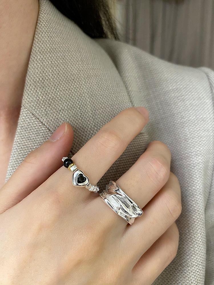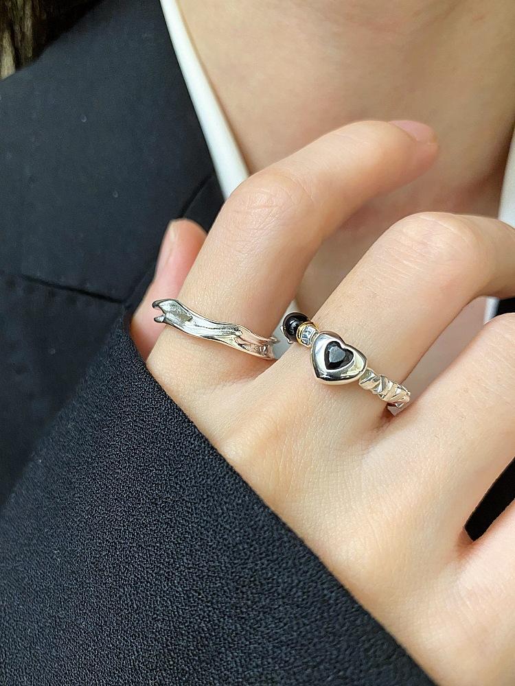 Anillo de Amor Dulce Plata Rota para Mujer Elástico Geométrico Irregular Plisado Plata S925 Anillo de Dedo Niche Popular en Internet