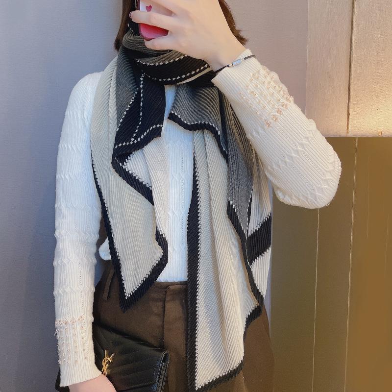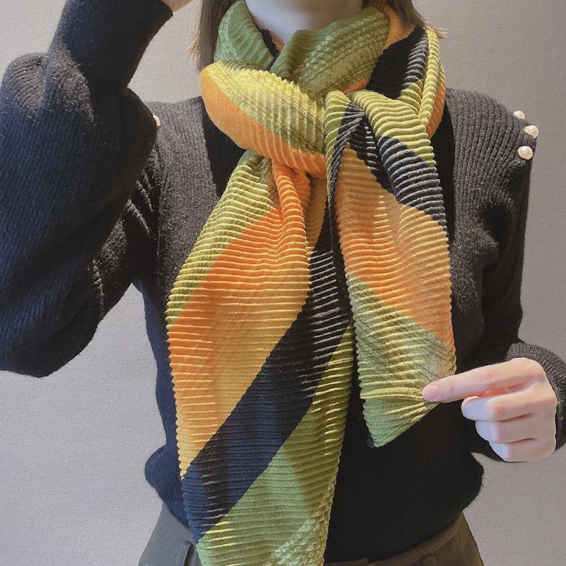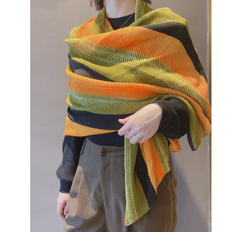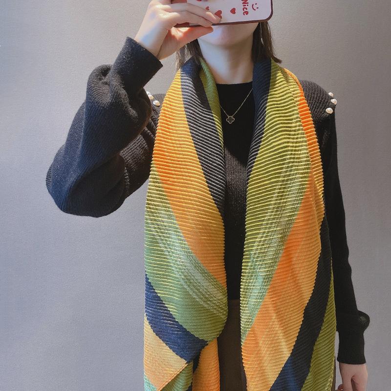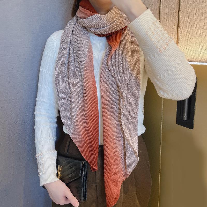 Bufanda de algodón y lino plisada de piel blanca 2023 Primavera y Otoño nuevo chal protector solar de viaje exportación transfronteriza gasa caliente mujeres