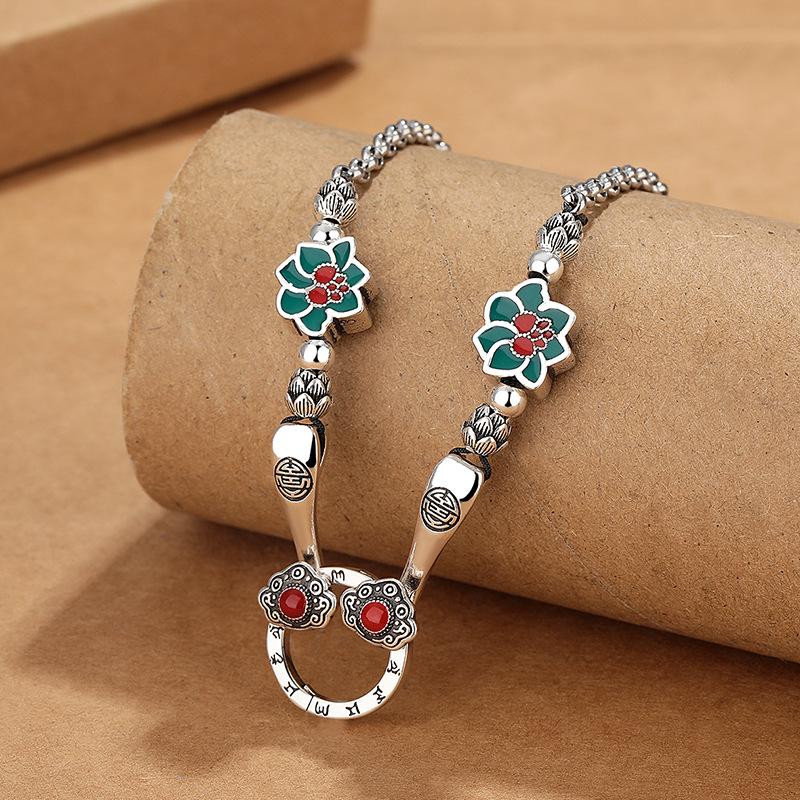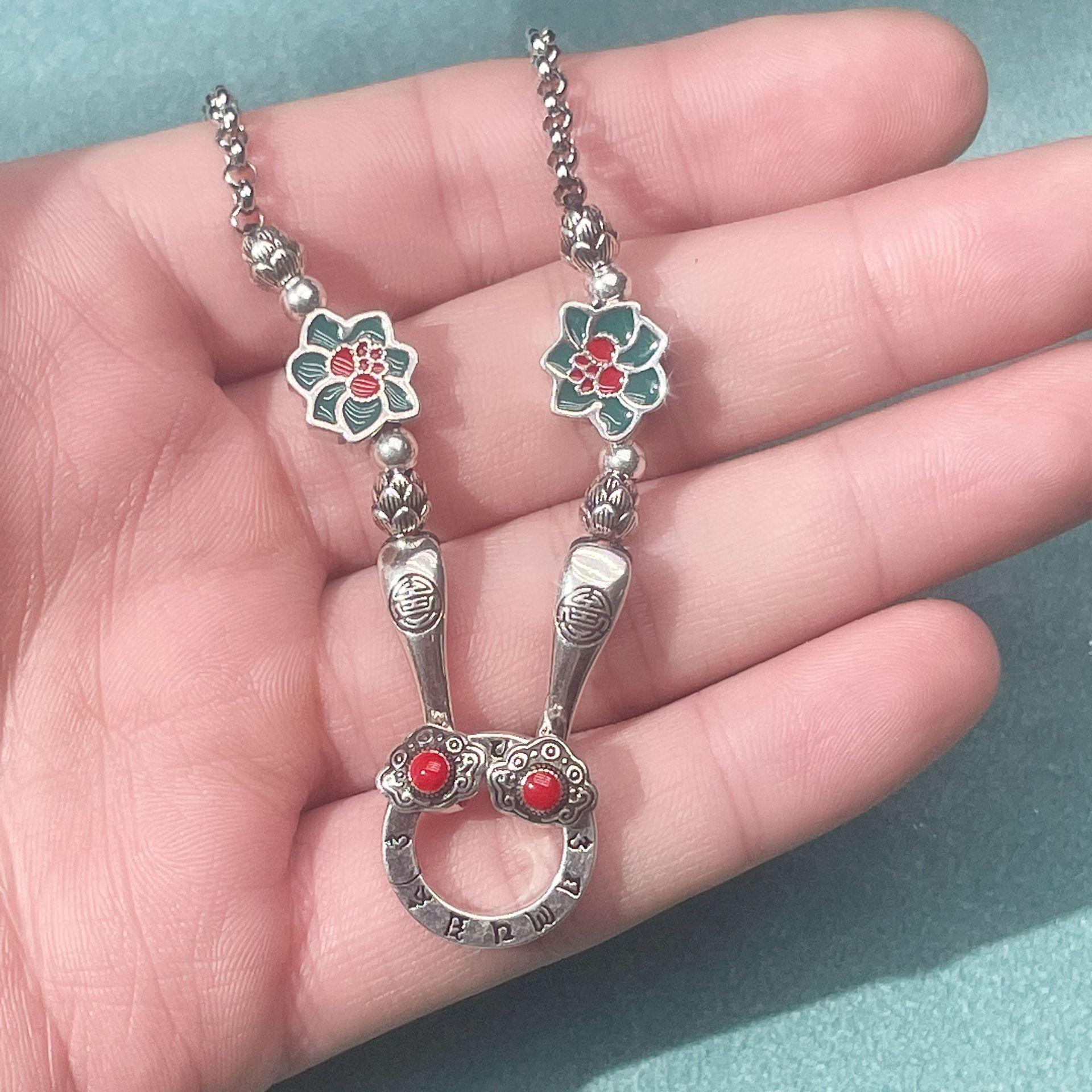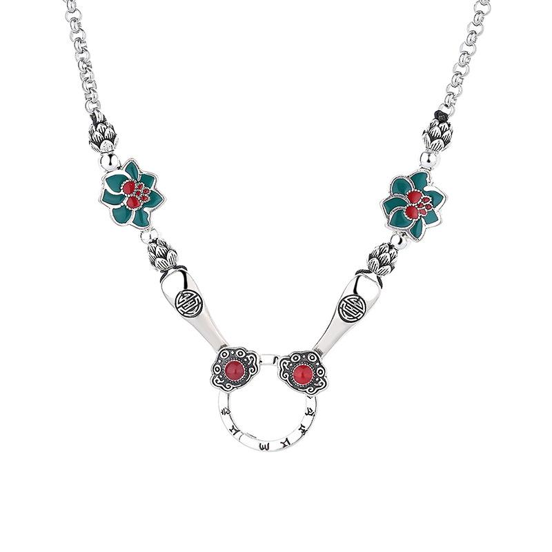 Collar de loto Ruyi de moda nacional de cloisonné, artesanía epoxi desgastada, diseño de nicho versátil retro, joyería creativa