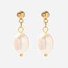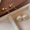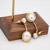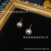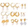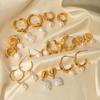 Pendientes de perlas de agua dulce de acero inoxidable europeos y americanos, nuevos pendientes de moda para damas, grandes pendientes de perla en forma de C, joyería al por mayor
