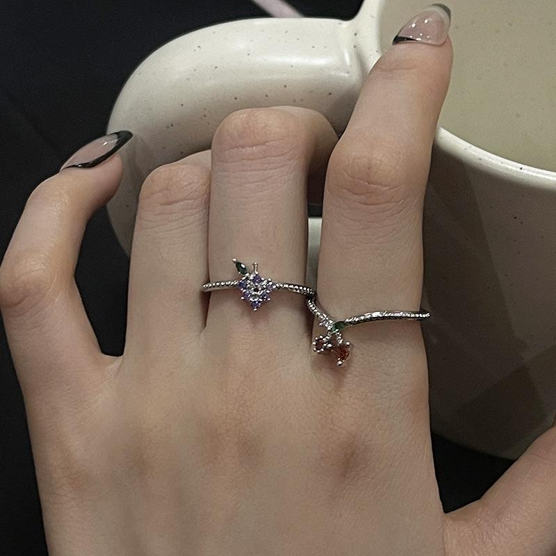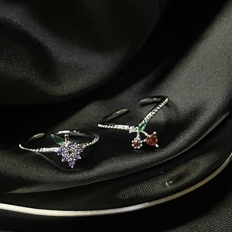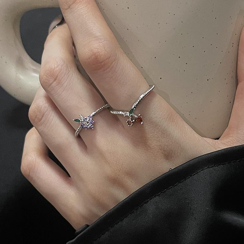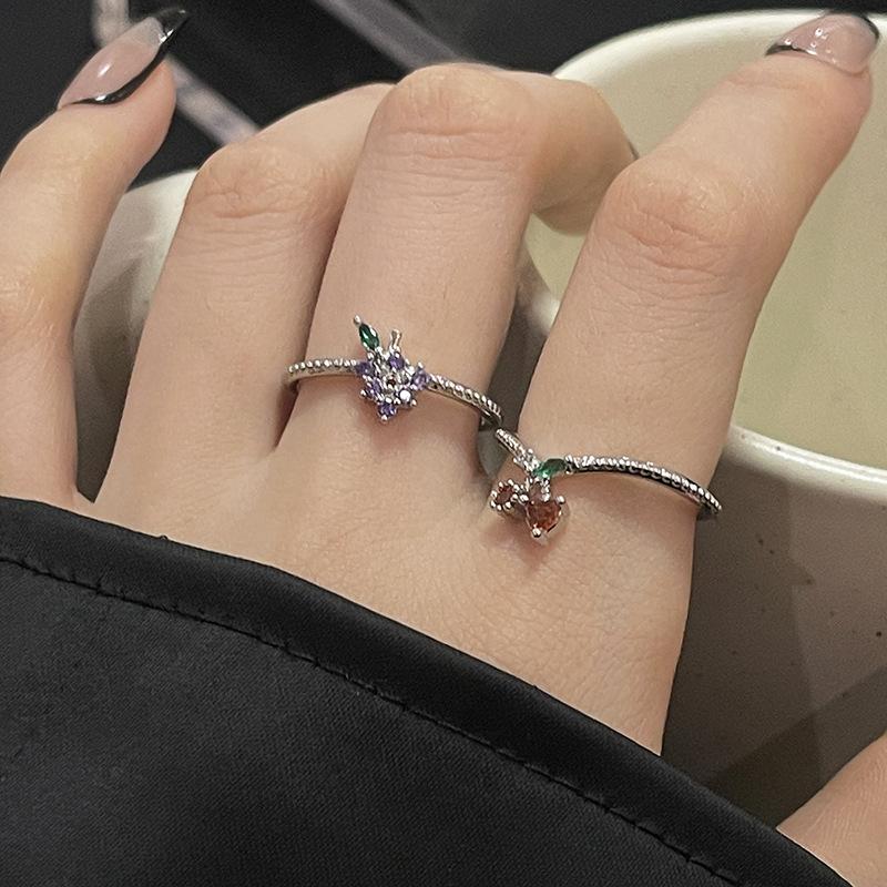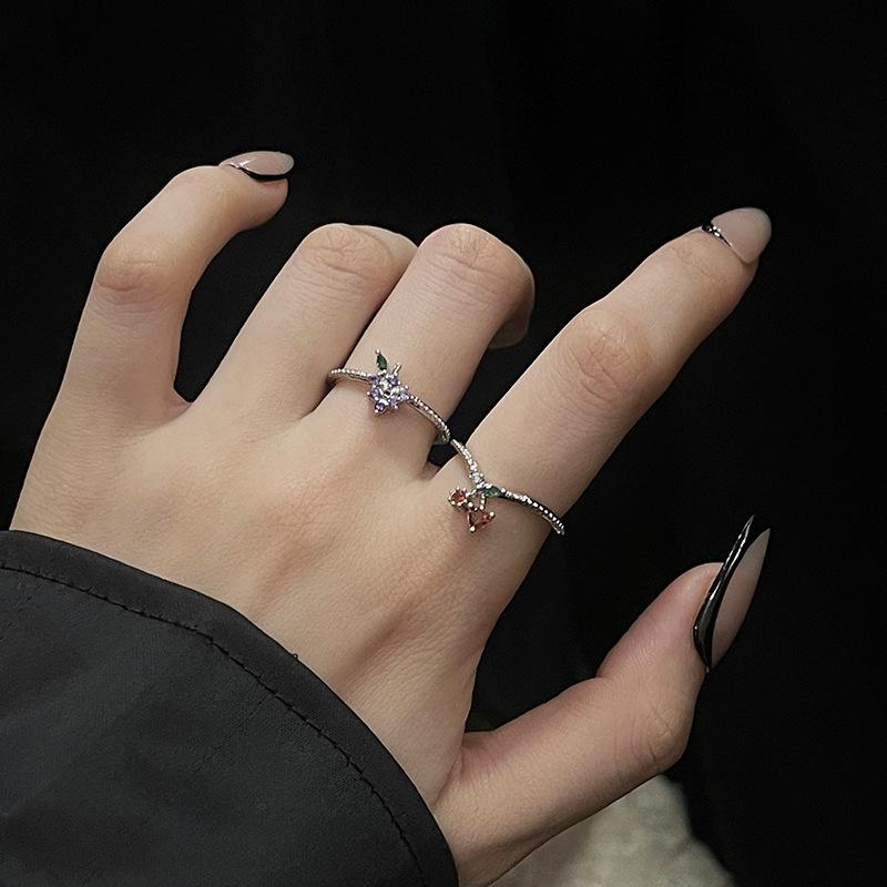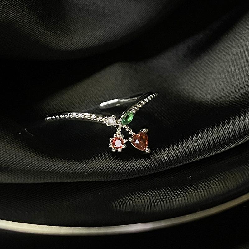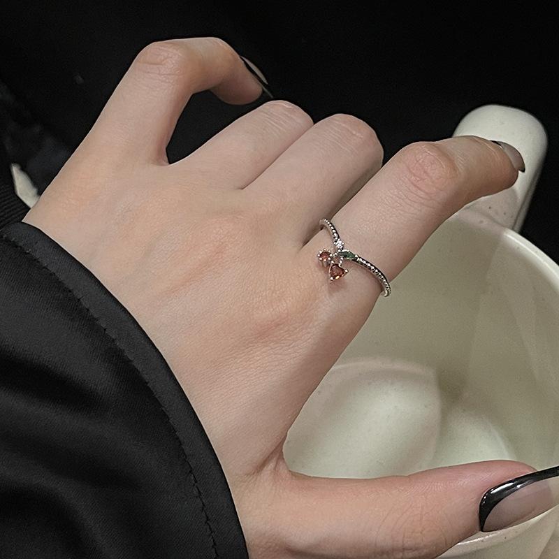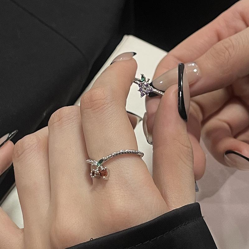 Anillo abierto de estilo francés para mujer, diseño de nicho, ligero, lujoso, de alta gama, moderno, con un toque de fruta distintiva.