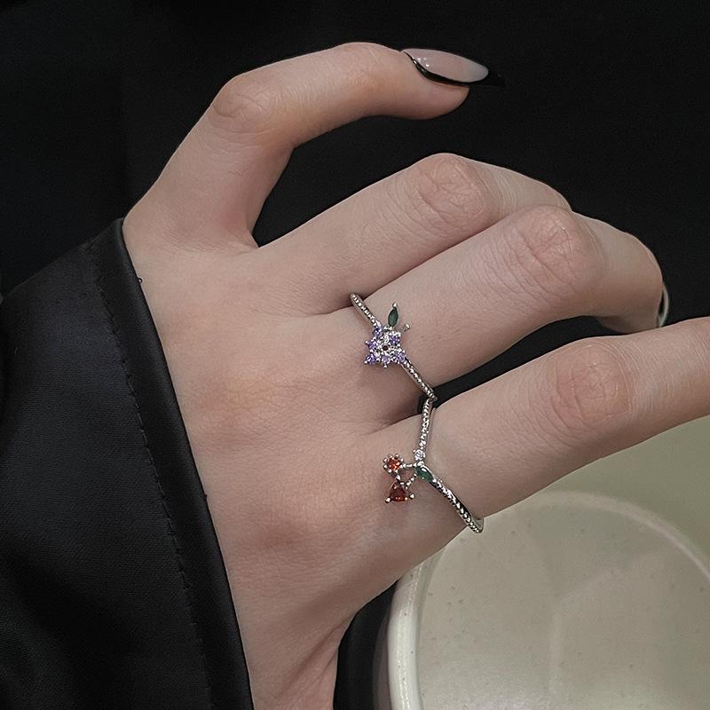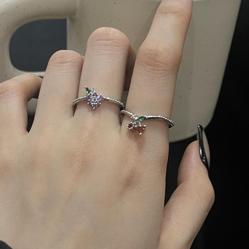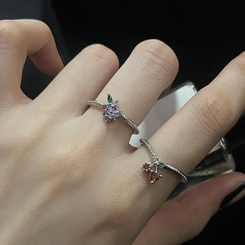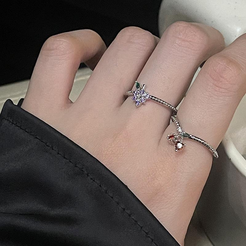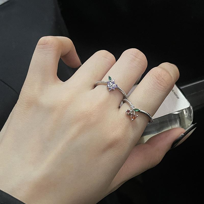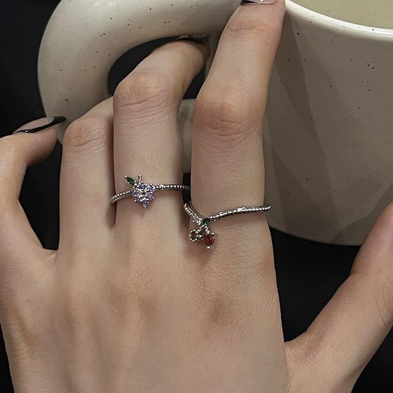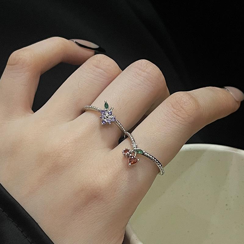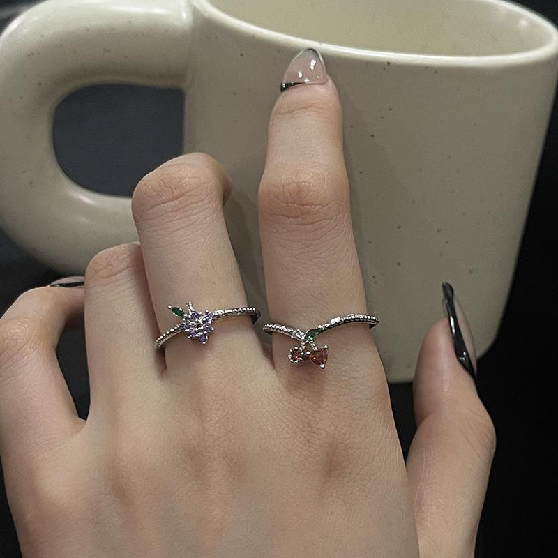 Anillo abierto de estilo francés para mujer, diseño de nicho, ligero, lujoso, de alta gama, moderno, con un toque de fruta distintiva.