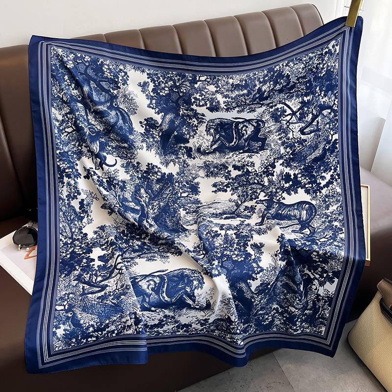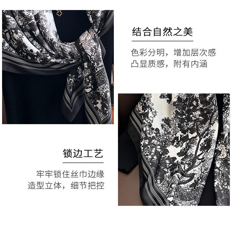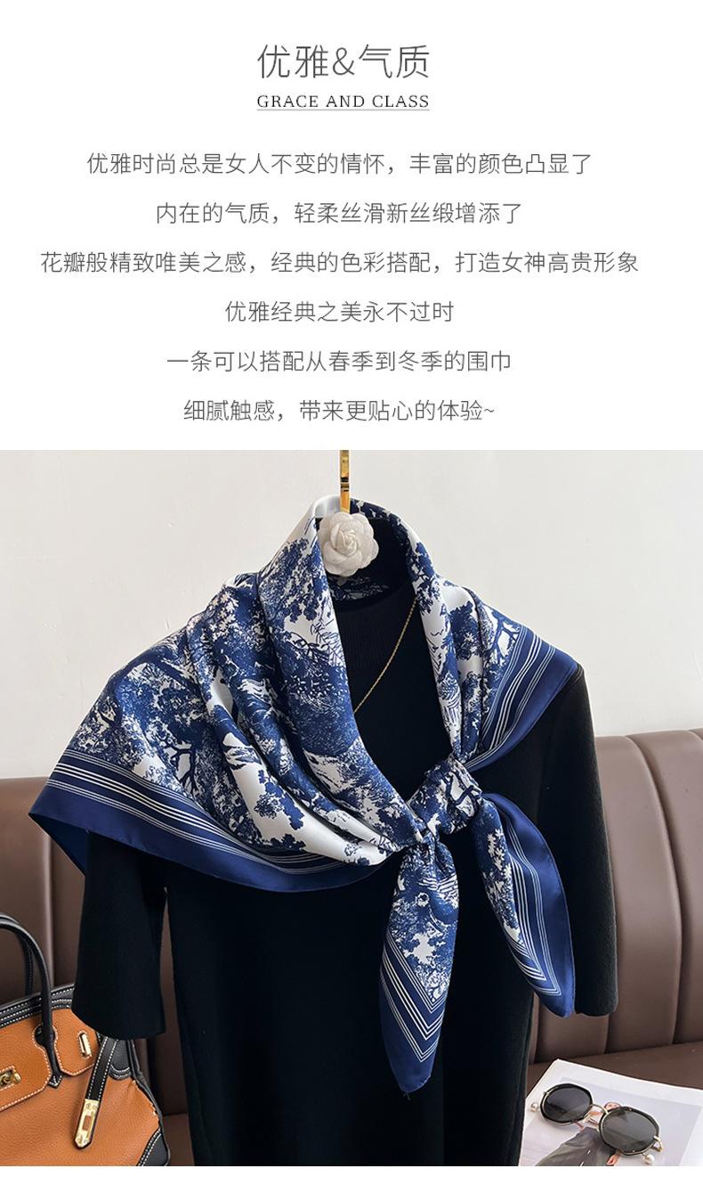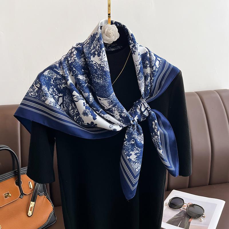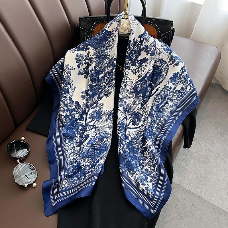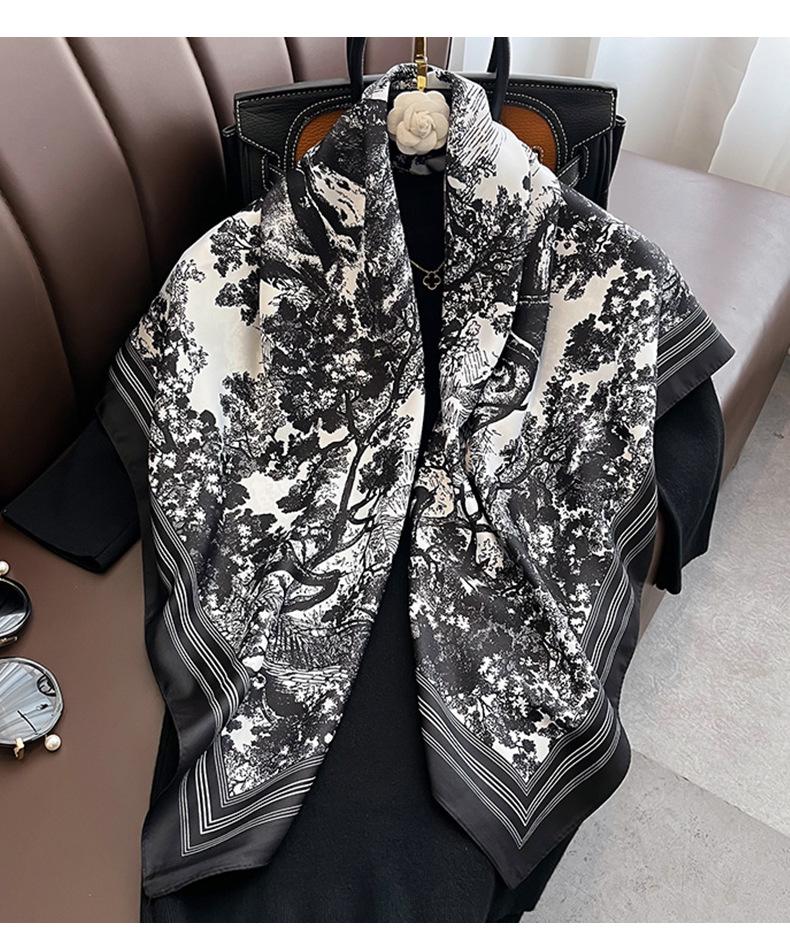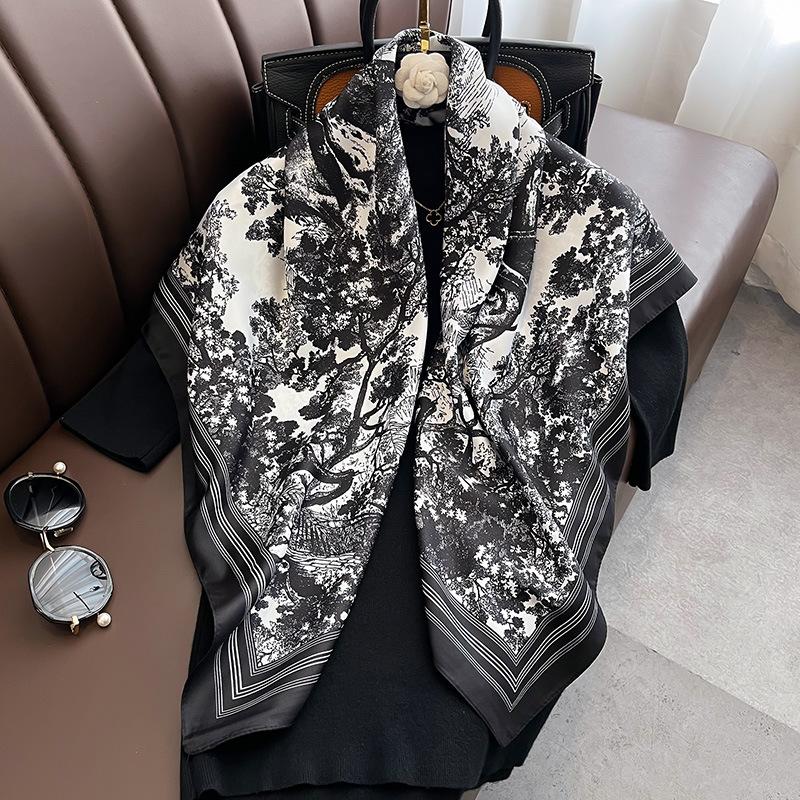 Bufanda cuadrada grande con estampado vintage de primavera y verano para exteriores, chal protector solar, bufanda de seda de alta calidad, bufanda fina y cálida para mujer