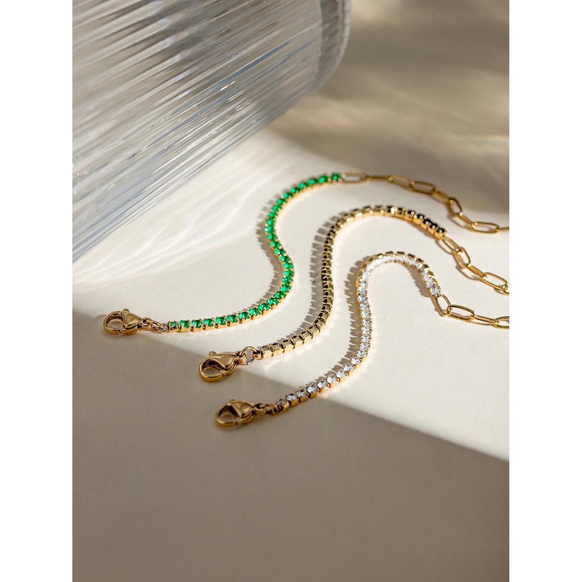 Europa y Estados Unidos estilo ins transfronterizo moda oro de 18k acero inoxidable costura blanca cadena de garra pulsera de personalidad joyería al por mayor