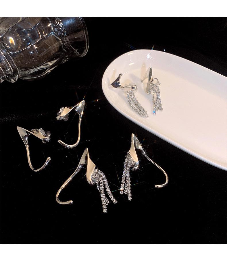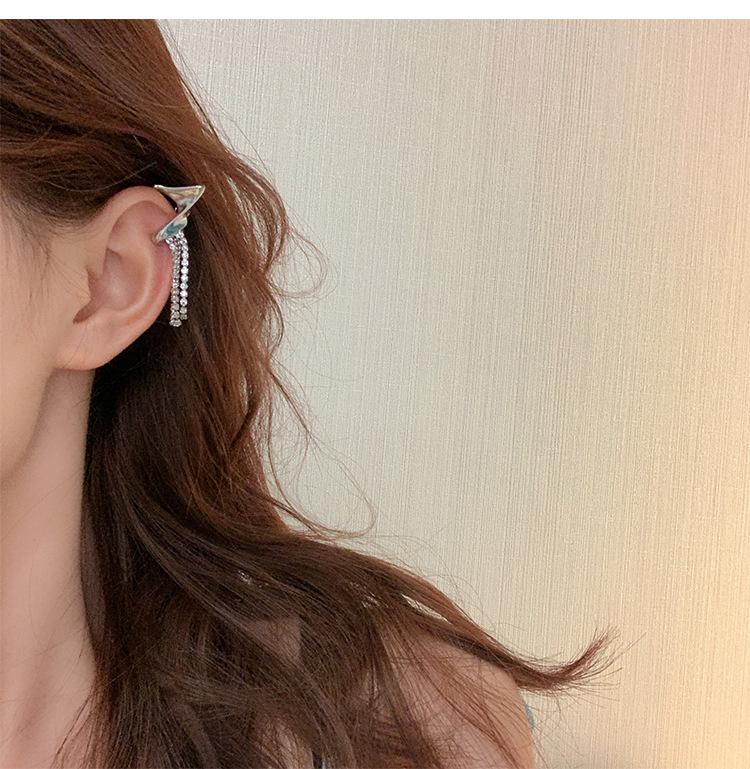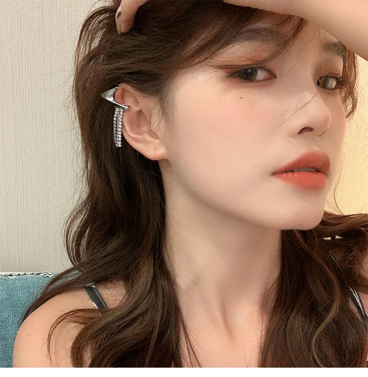 Pendientes de clip con borla de diamante brillante sin agujeros para mujer, moda coreana, elegantes y modernos, con diseño de celebridades de Internet.