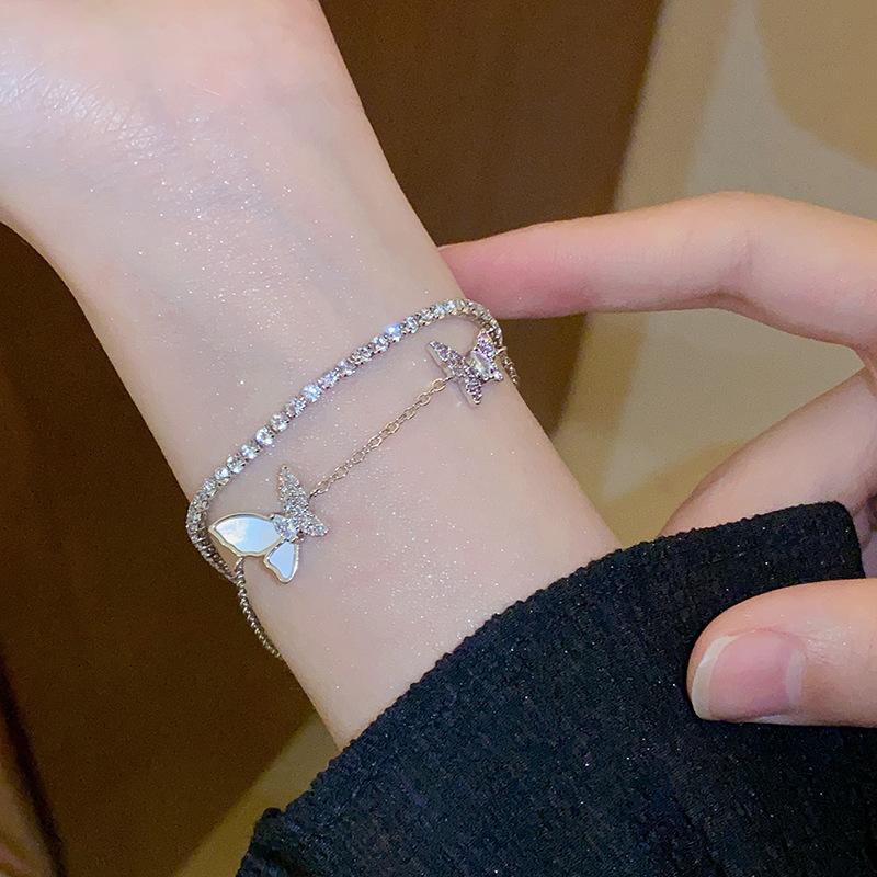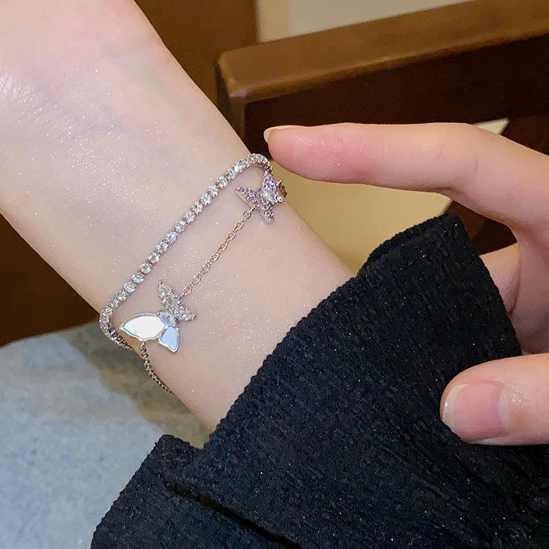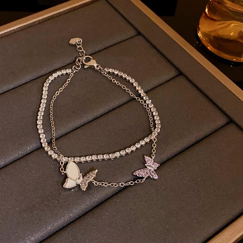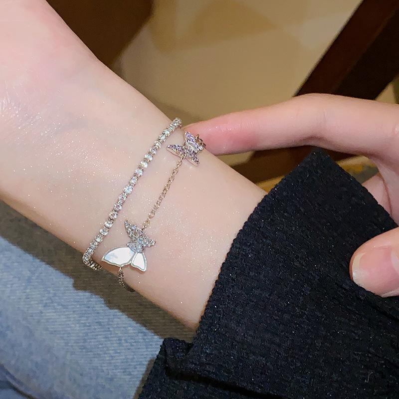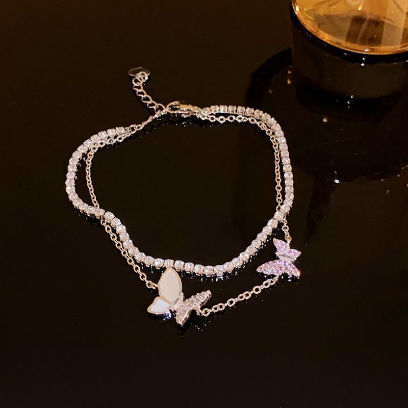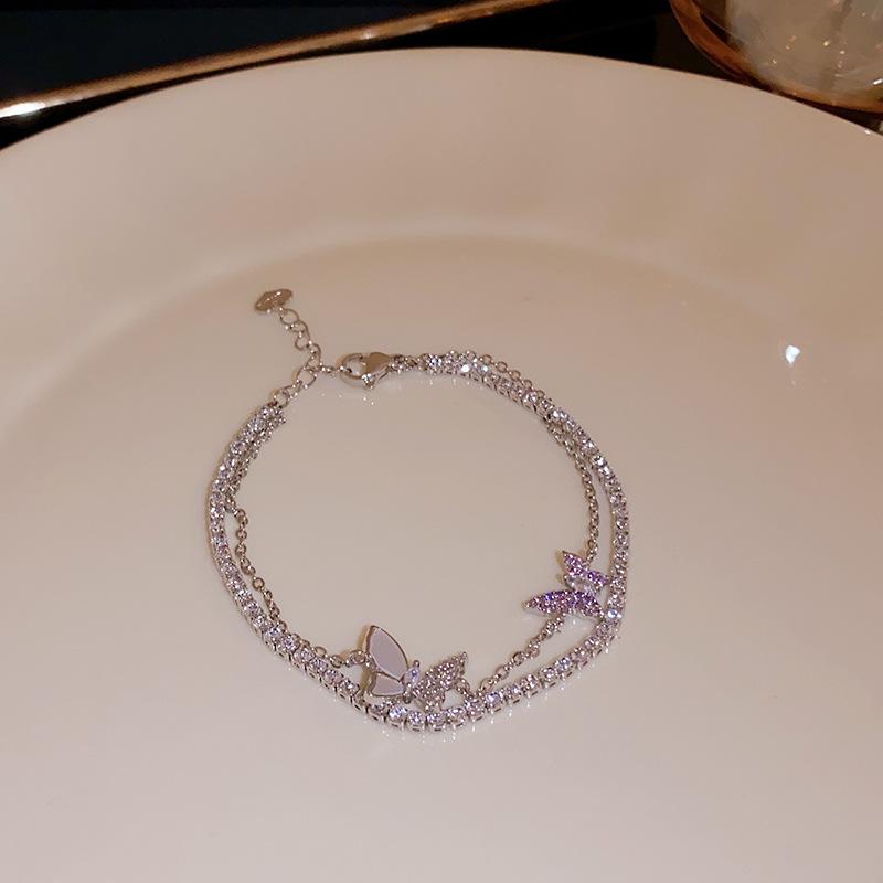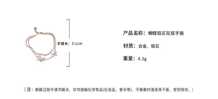 Pulsera de mariposa de circón de doble capa pulsera simple de moda elegante celebridad de internet viajero versátil nueva pulsera pulsera al por mayor