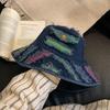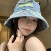 Sombrero de pescador de mezclilla de ala grande para mujer, sombrero para el sol de diseño nicho para viajes de verano, protección solar, sombrero de cubeta que hace que la cara parezca pequeña
