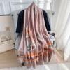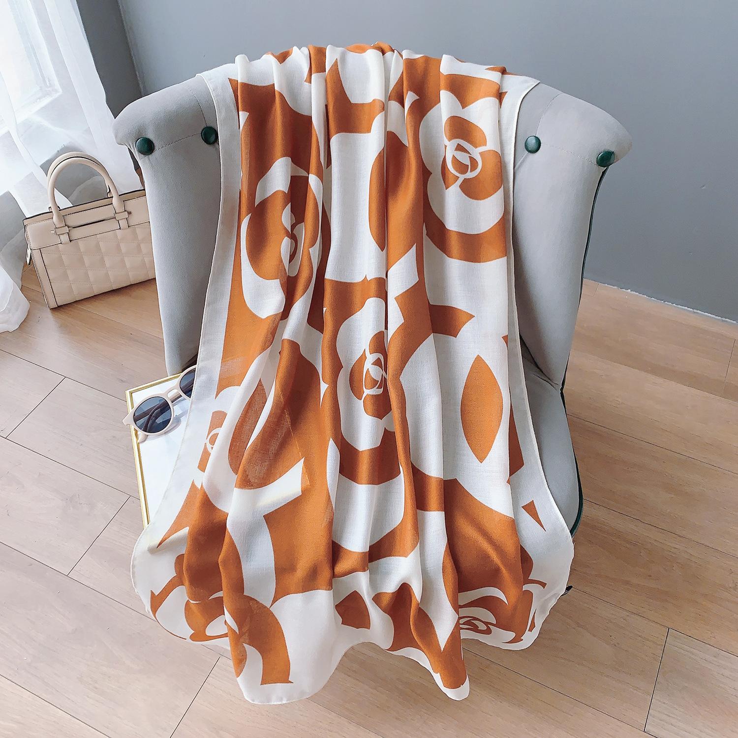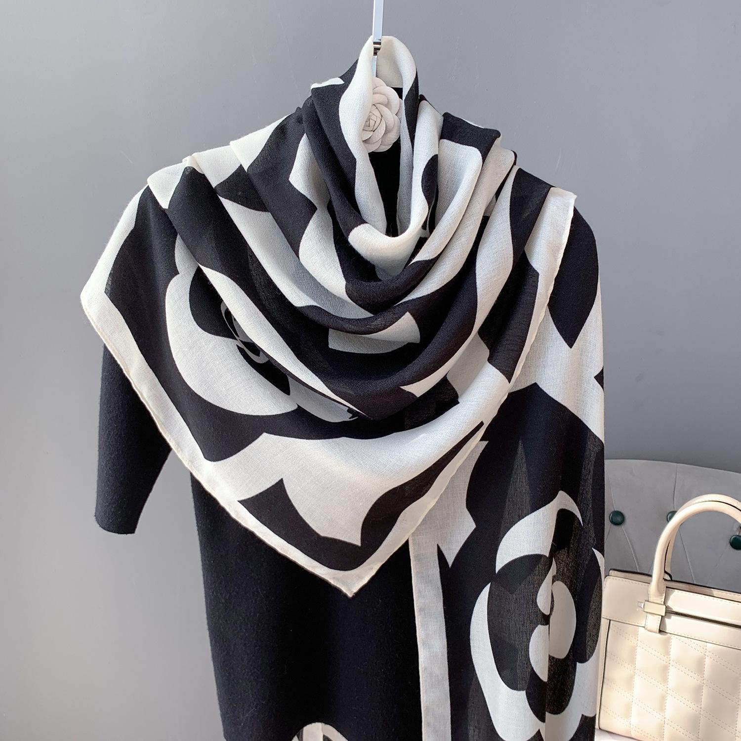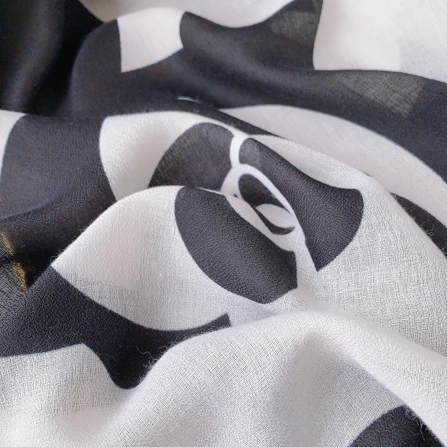 Elegante bufanda de algodón y lino coreano de camelia en blanco y negro para mujer, bufanda de primavera y verano 2023, chal para madre nueva, para exteriores