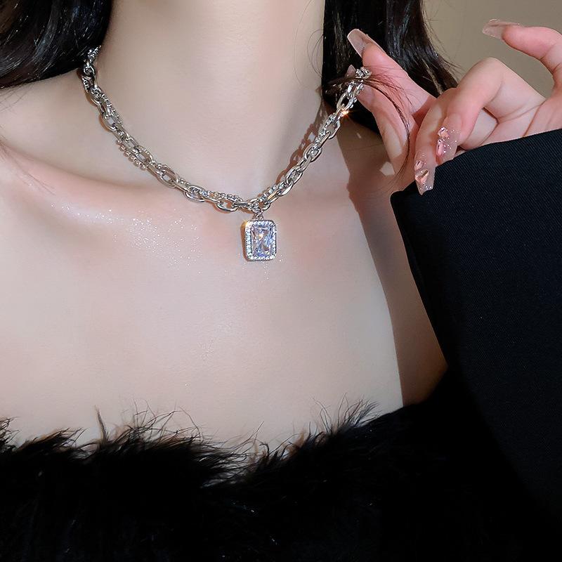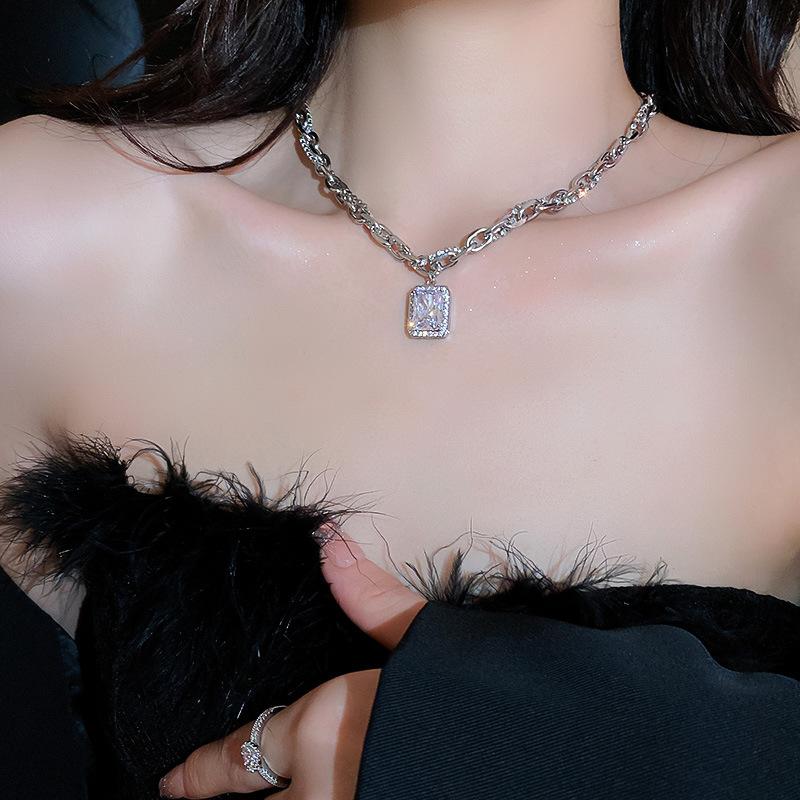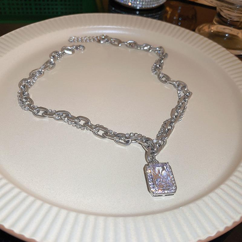 Collar de cristal de diseño simple europeo y americano con cadena gruesa de metal enrollado estilo hip hop con diamantes cuadrados y azúcar de roca para clavícula.