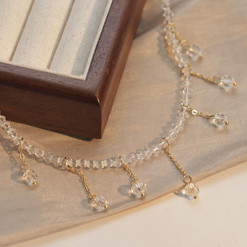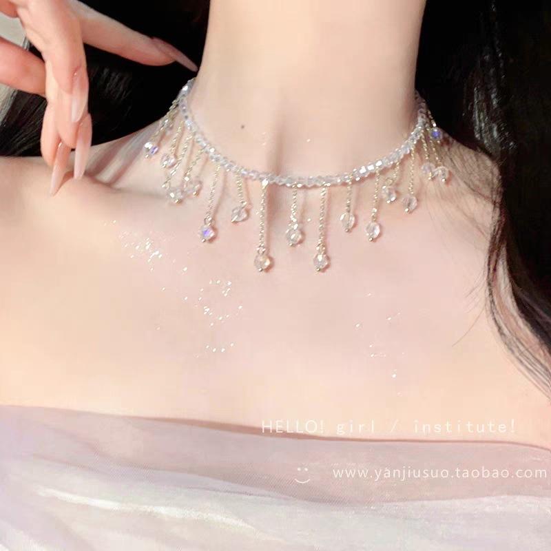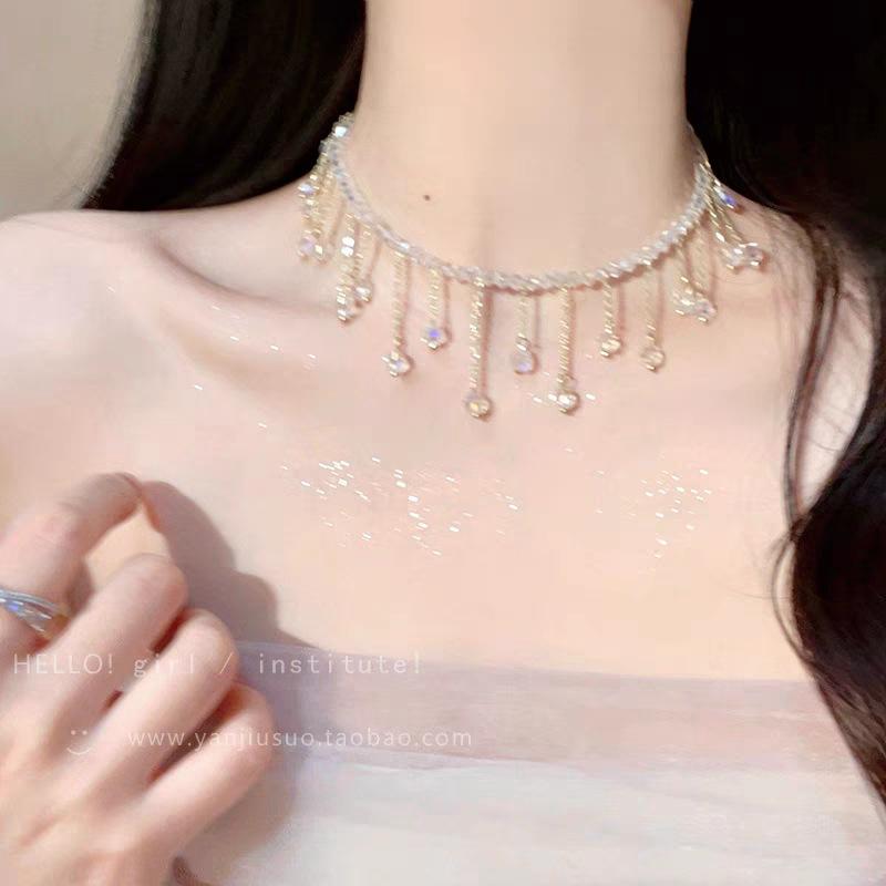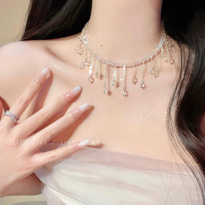 Collar con colgante de cristal con borla de lujo ligero, diseño de verano para mujer, temperamento de celebridad de internet, cadena para clavícula