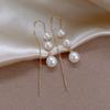 Aguja de plata S925, borla larga de oro de Corea del Sur, perla ligera, temperamento de lujo, nicho, diseño versátil de alta gama, hilo para las orejas