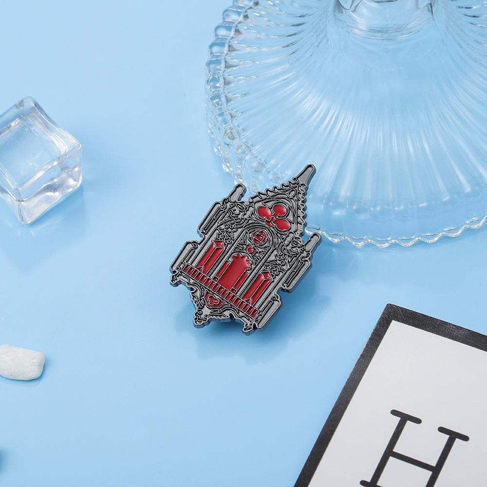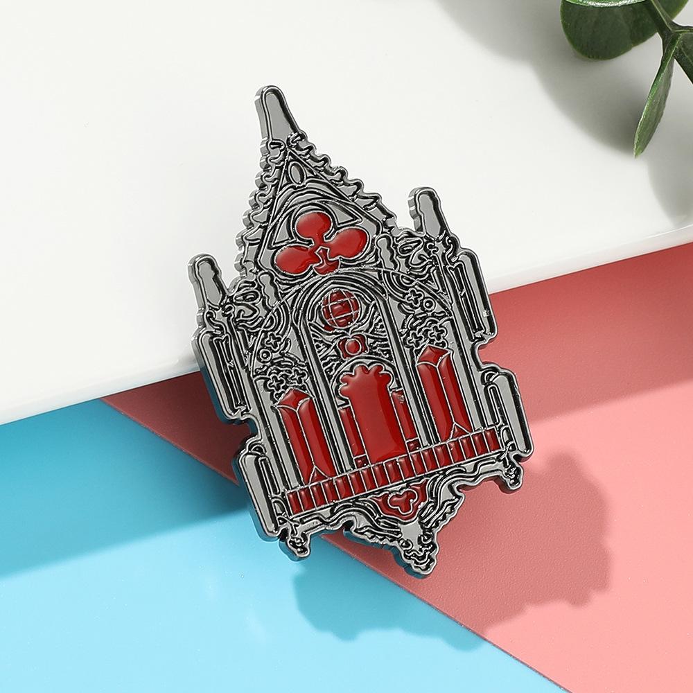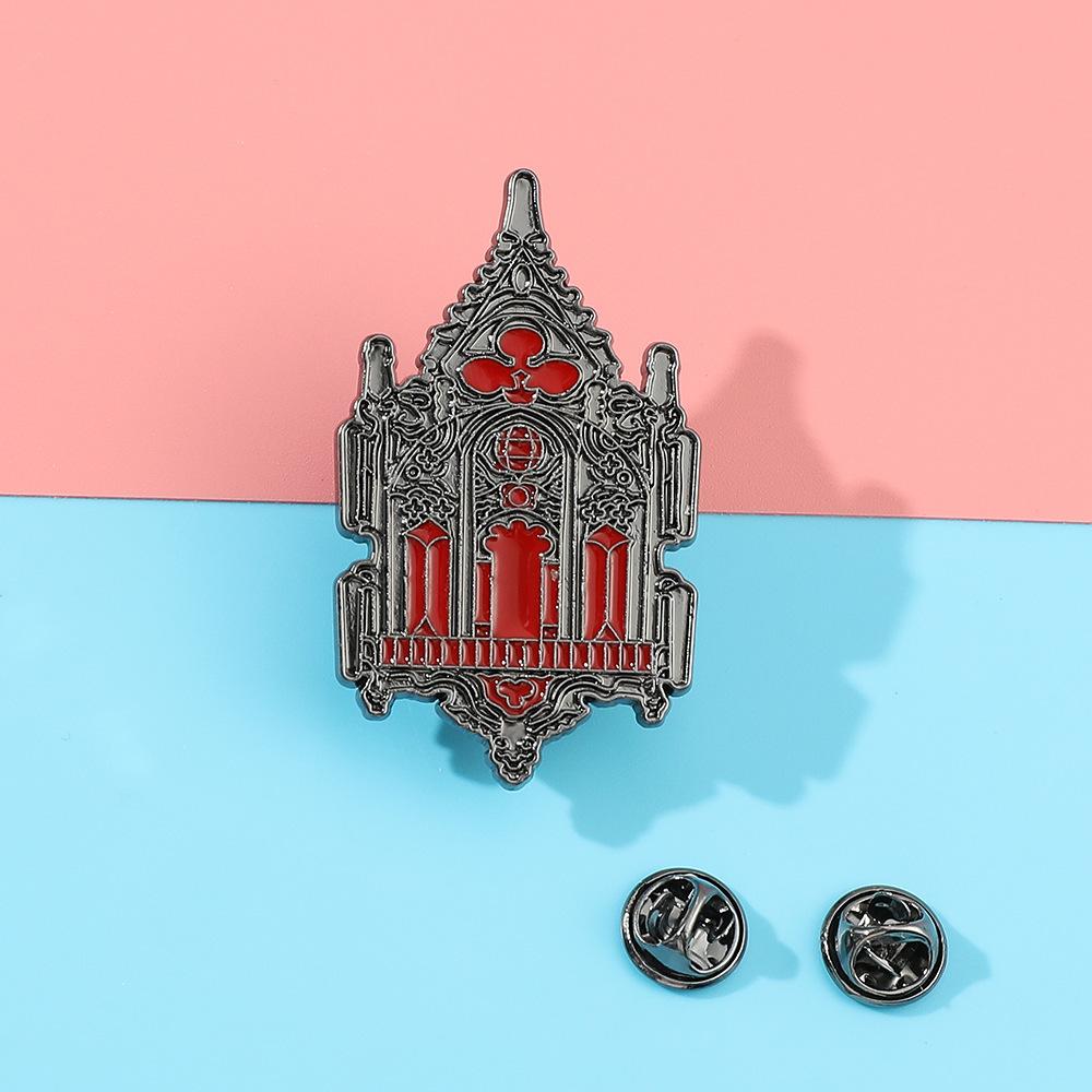 Broche de iglesia de estilo gótico, insignia de metal de edificio misterioso de dibujos animados europeos y americanos, accesorios para bolsos y ropa