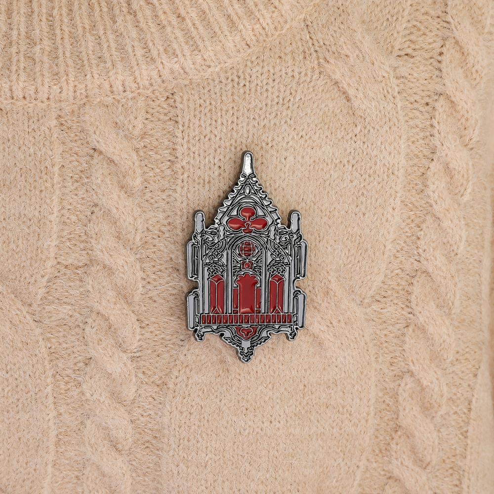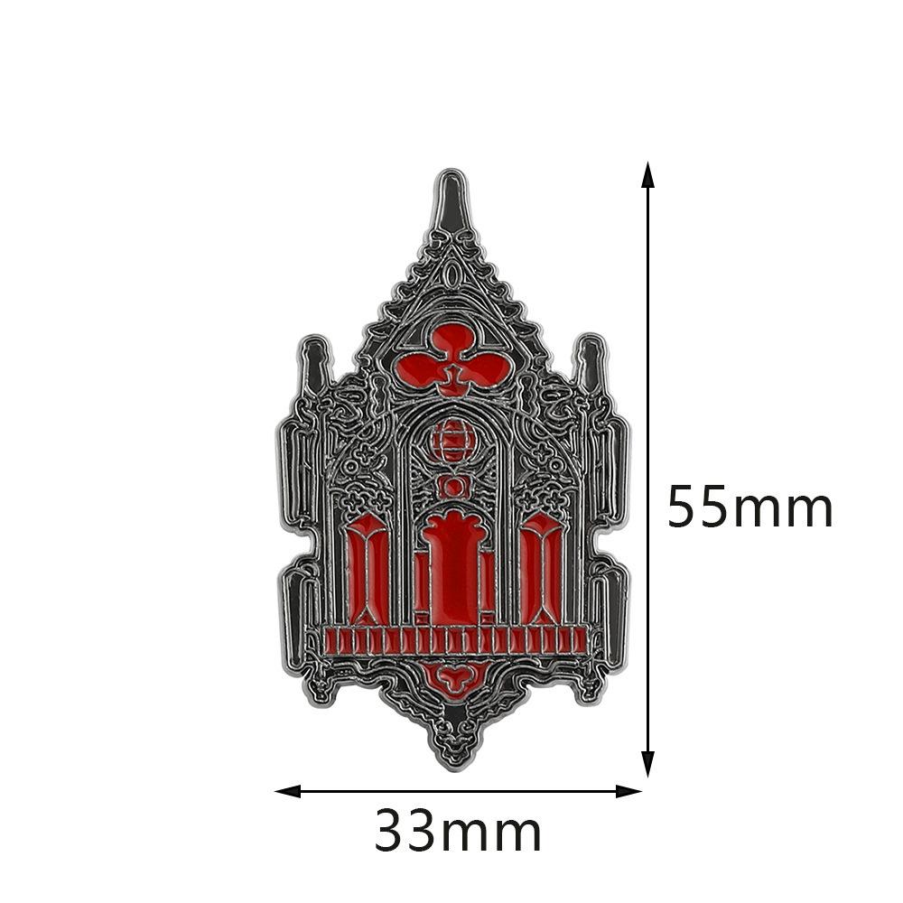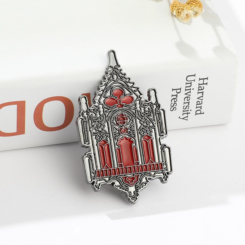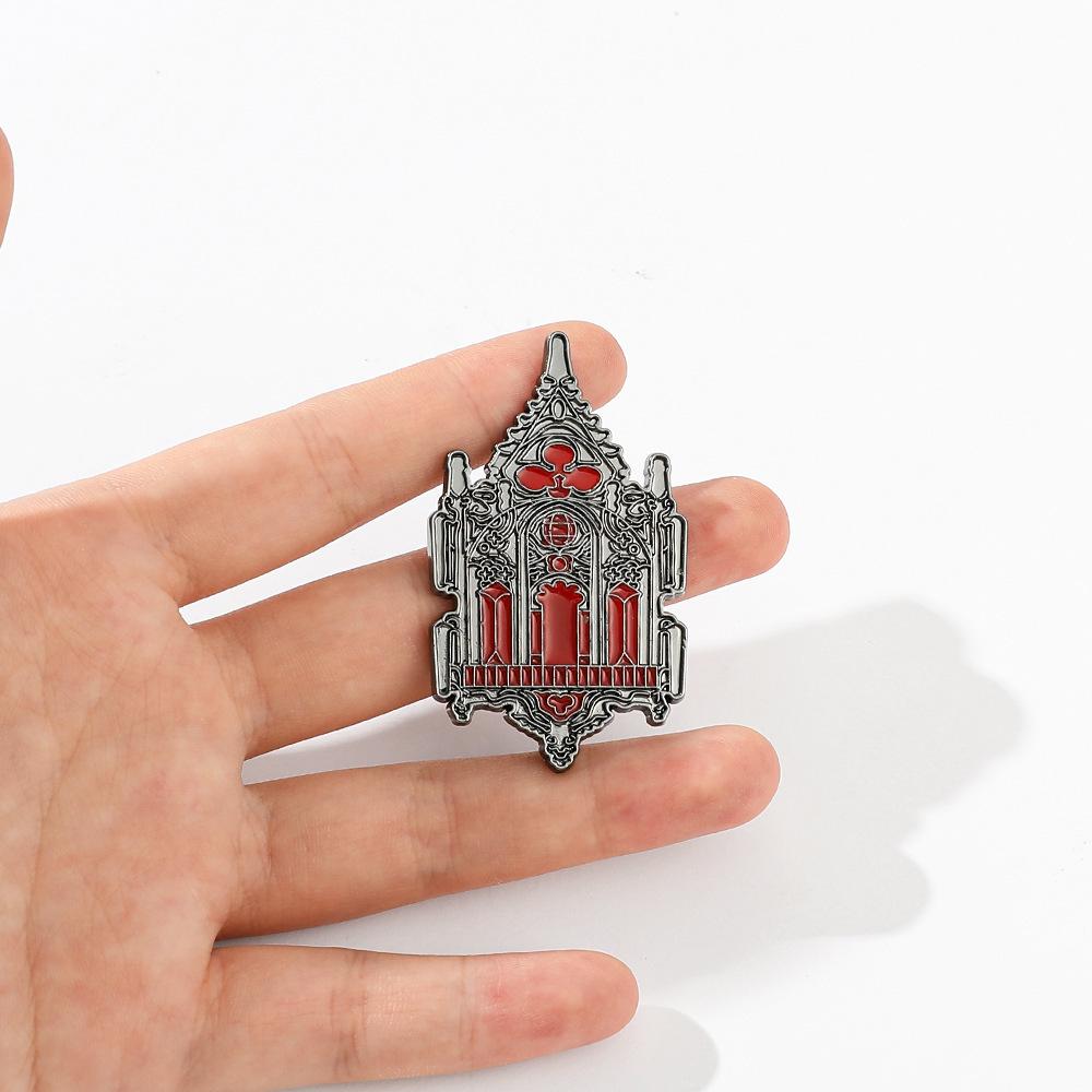 Broche de iglesia de estilo gótico, insignia de metal de edificio misterioso de dibujos animados europeos y americanos, accesorios para bolsos y ropa