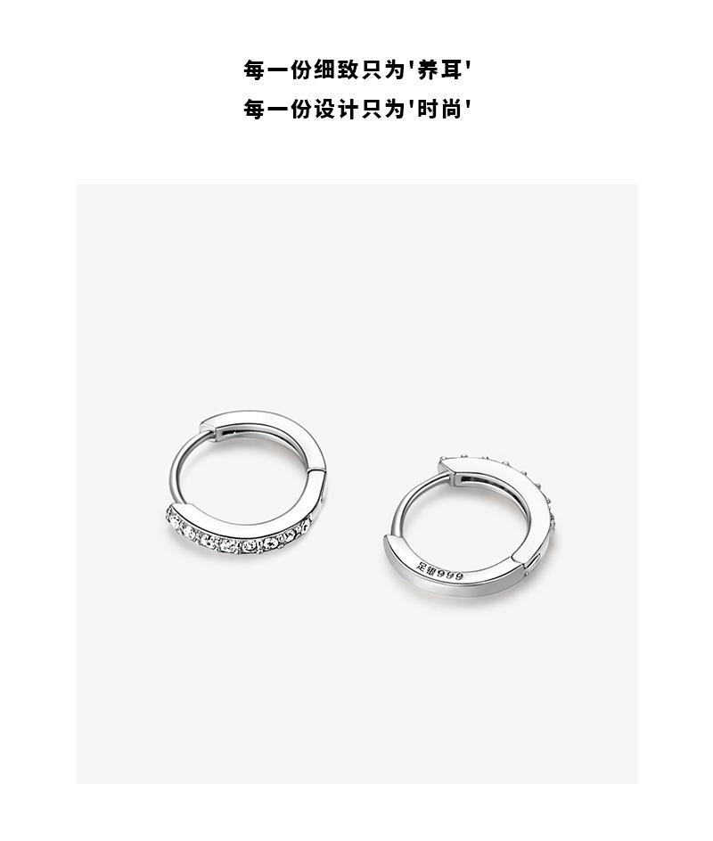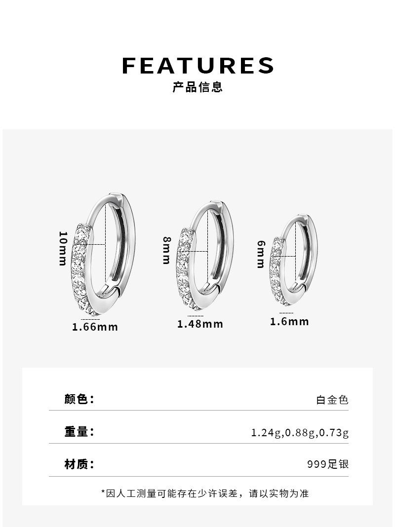 Pendientes de plata de ley 999 con forma de oreja de diamante y hebilla pequeña con forma de hueso, estilo europeo y americano, sencillos.