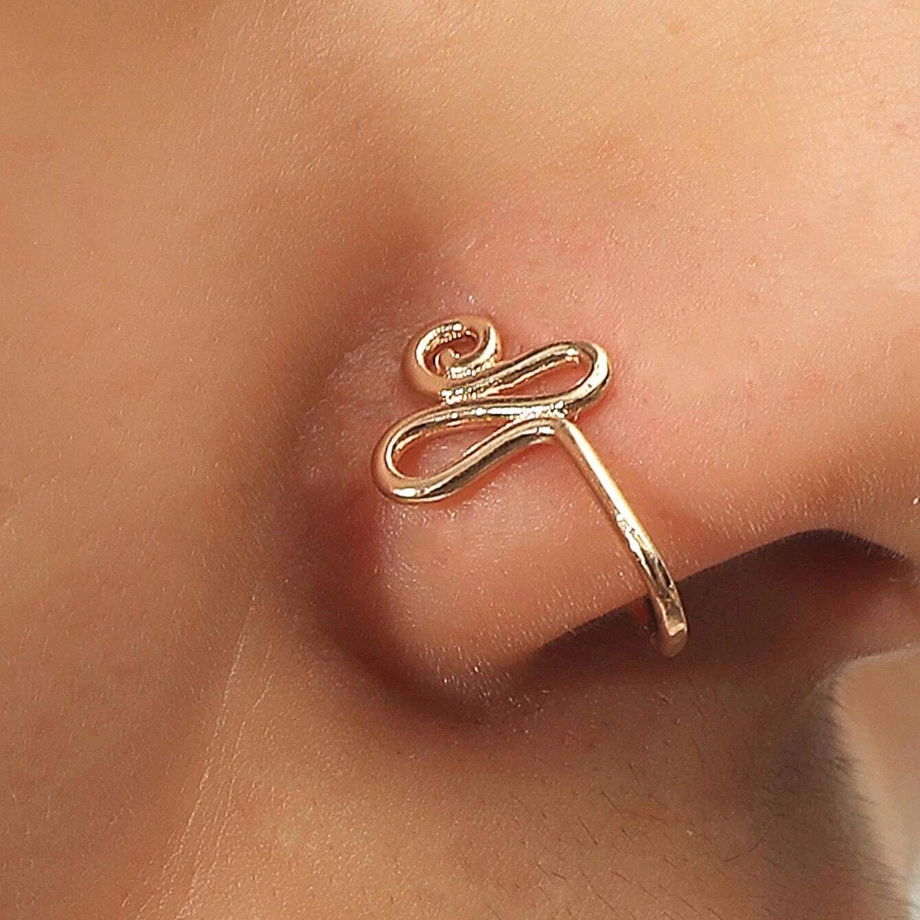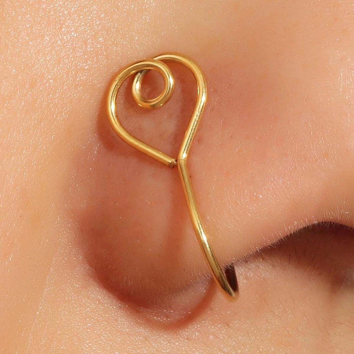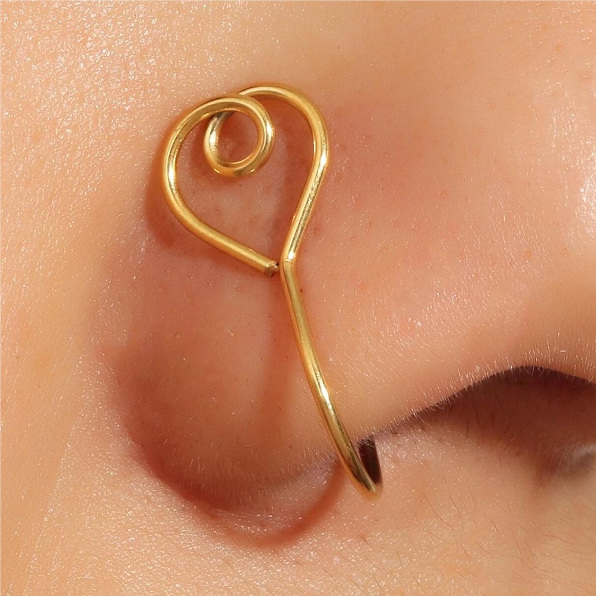 Clip nasal europeo y americano en forma de U sin perforar, cobre con incrustaciones de circonita, estrella, amor, corona, anillo nasal, adorno nasal falso, joyería para piercing E8035