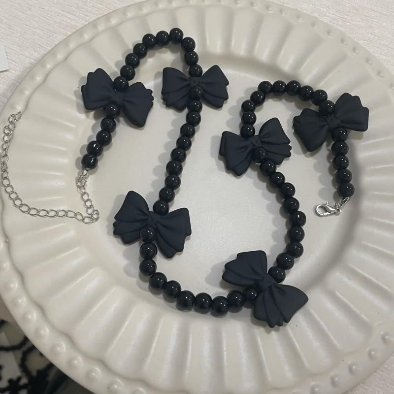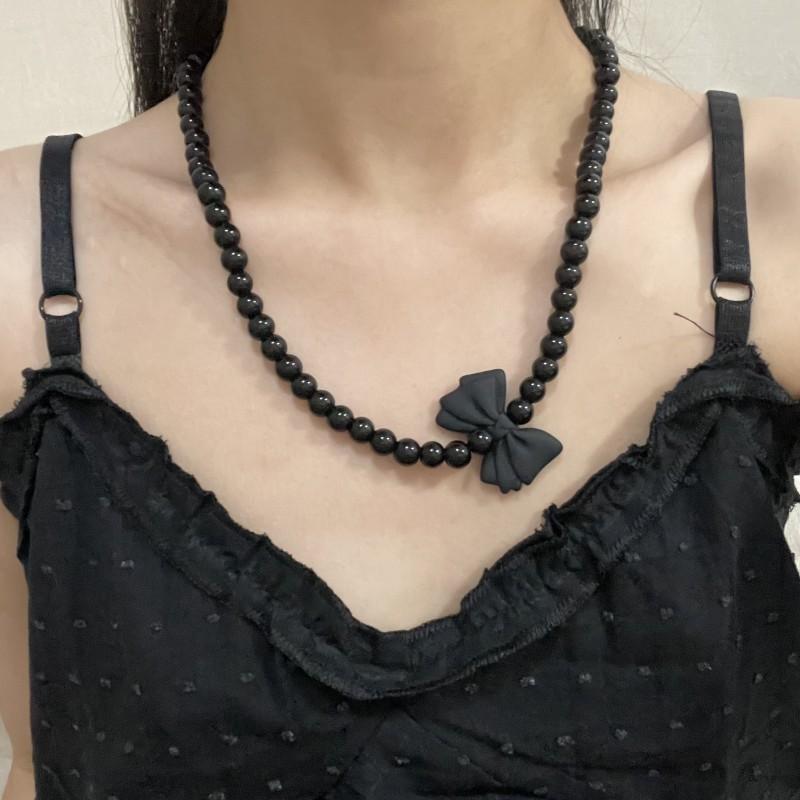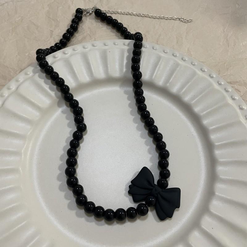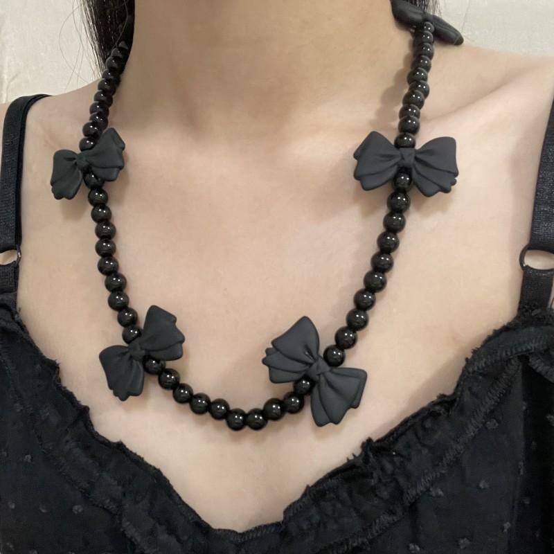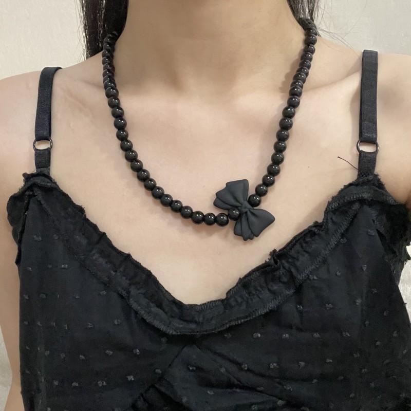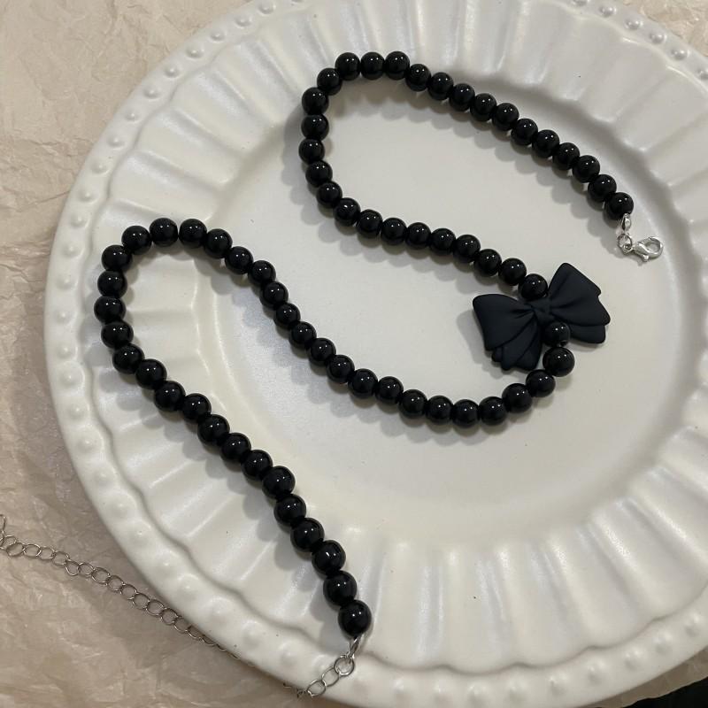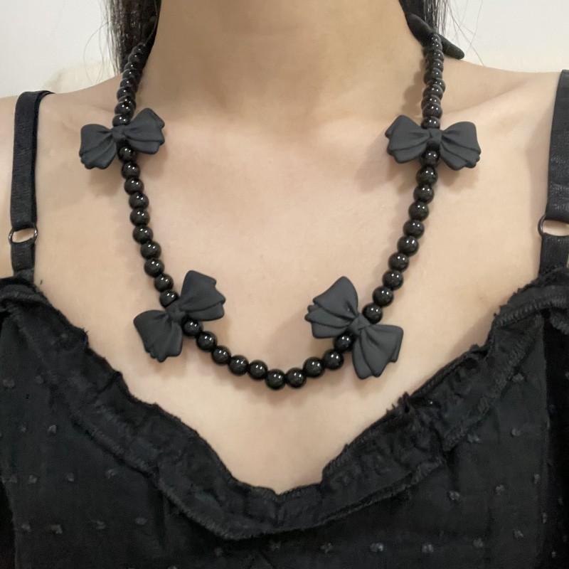 Estilo oscuro dulce genial lazo negro cadena clavícula con cuentas Nuevo popular en línea popular moda collar de temperamento de alta gama