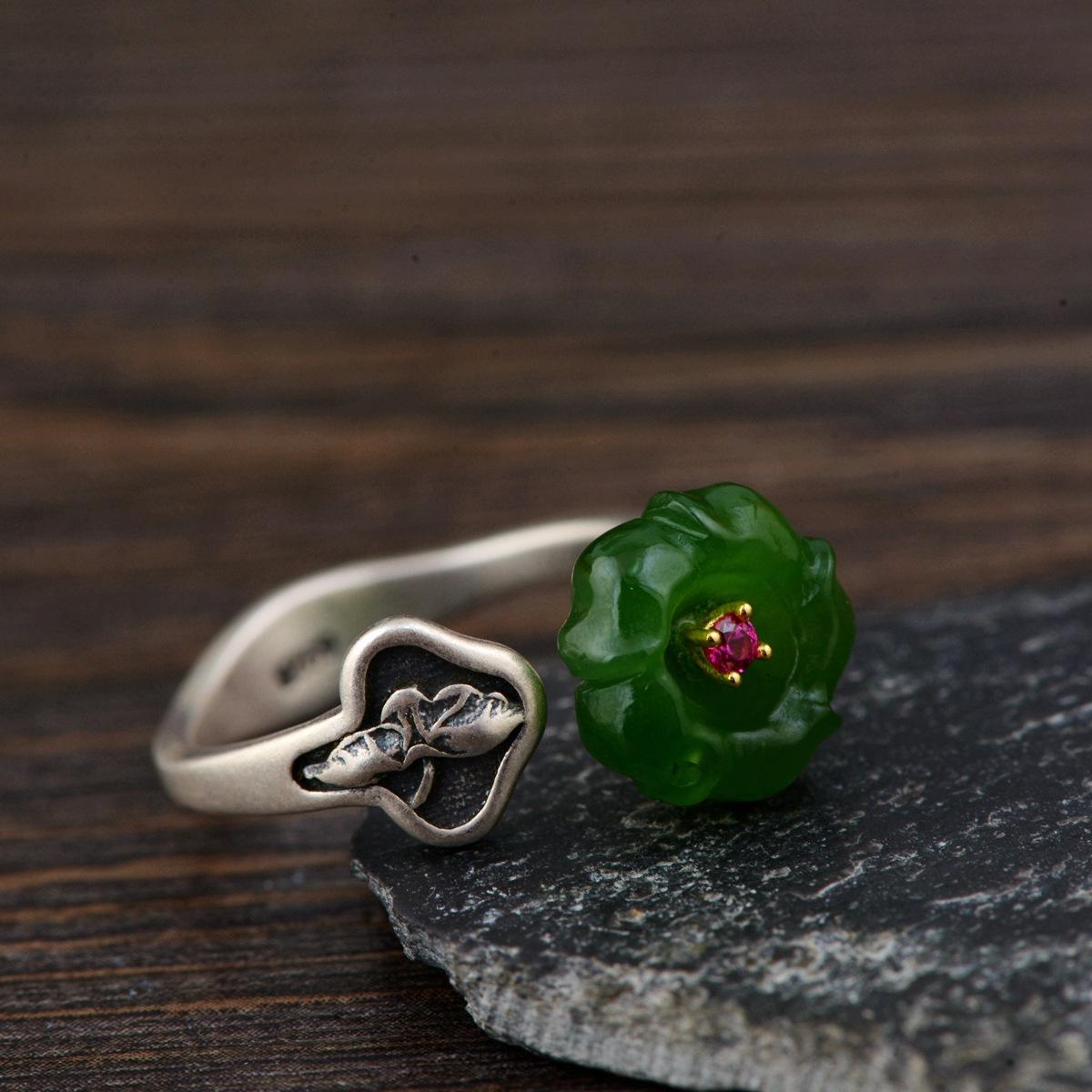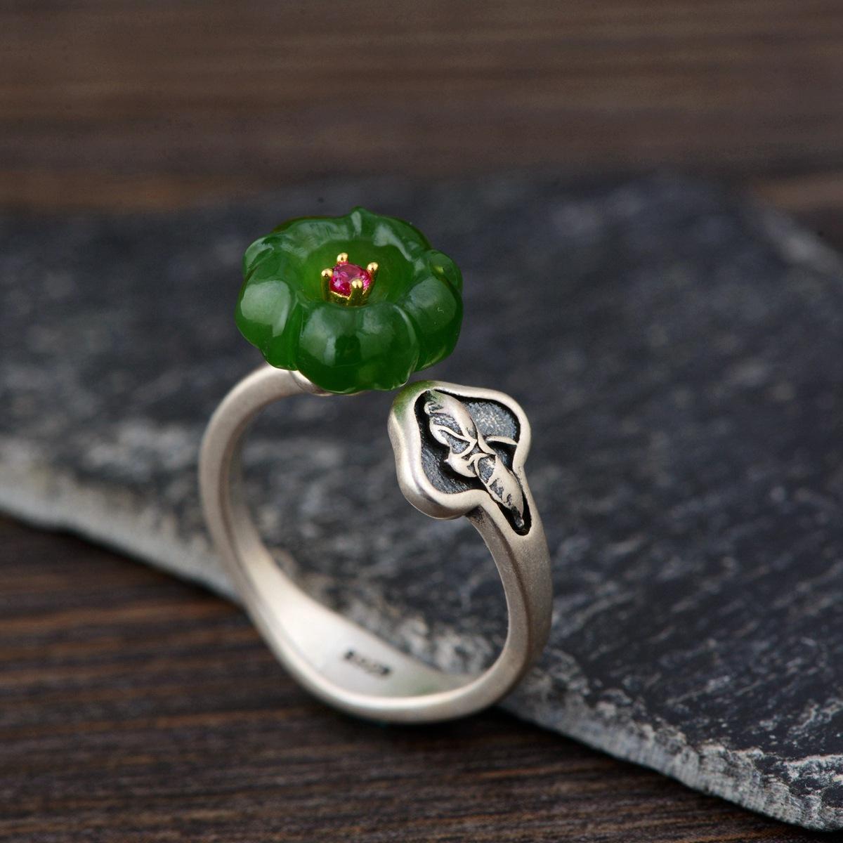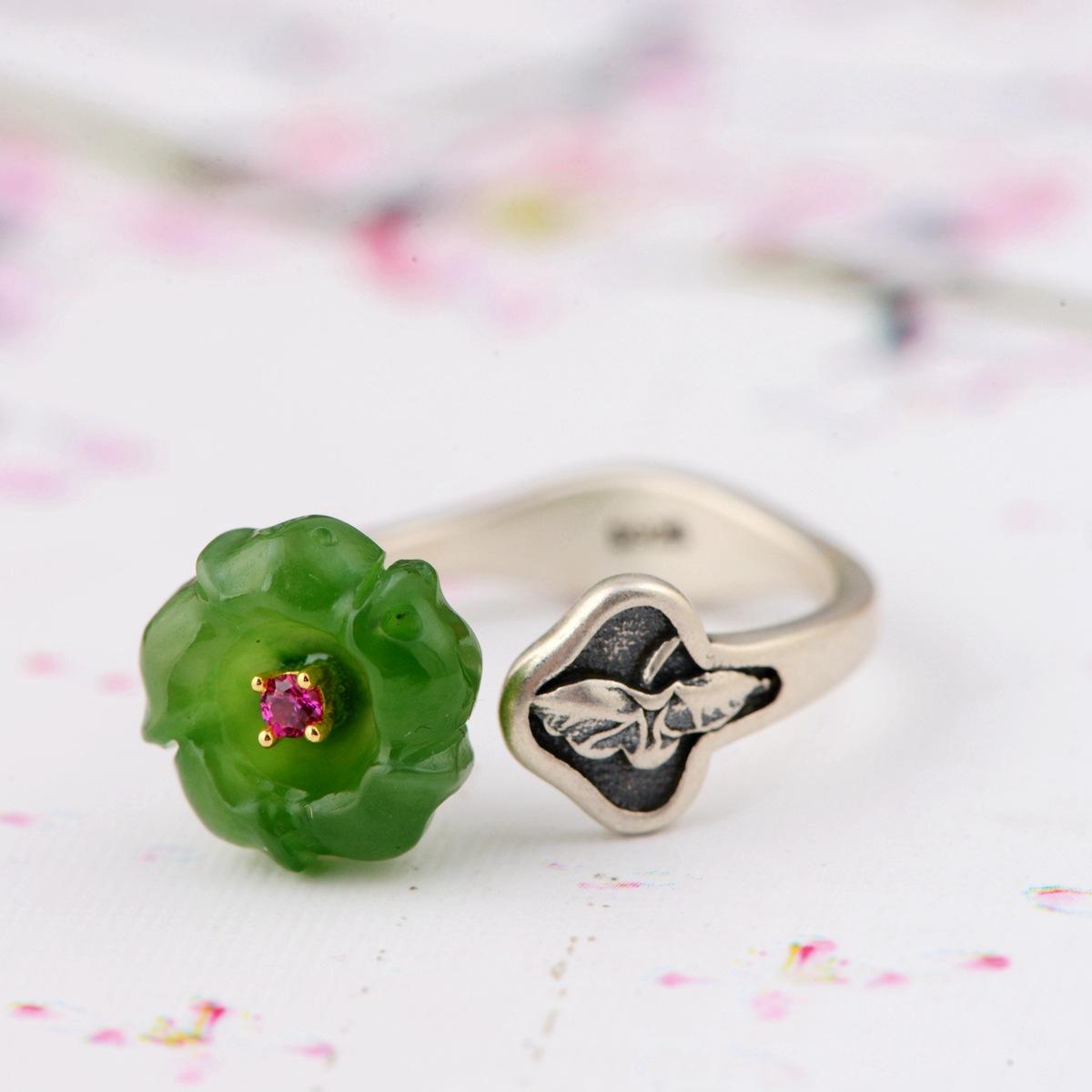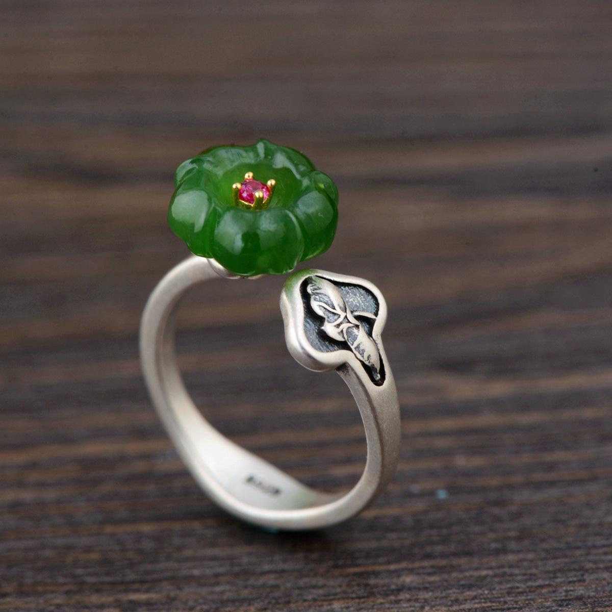 [Nombre del producto] Anillo de flor de jaspe para mujer en plata S925