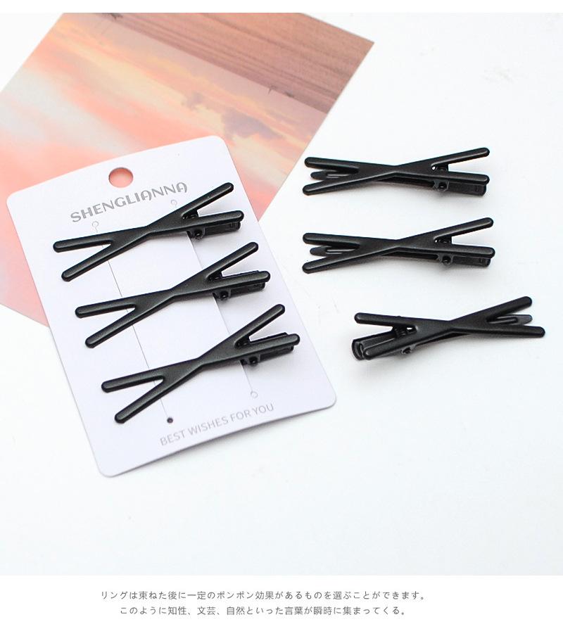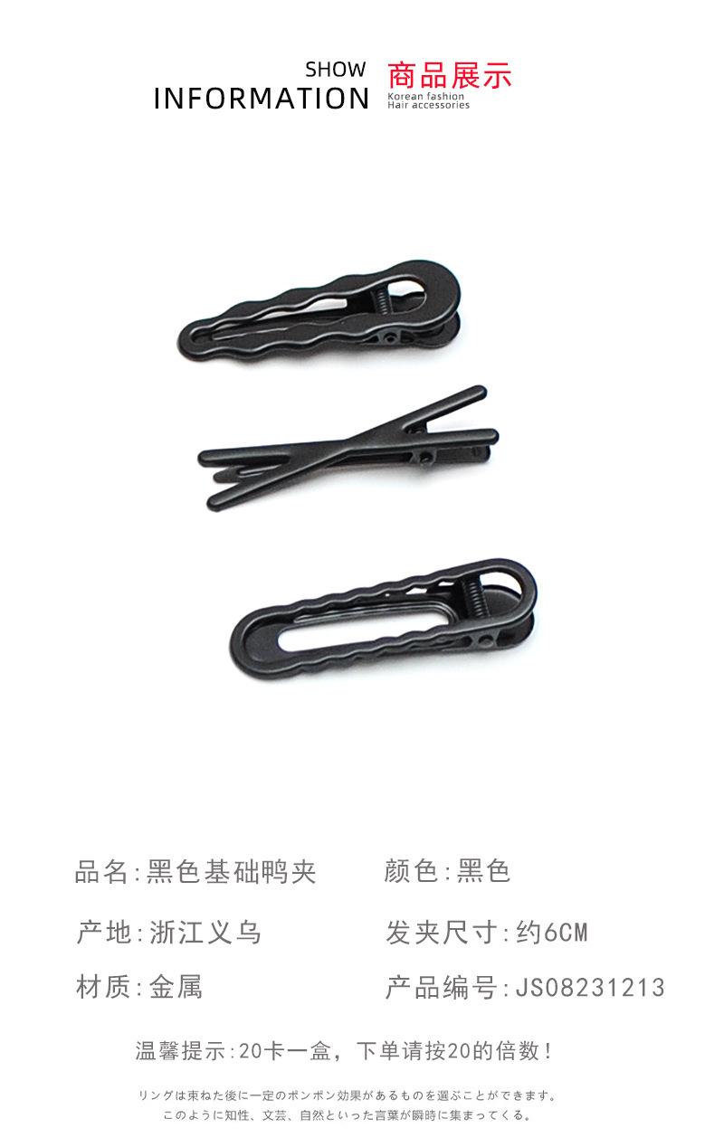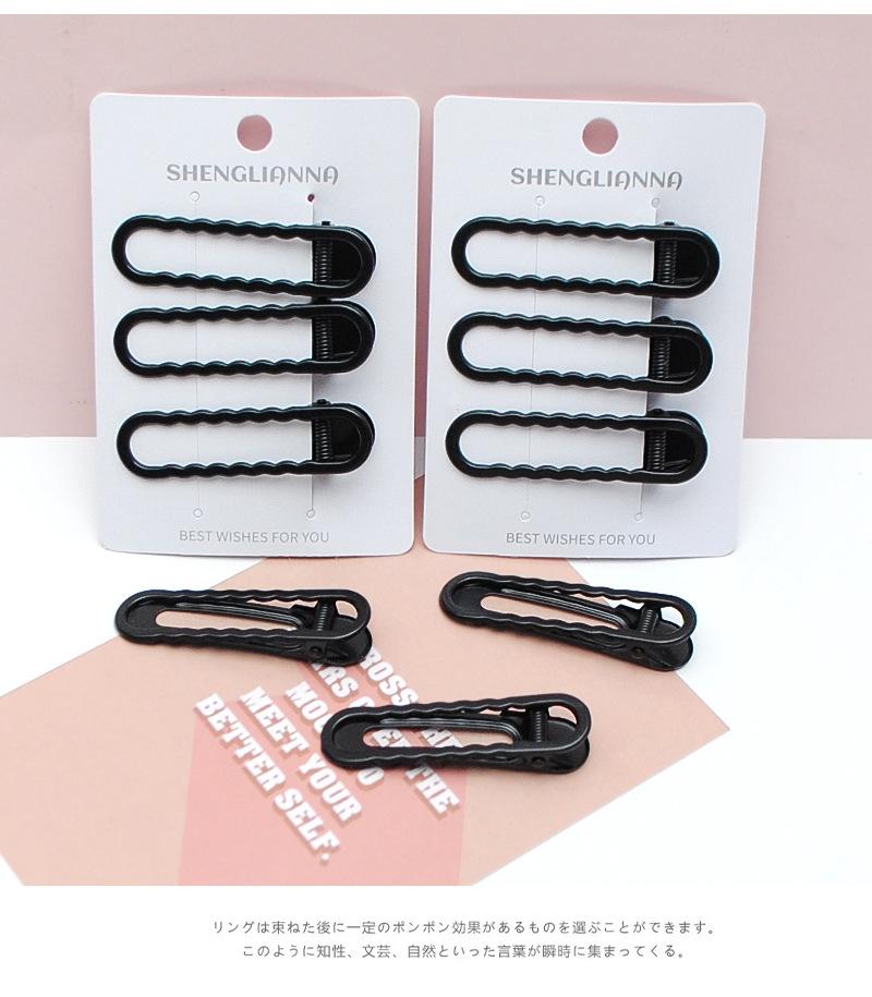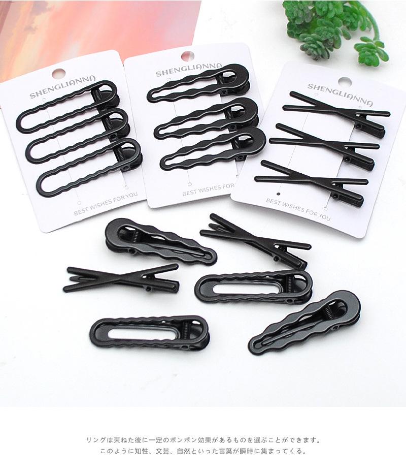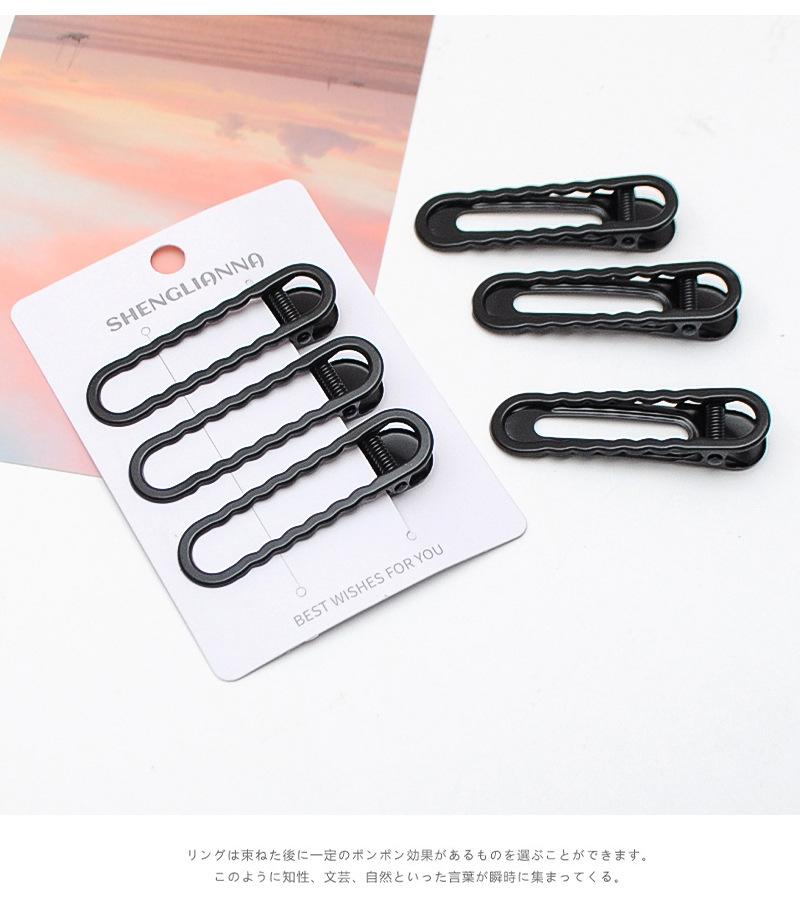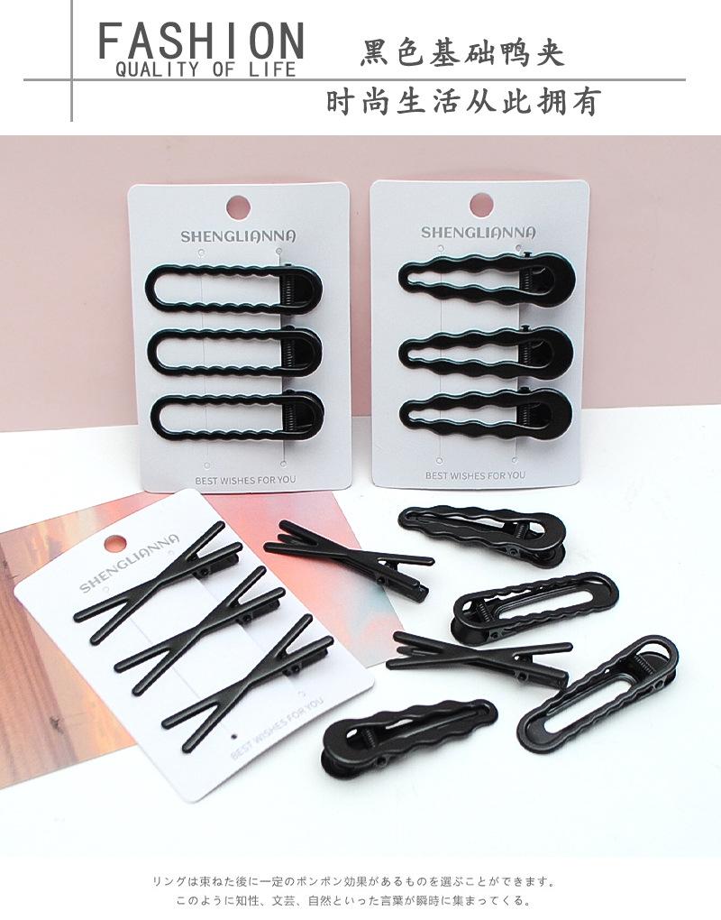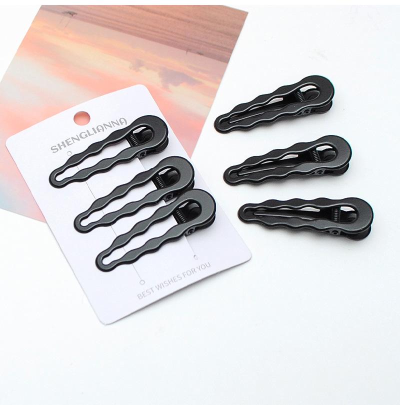 Black three-pack oval wave duck clips, Black three-pack water drop wave duck clips, Black three-piece forked d...