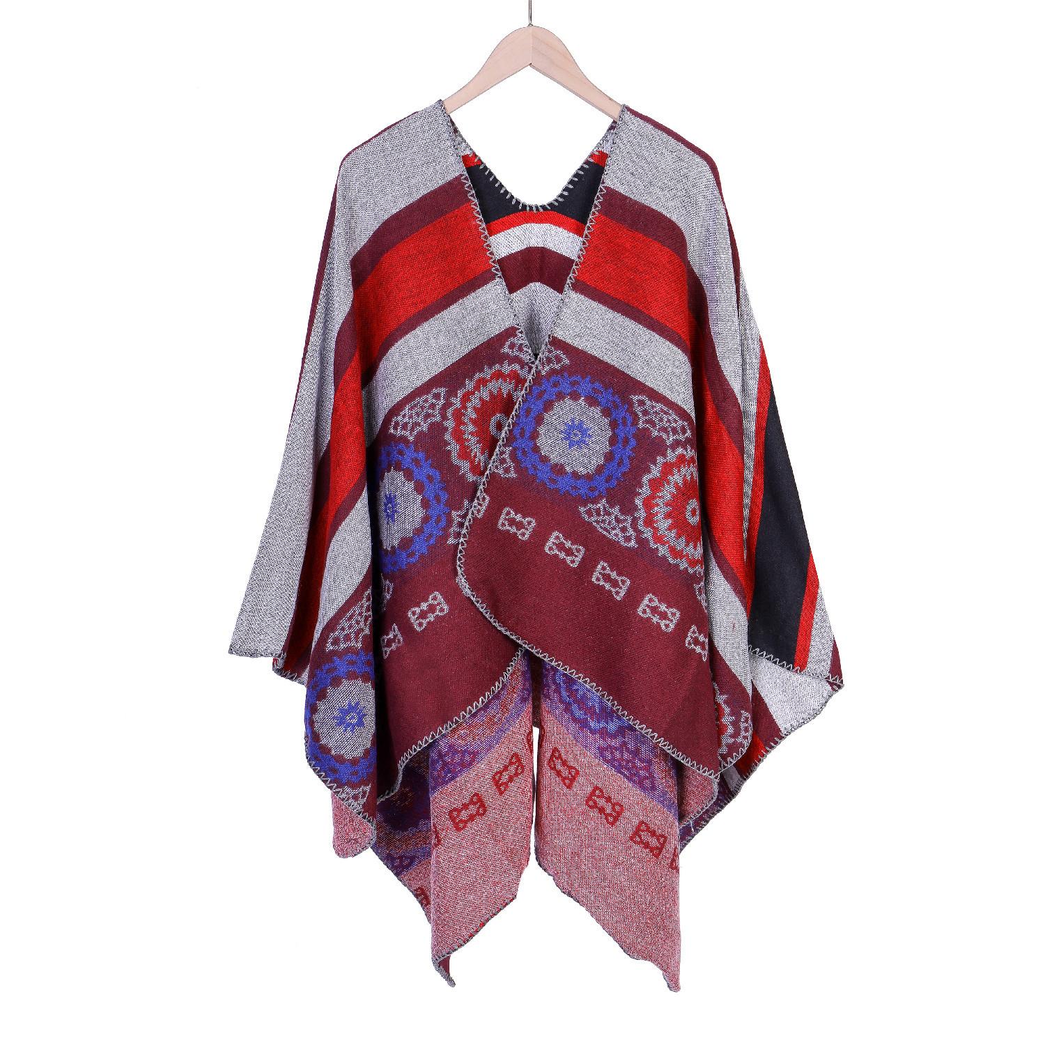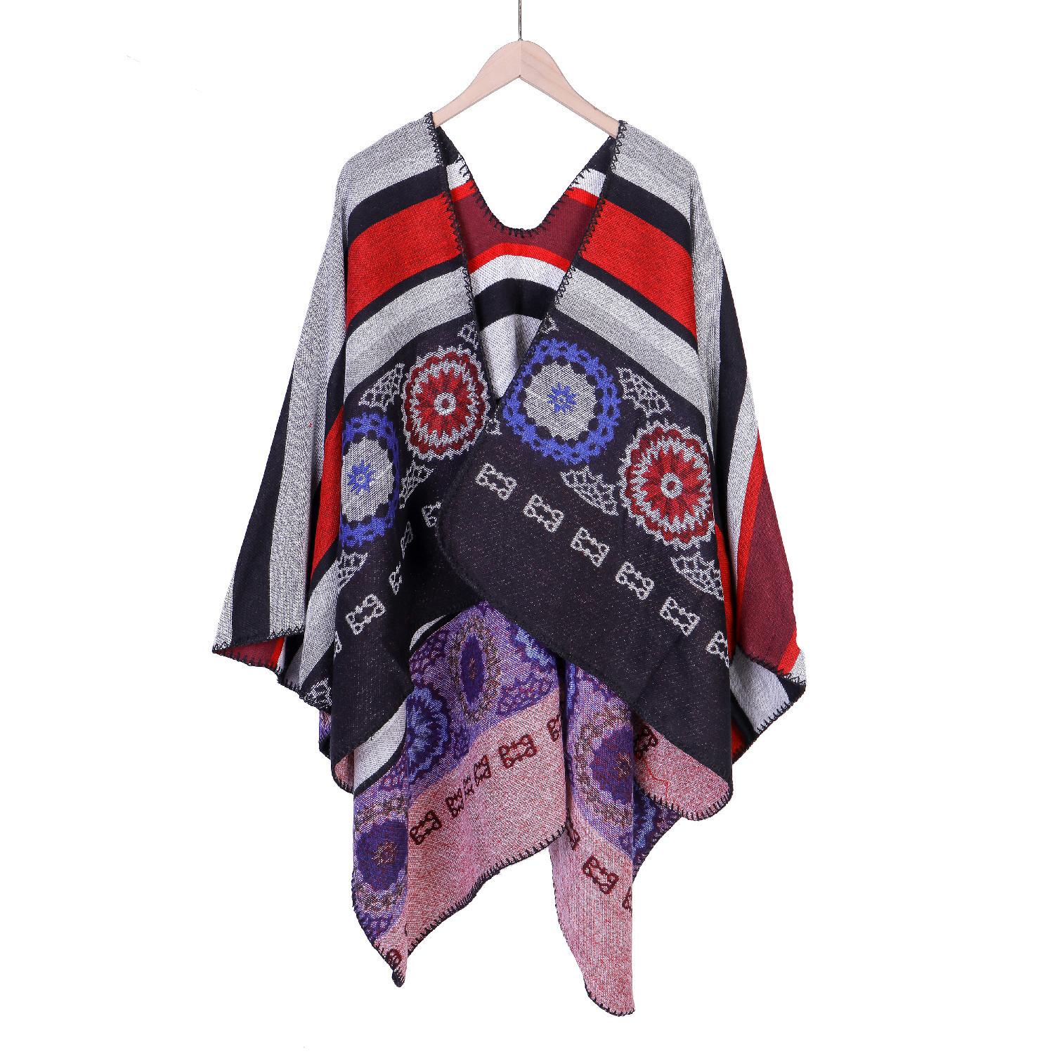 • Nuevo chal dividido cálido de moda de estilo étnico europeo y americano de otoño e invierno, capa de cachemira de imitación, bufanda floral, chal femenino