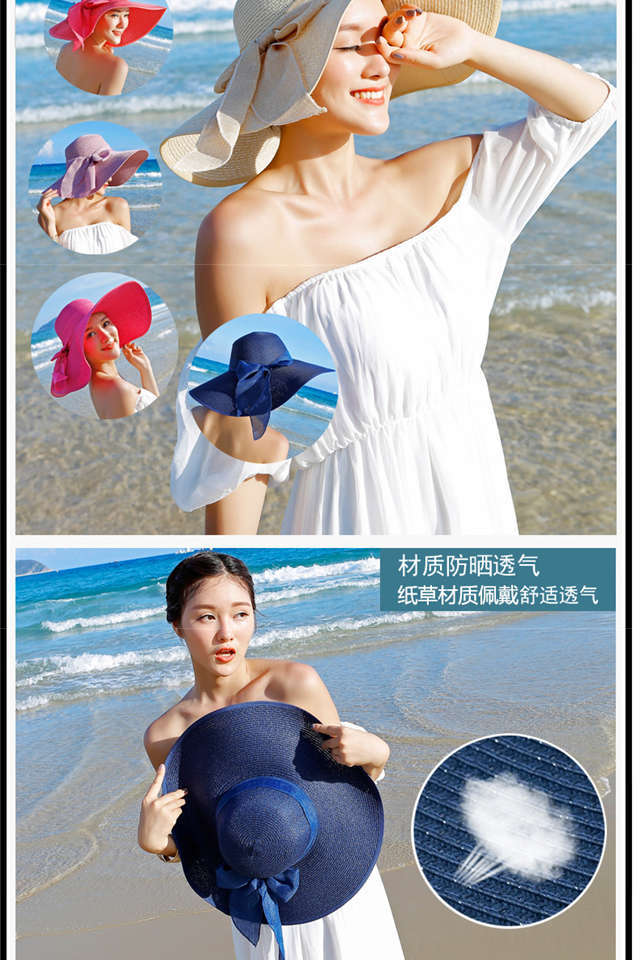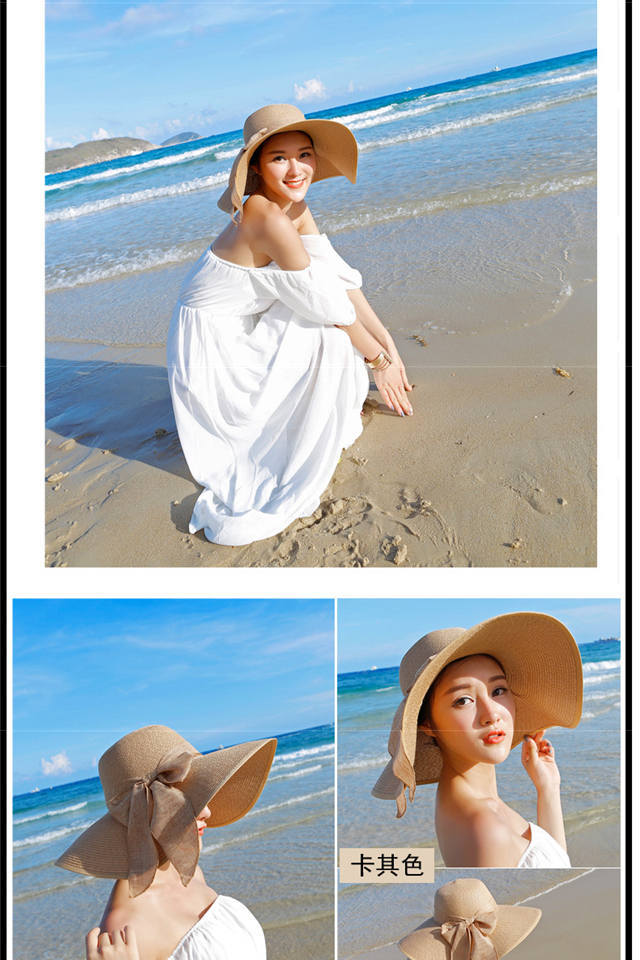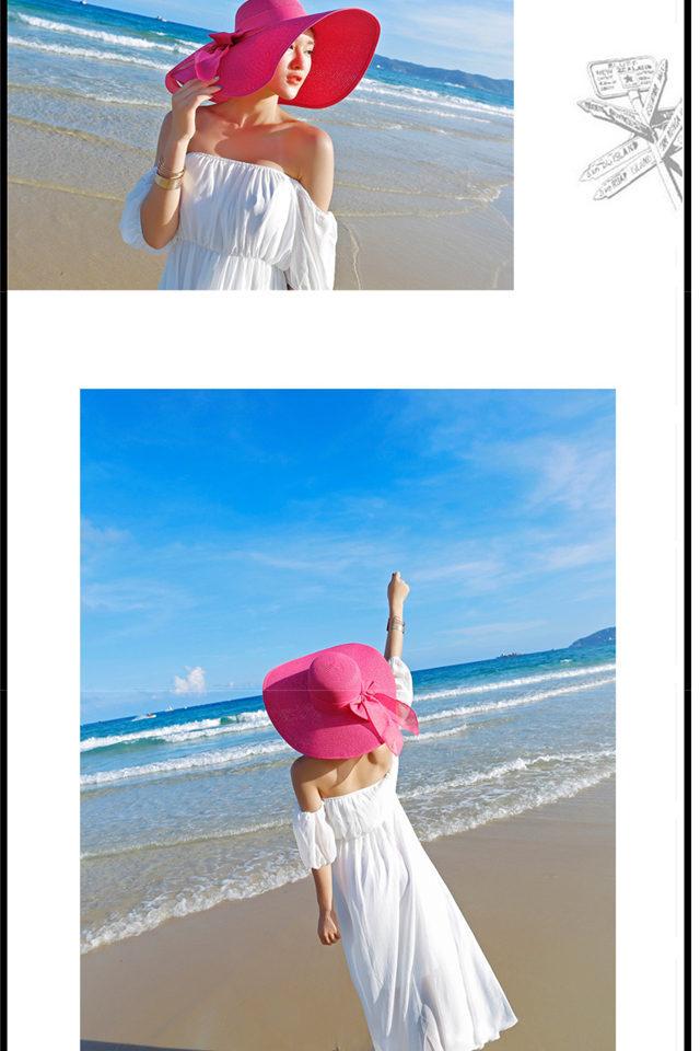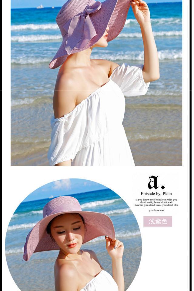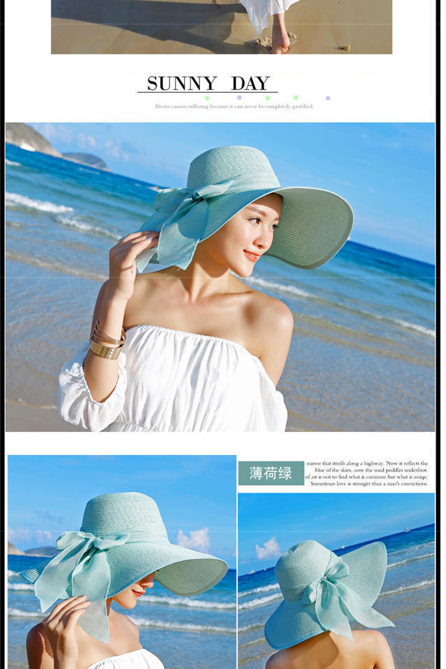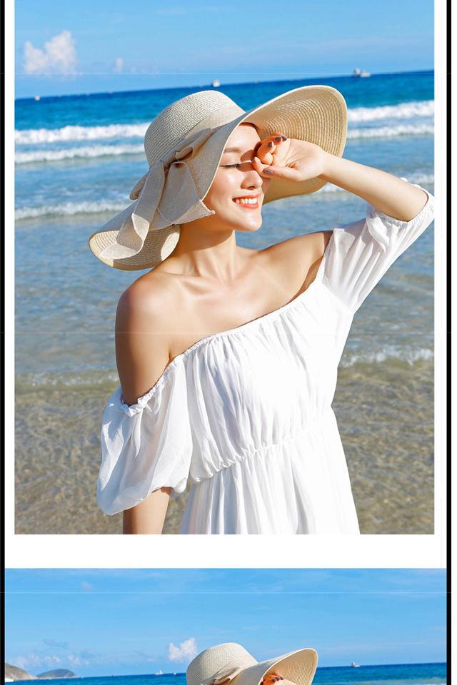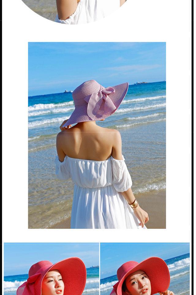 Sombrero Sombrero de Verano para Mujer Sombrero Parasol Sombrero de Paja Protector Solar Sombrero de Playa Plegable Sombrero de Ala Ancha para Mujer Sombrero de Sol para Viaje de Vacaciones en la Playa